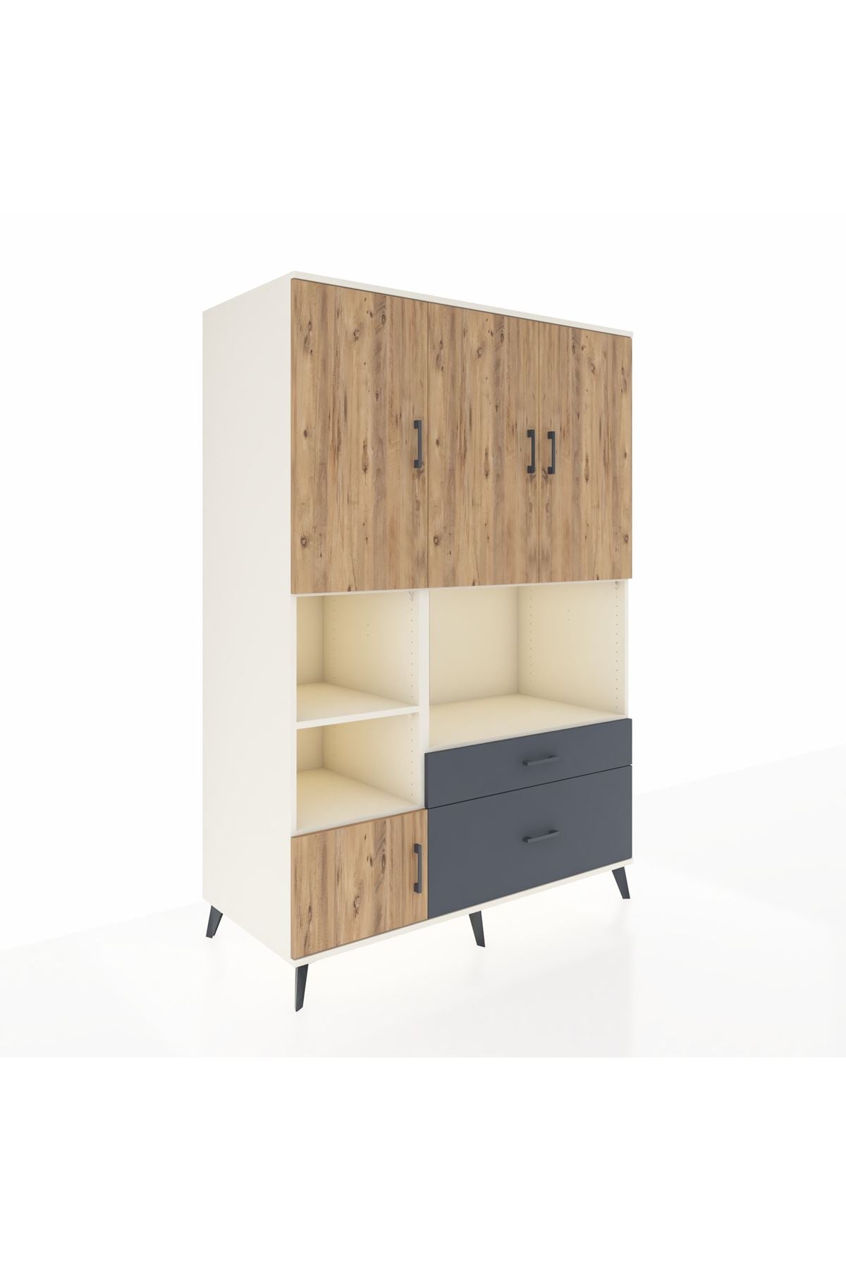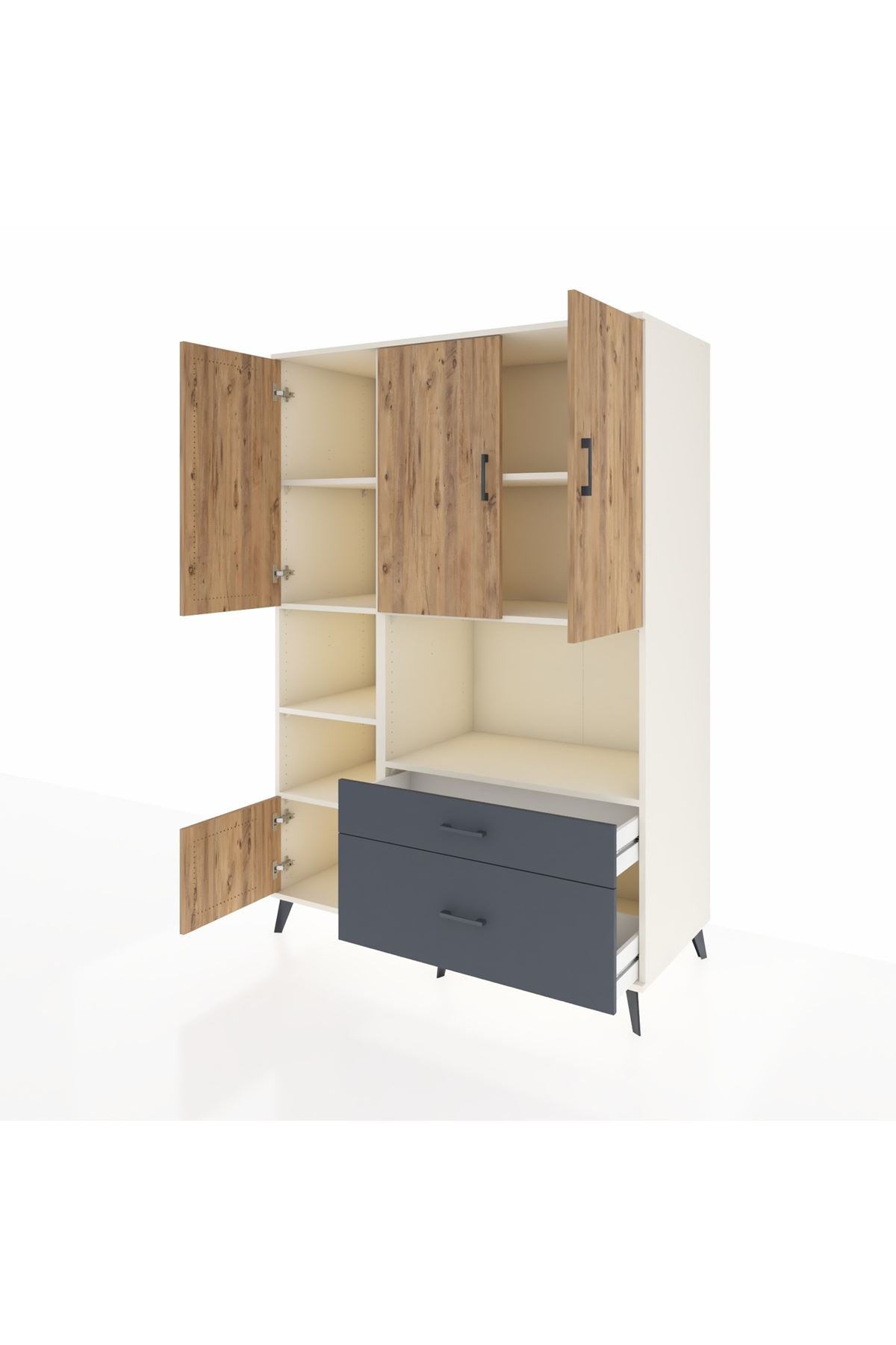 Kronos Dolap 7 Raflı 2 Çekmeceli 5 Kapaklı 132x59x195 Aytaşı-Çam/Antrasit