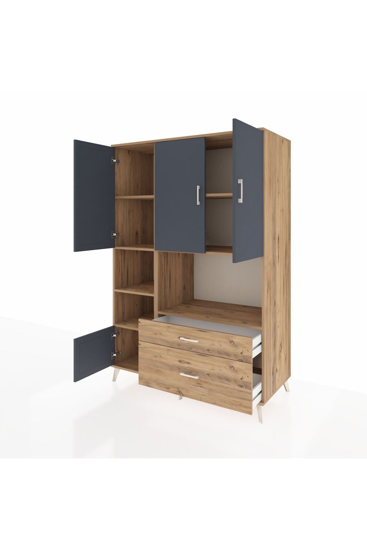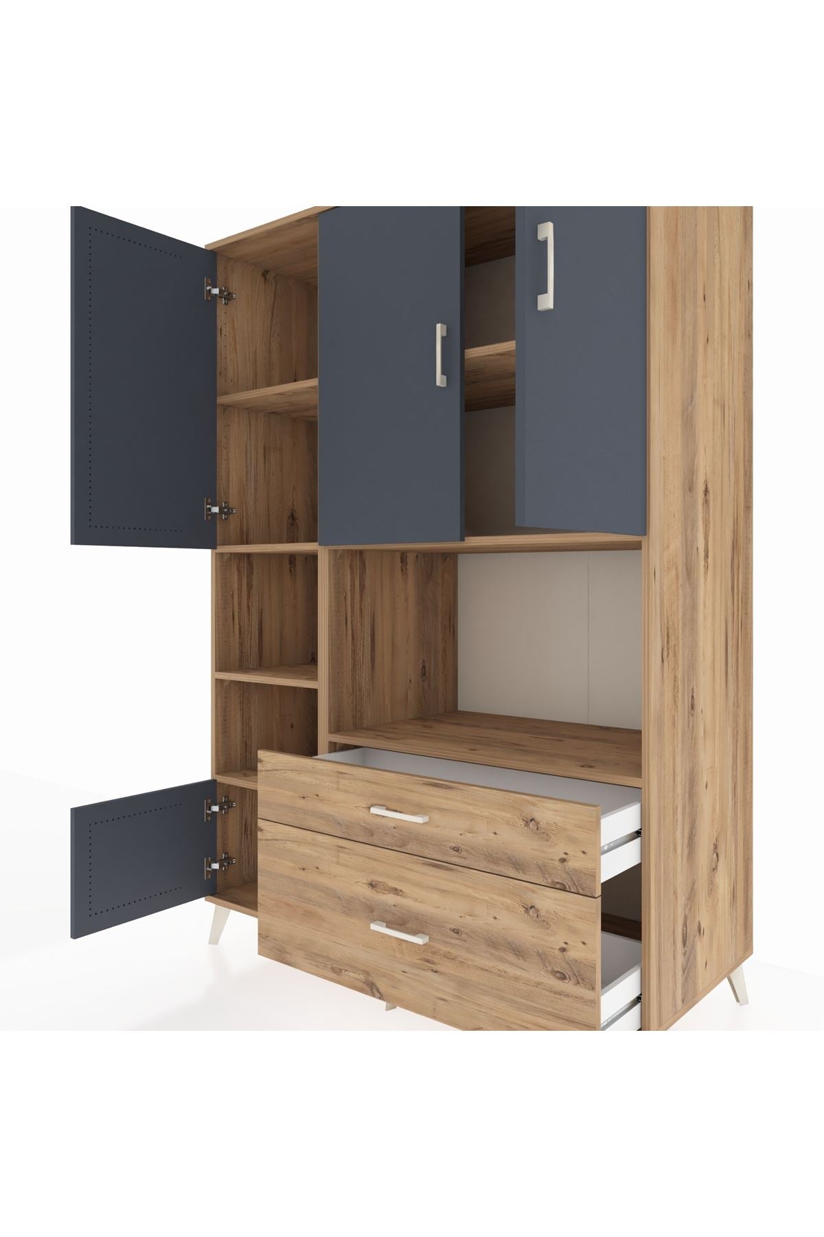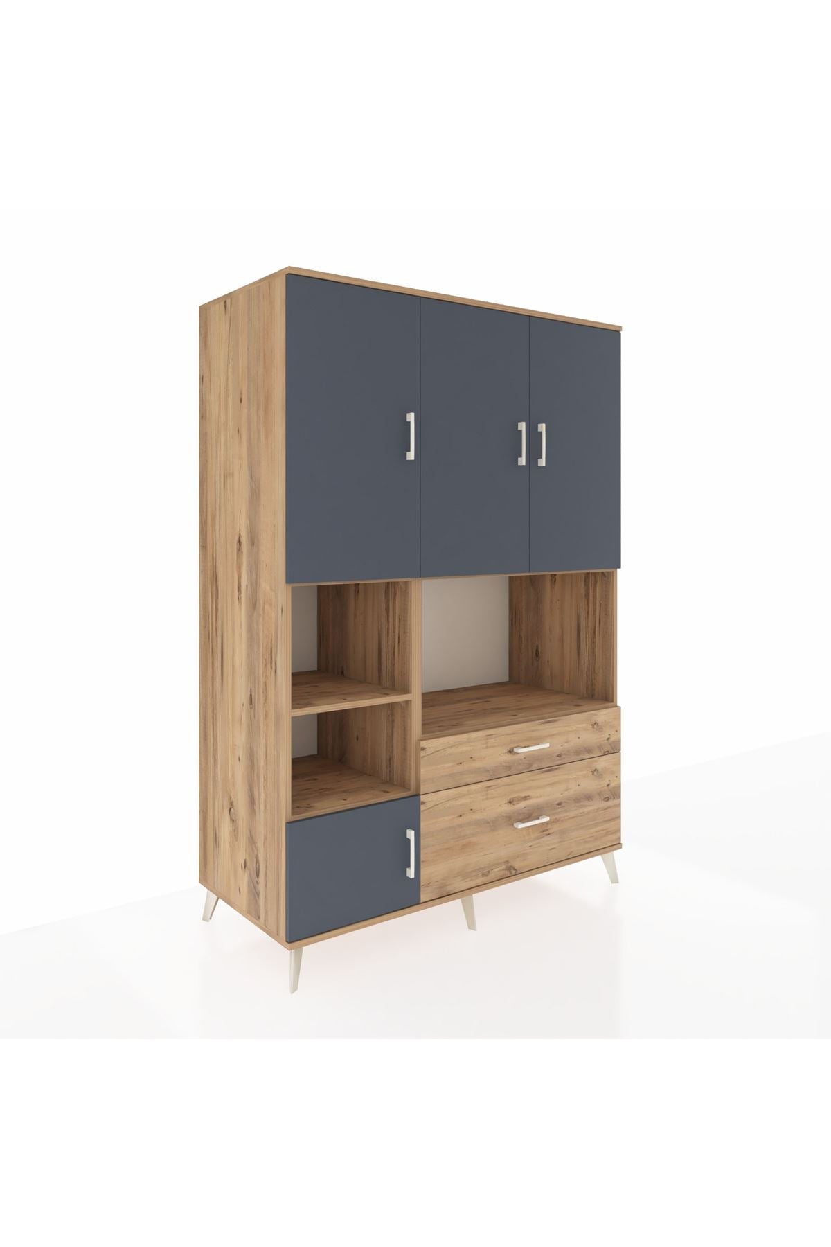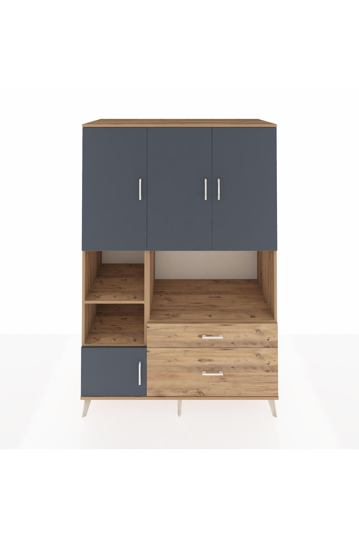 Kronos Dolap 7 Raflı 2 Çekmeceli 5 Kapaklı 132x59x195 Çam-Antrasit/Çam
