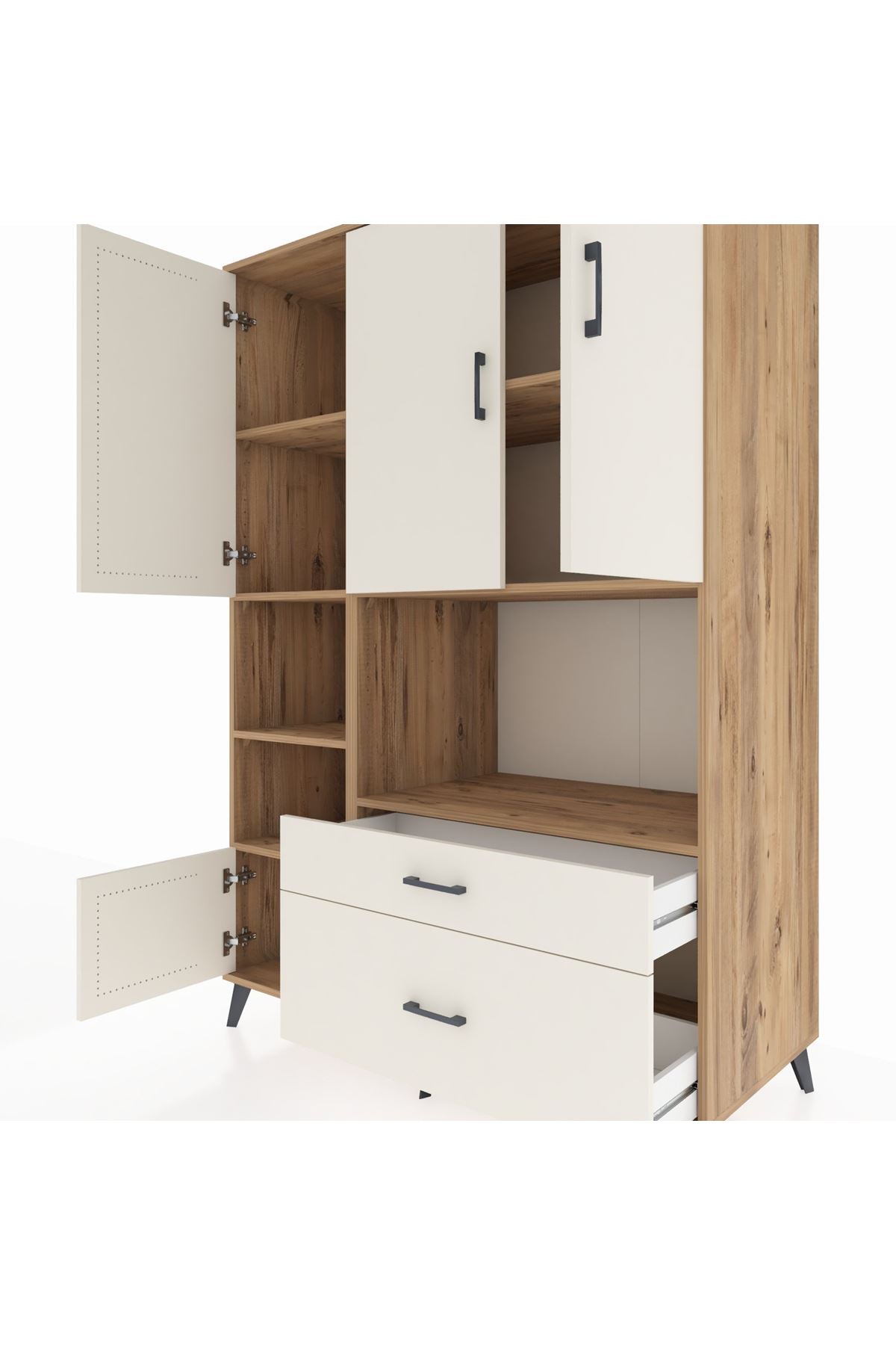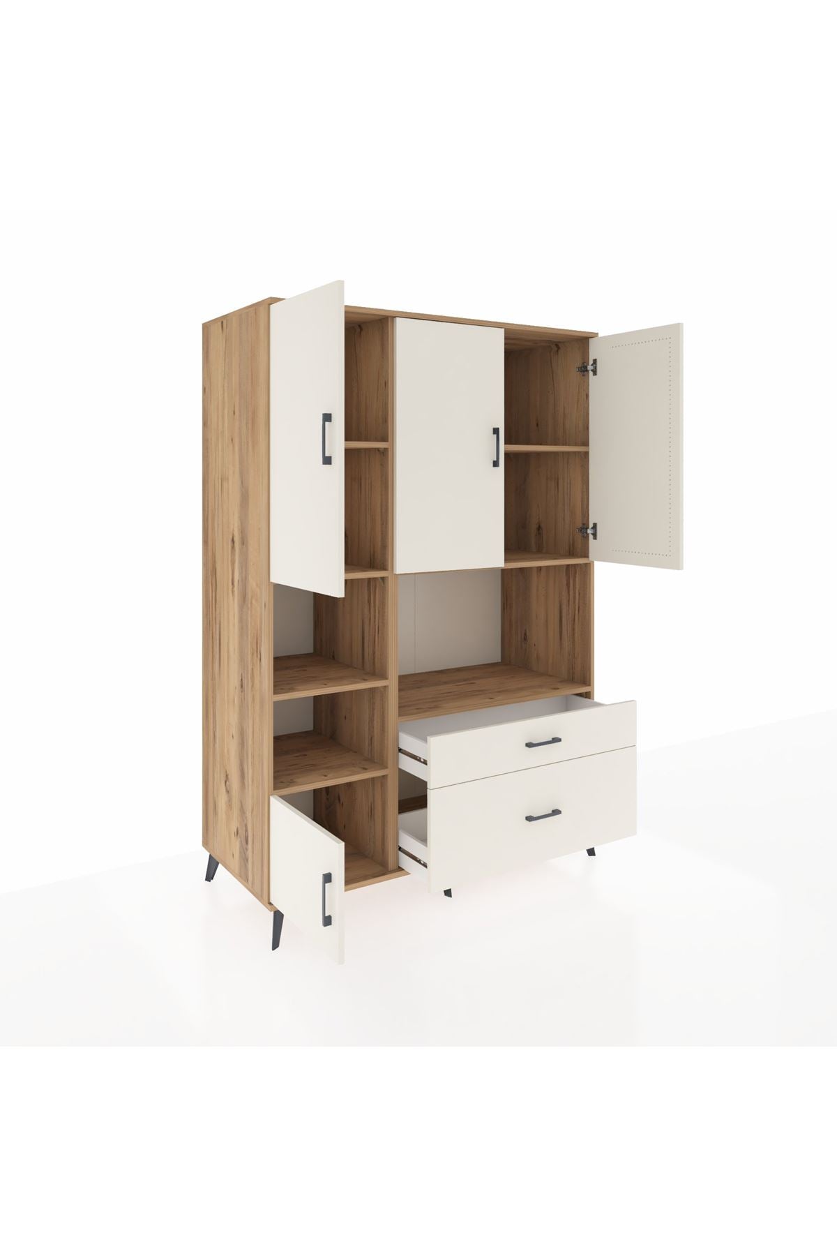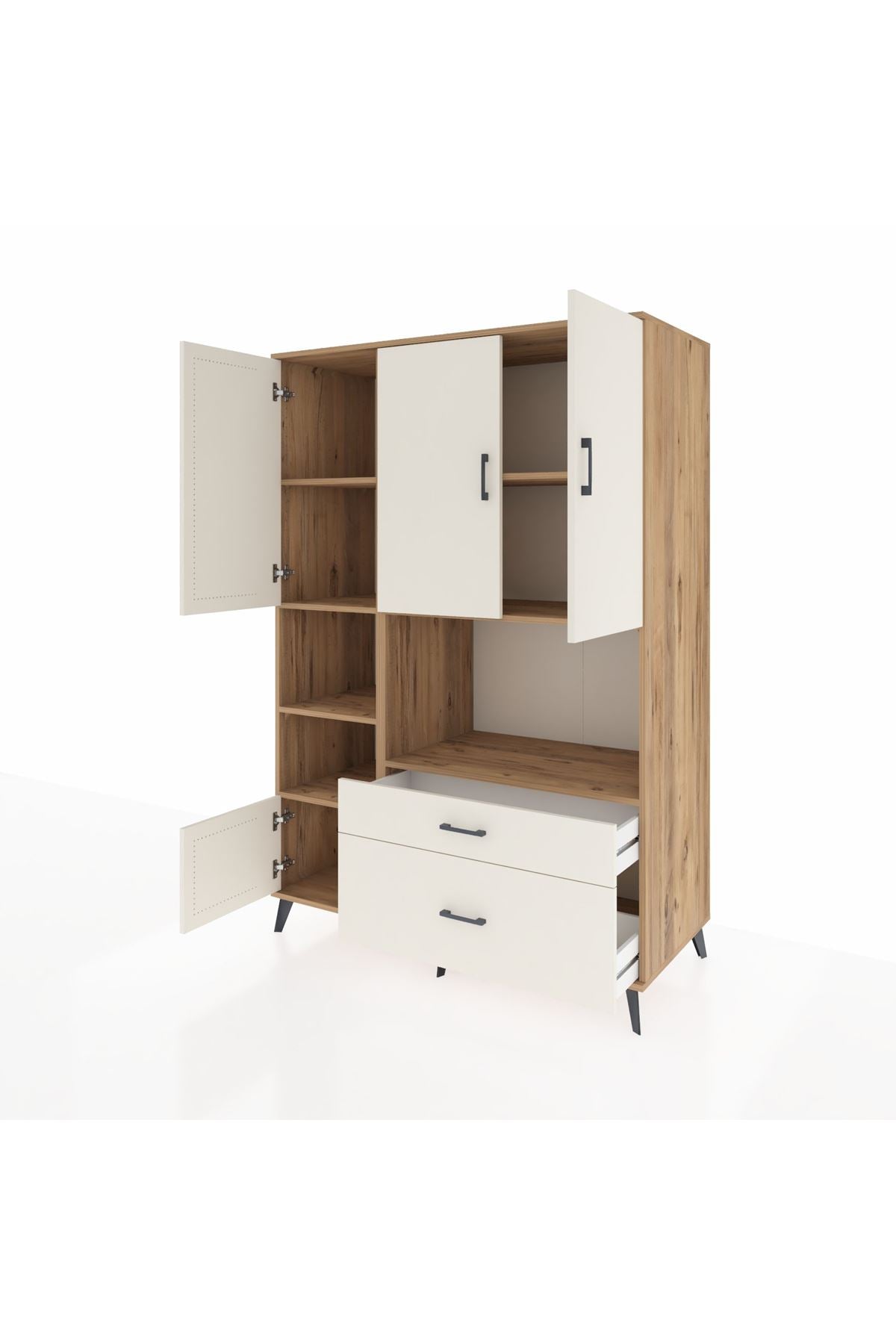 Farklı beklentilere pratik çözümler sunan bu çok amaçlı dolap; 7 geniş rafı, 2 kullanışlı çekmecesi ve 5 kapaklı bölmesiyle üstün saklama alanı sağlar. Kıyafet, ev tekstili, dosya veya temizlik ürünleri için mükemmel bir düzenleyici olur. Her bir paketi özenle ayrı ayrı paketlenir ve ekstra koruma amacıyla bir kez daha paketlenerek sevk edilir. Güvenli ve sağlam yapısıyla uzun yıllar kullanım vadeder.