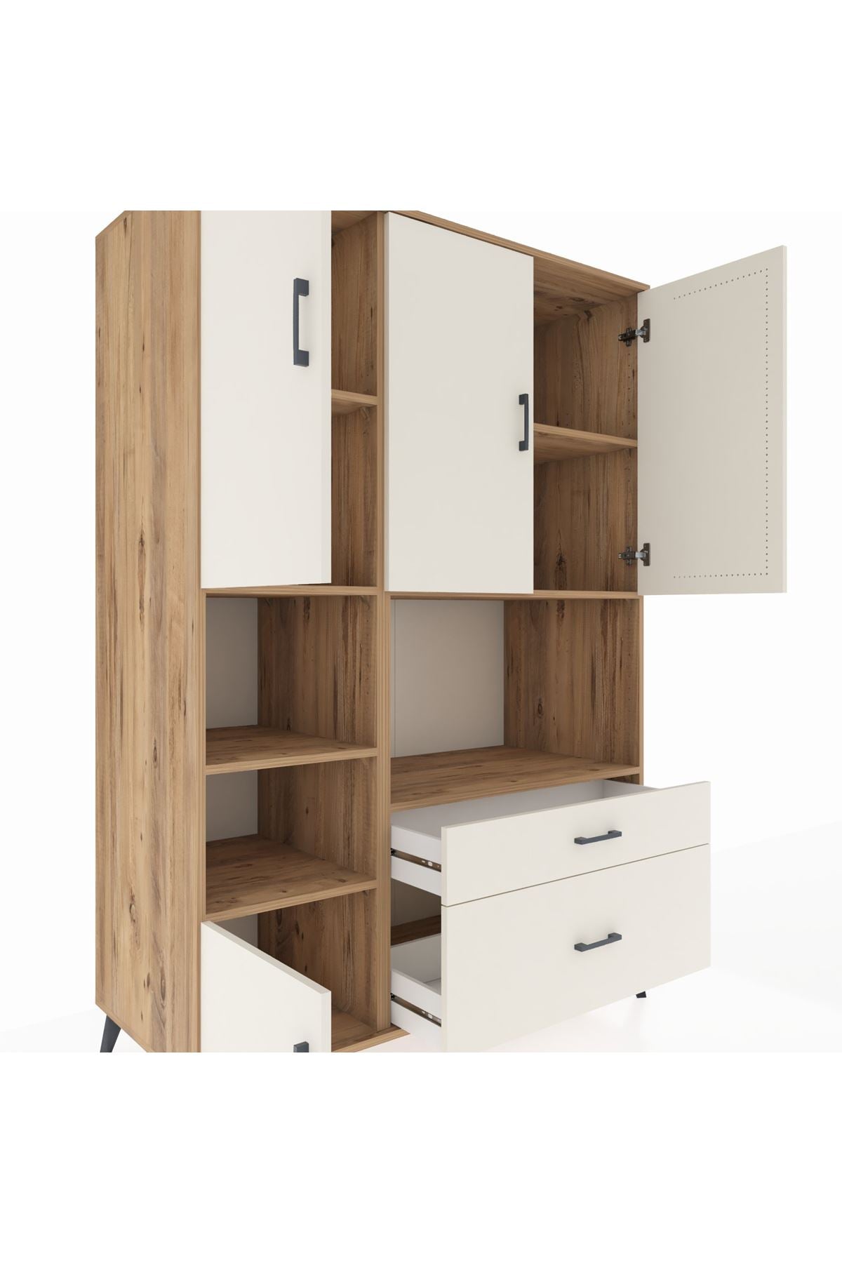 • 🗄️ 7 raflı, 2 çekmeceli ve 5 kapaklı geniş depolama