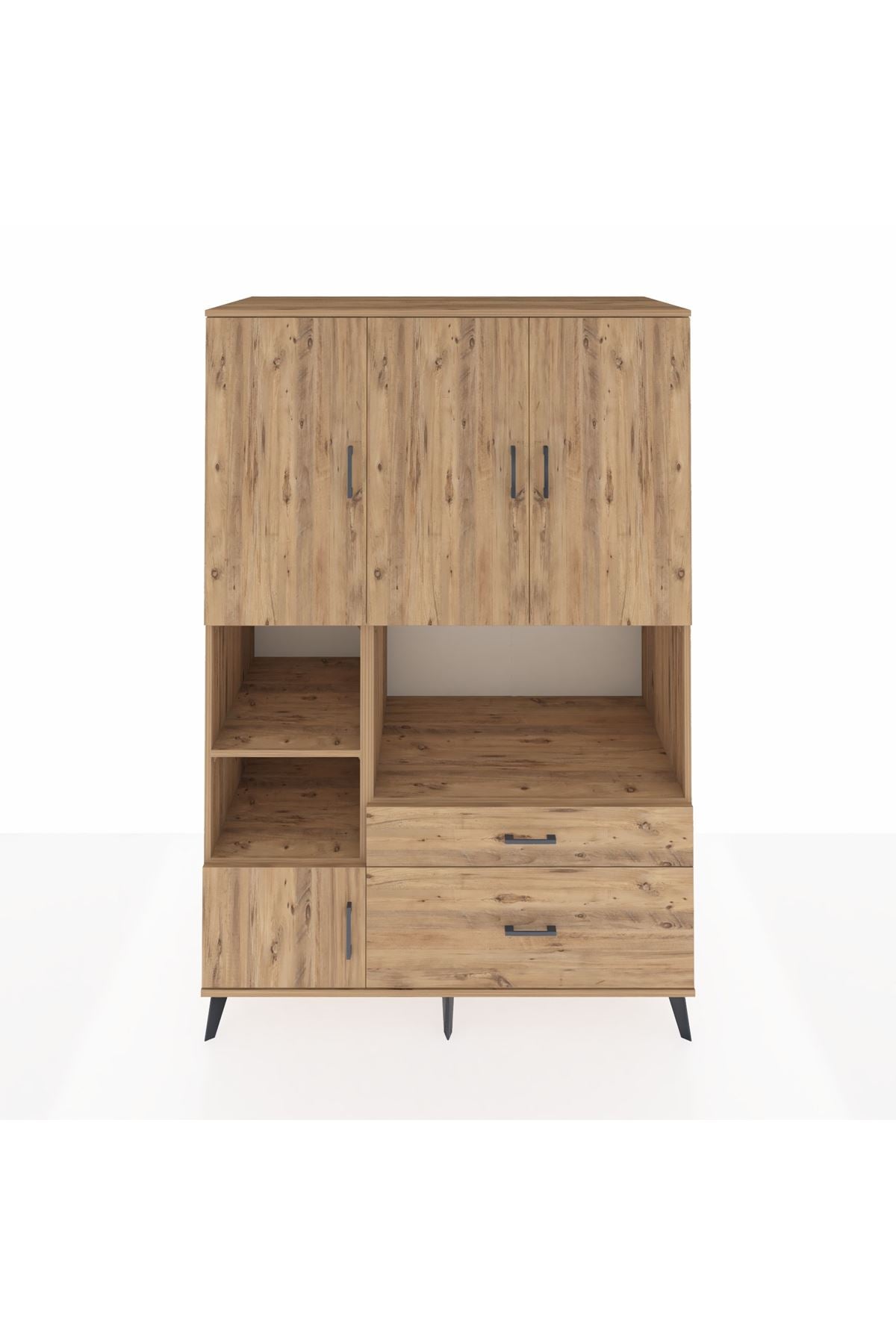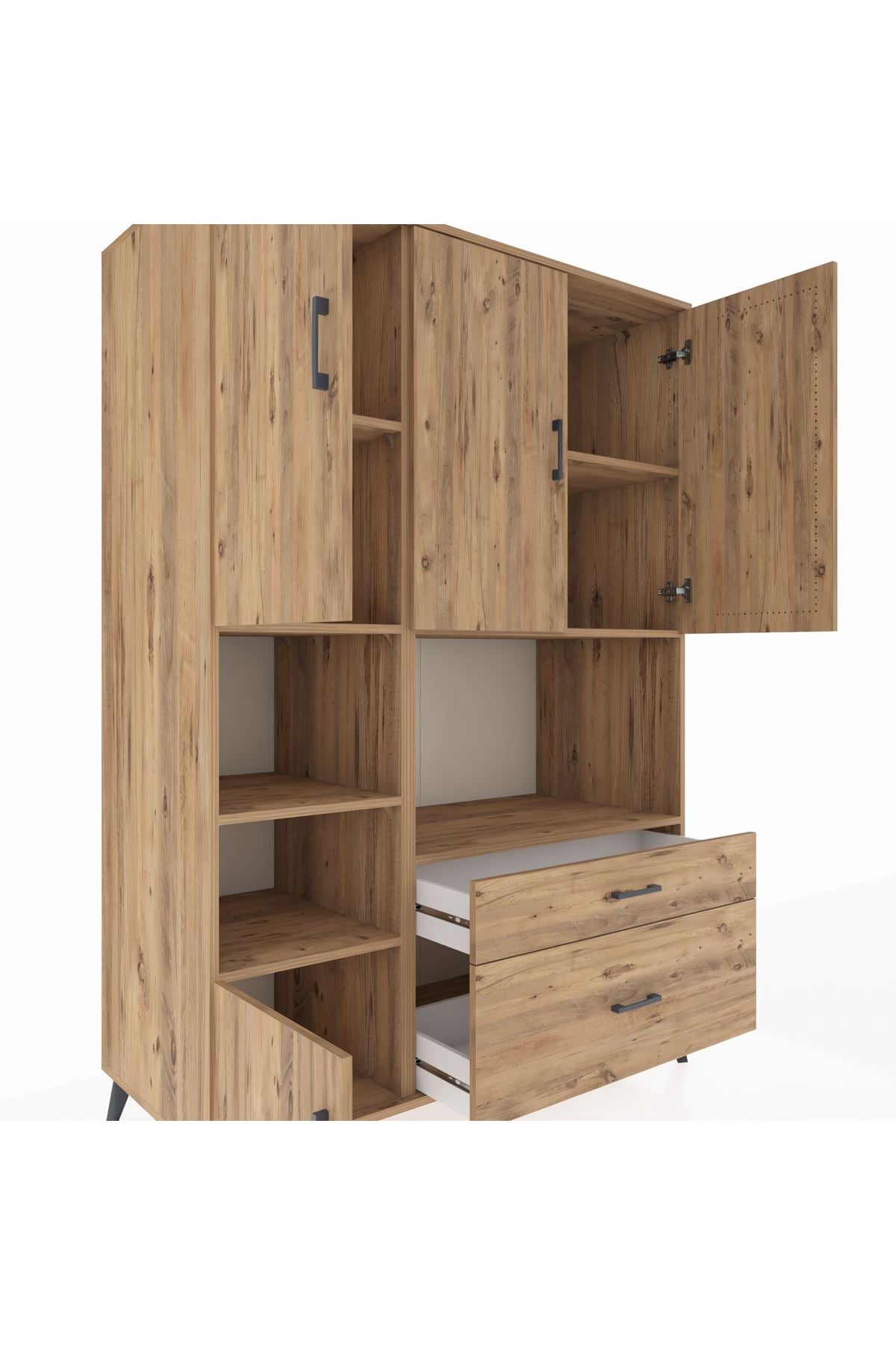Kronos Dolap 7 Raflı 2 Çekmeceli 5 Kapaklı 132x59x195 Çam-Çam/Çam