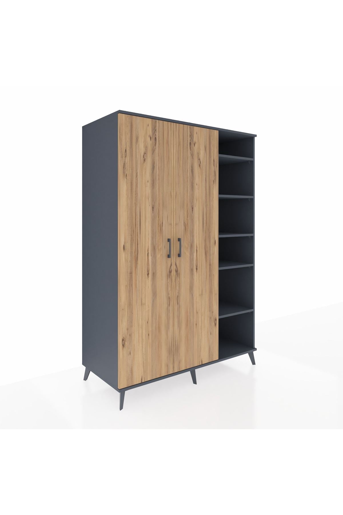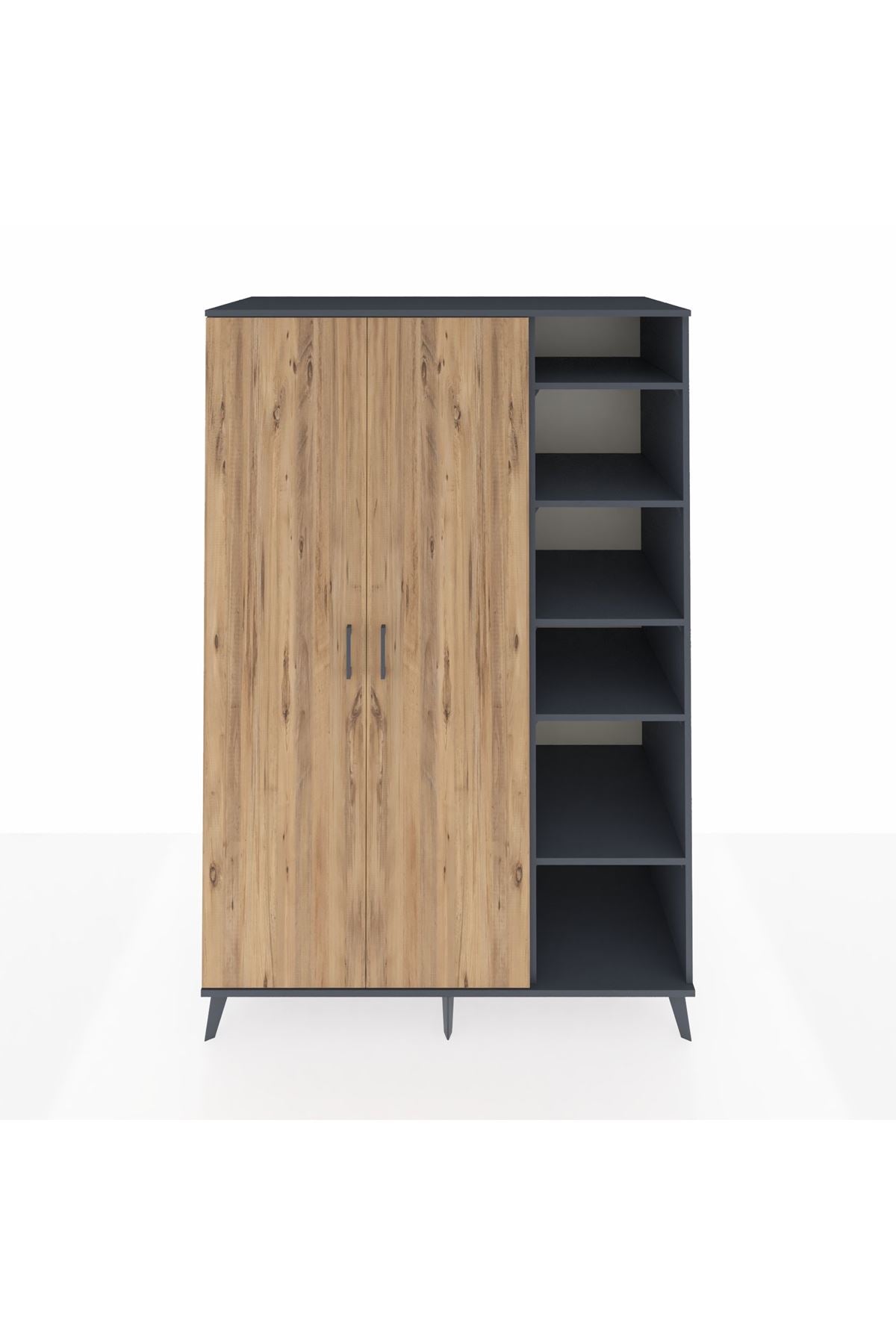 🕰️ Kronos Dolap 8 Raflı 2 Çekmeceli 6 Kapaklı 132x59x195 Çam-Antrasit/Çam