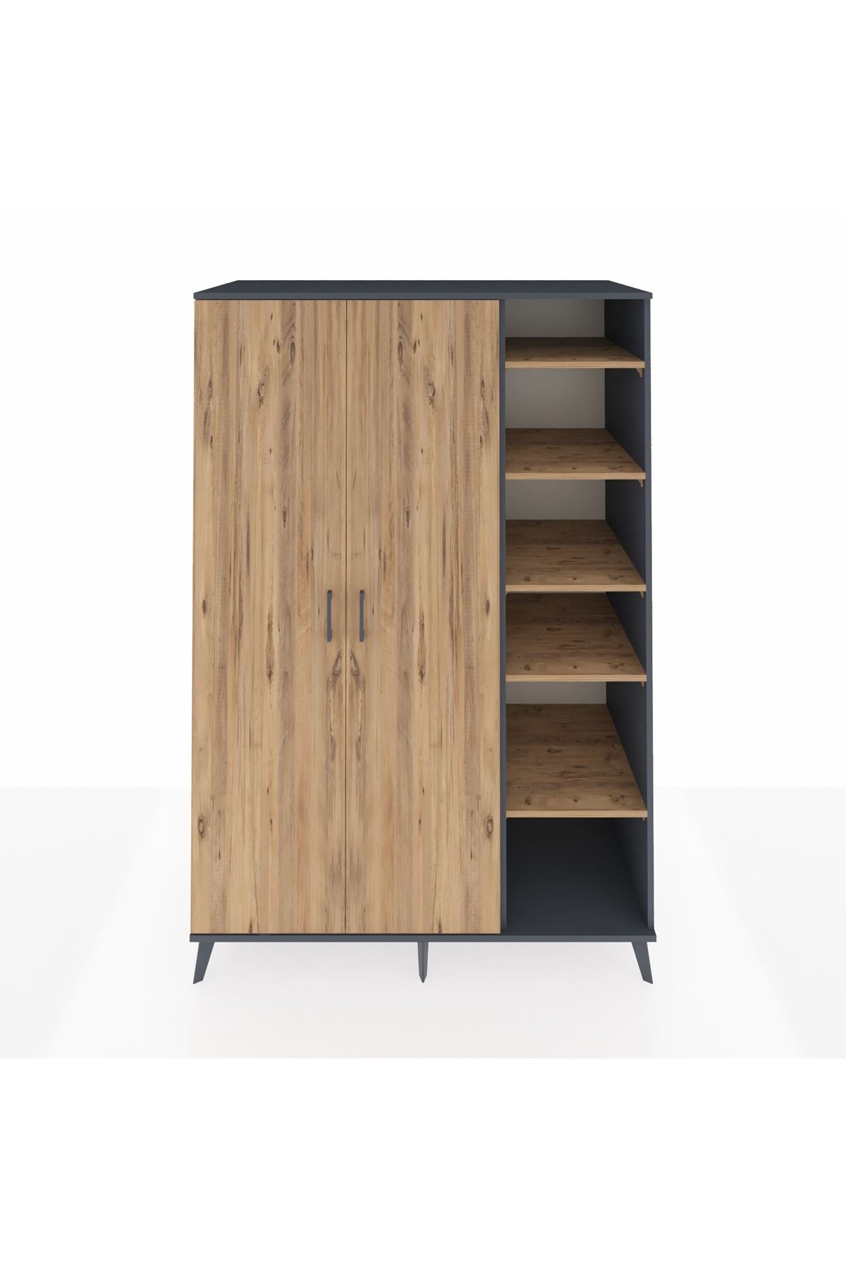 Kronos Dolap 8 Raflı 2 Çekmeceli 6 Kapaklı 132x59x195 Antrasit-Antrasit/Çam