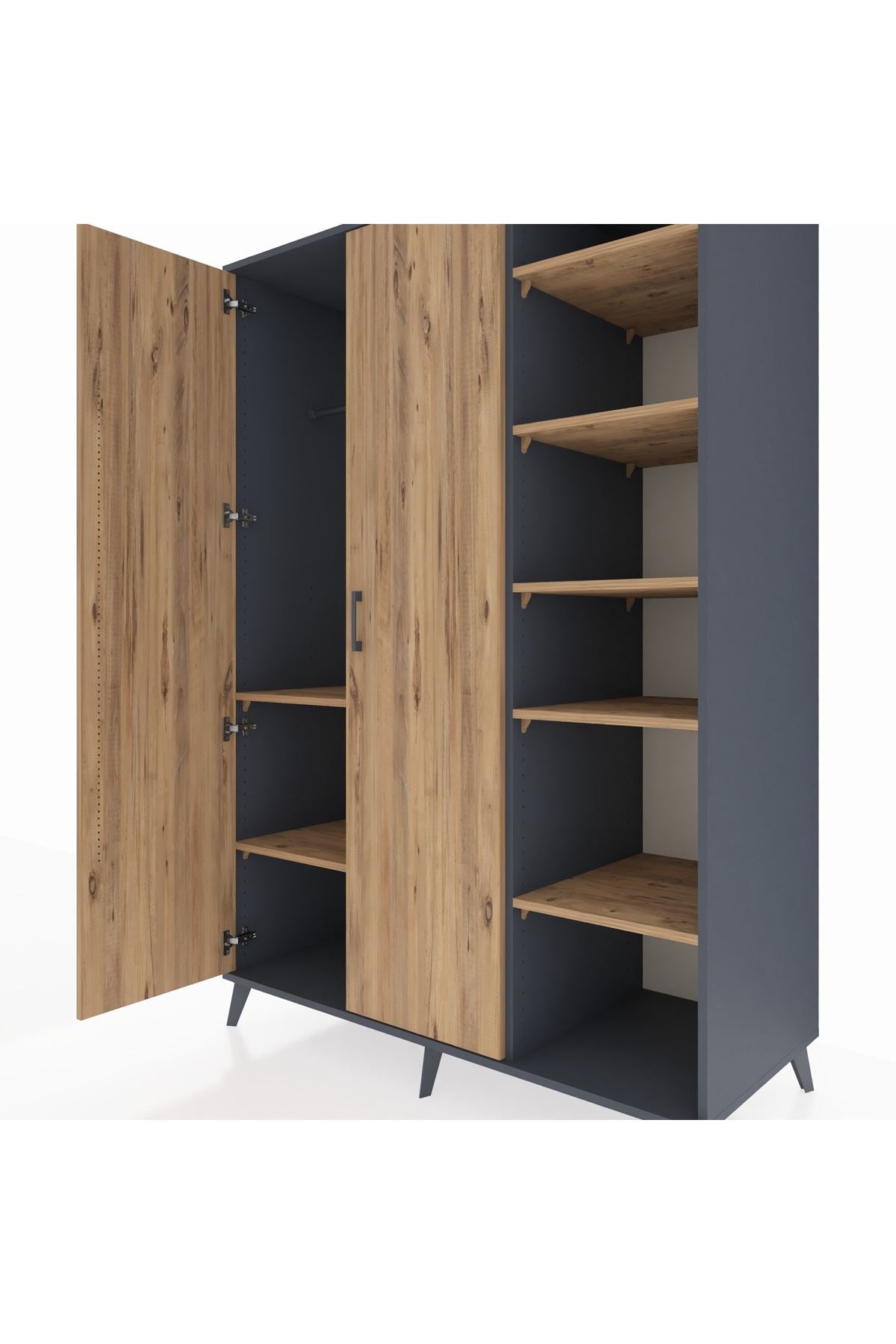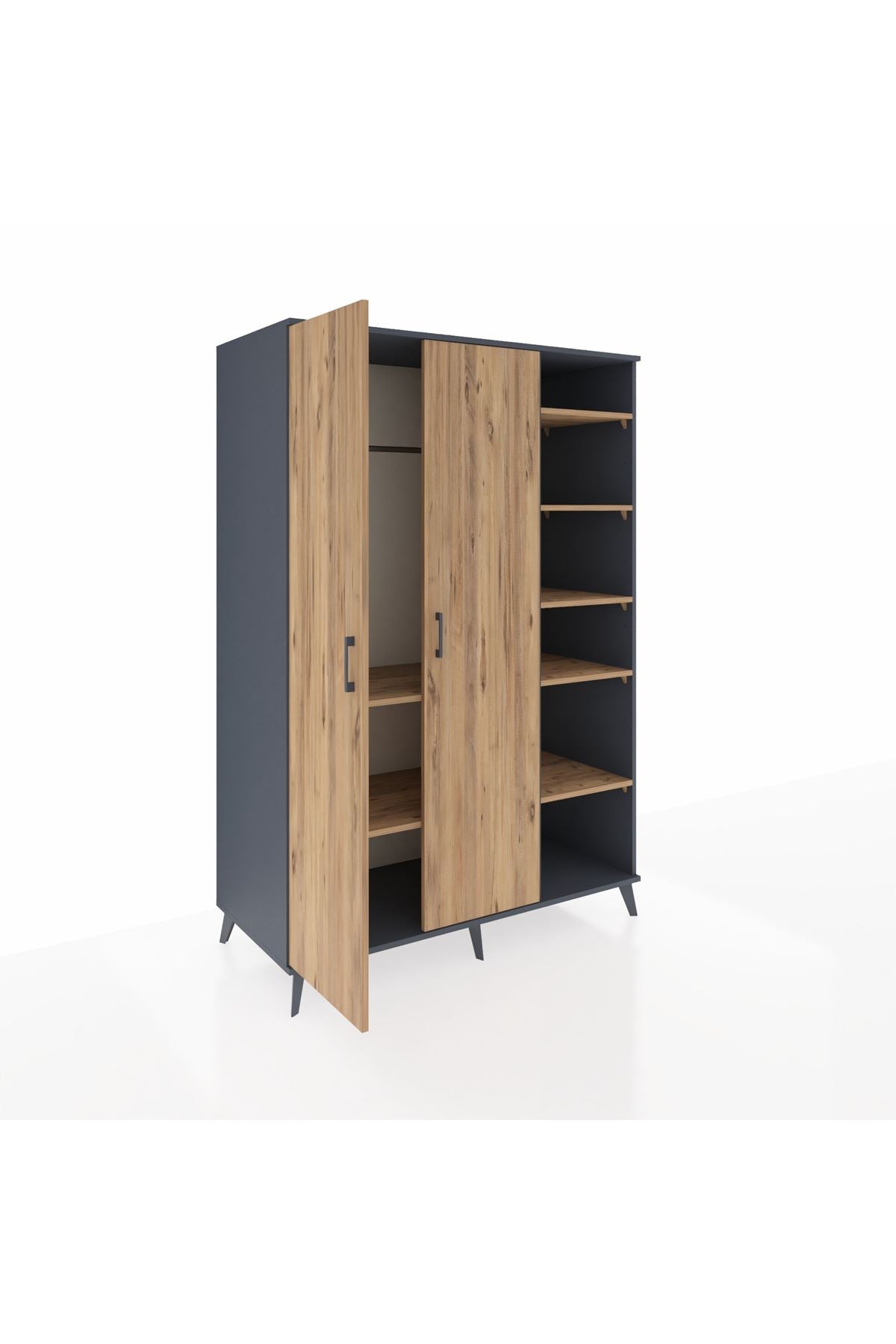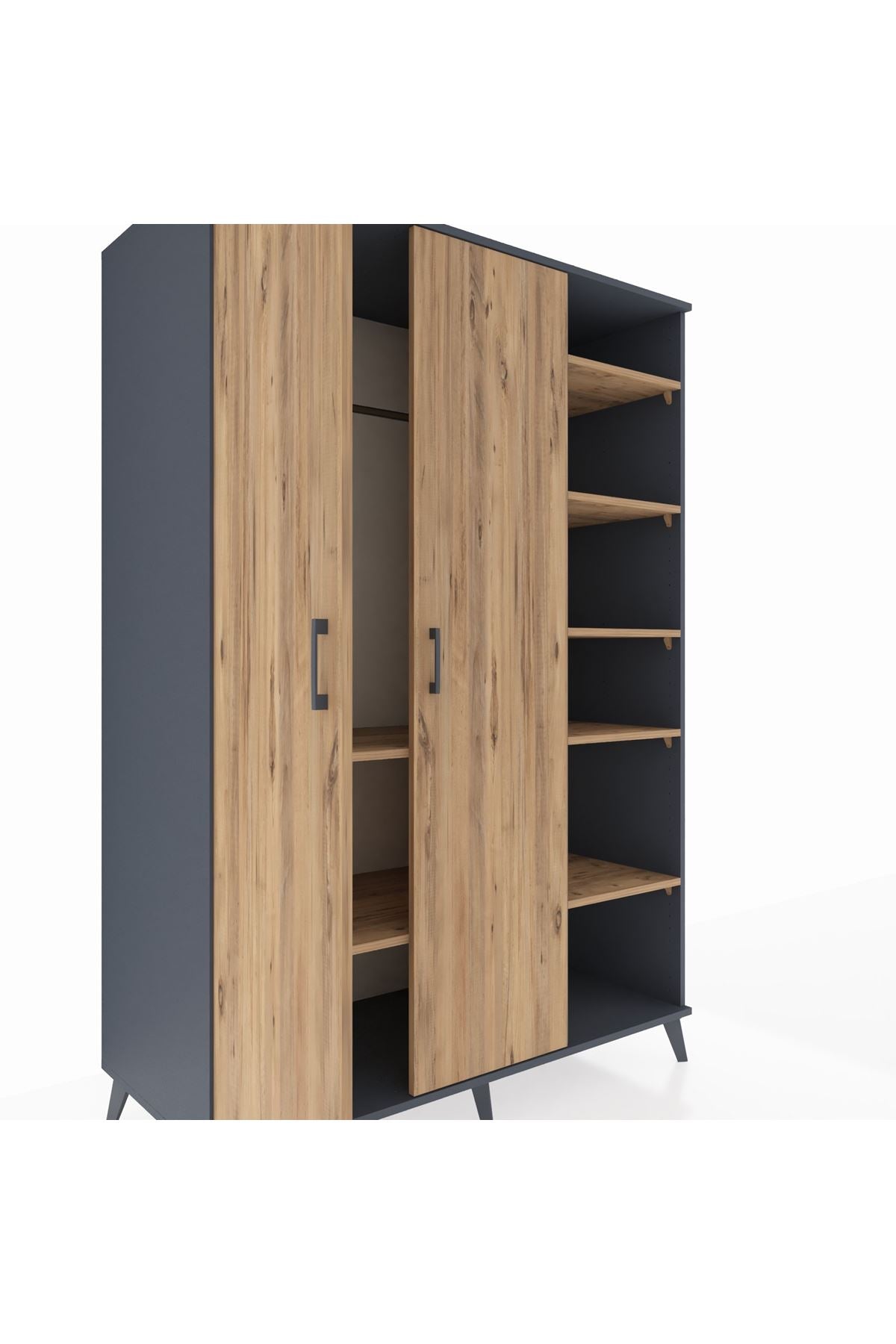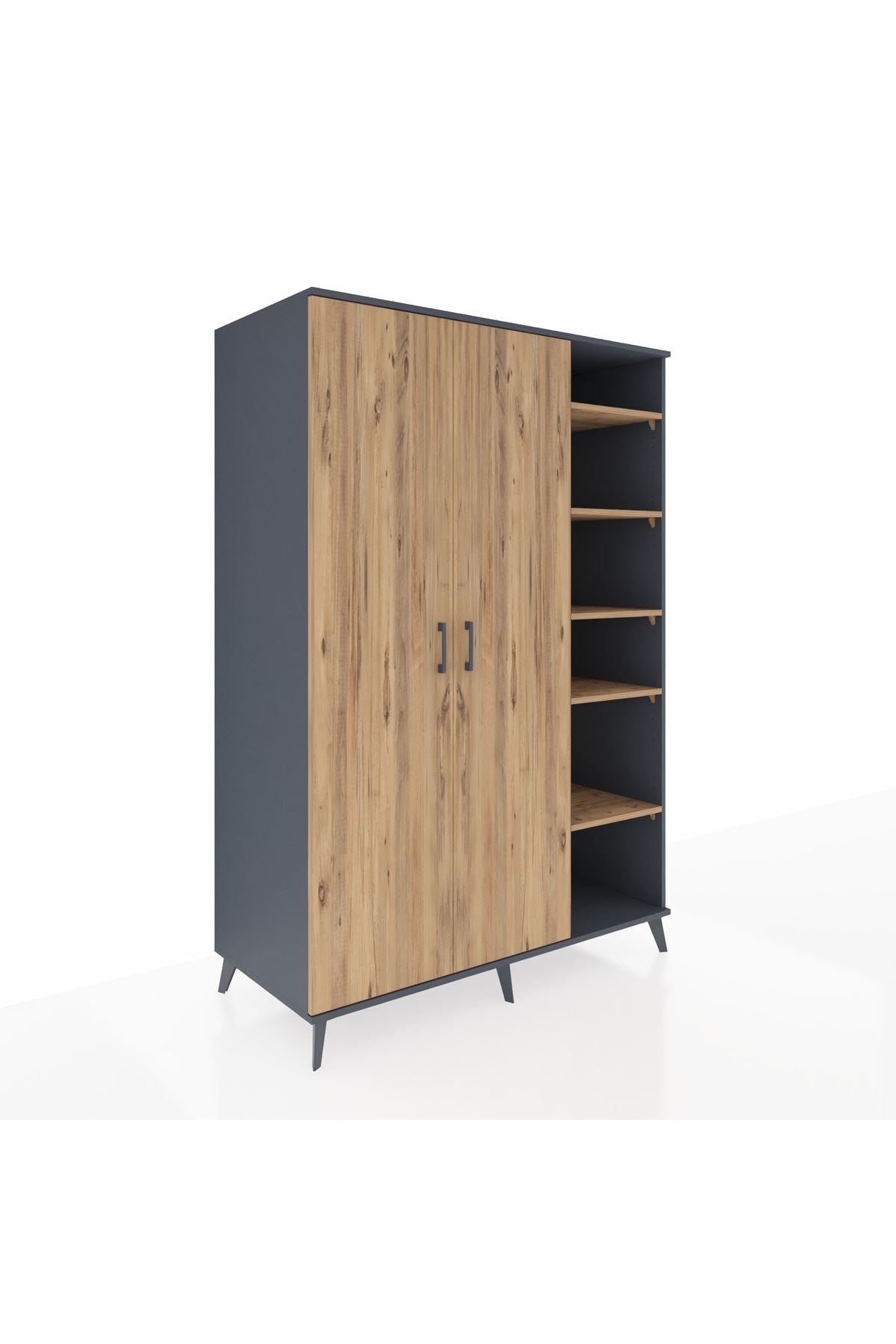 - İki kapılı dolap: 195 cm yüksekliği ve 132 cm genişliğiyle yatak odasında veya antrede ferah depolama sağlar.