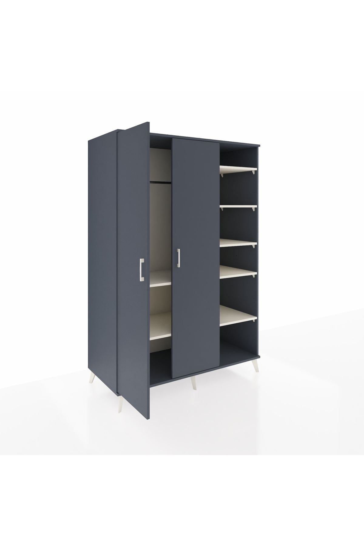Kronos Dolap 7 Raflı 2 Kapaklı Tek Askılı 132x59x195 Antrasit-Antrasit/Aytaşı