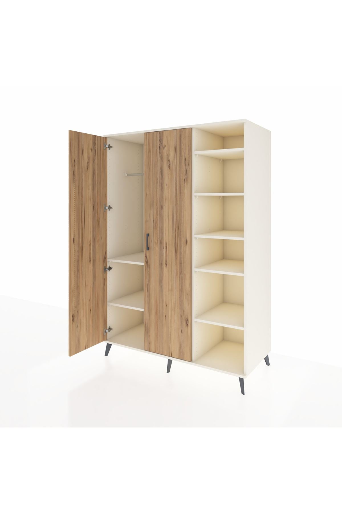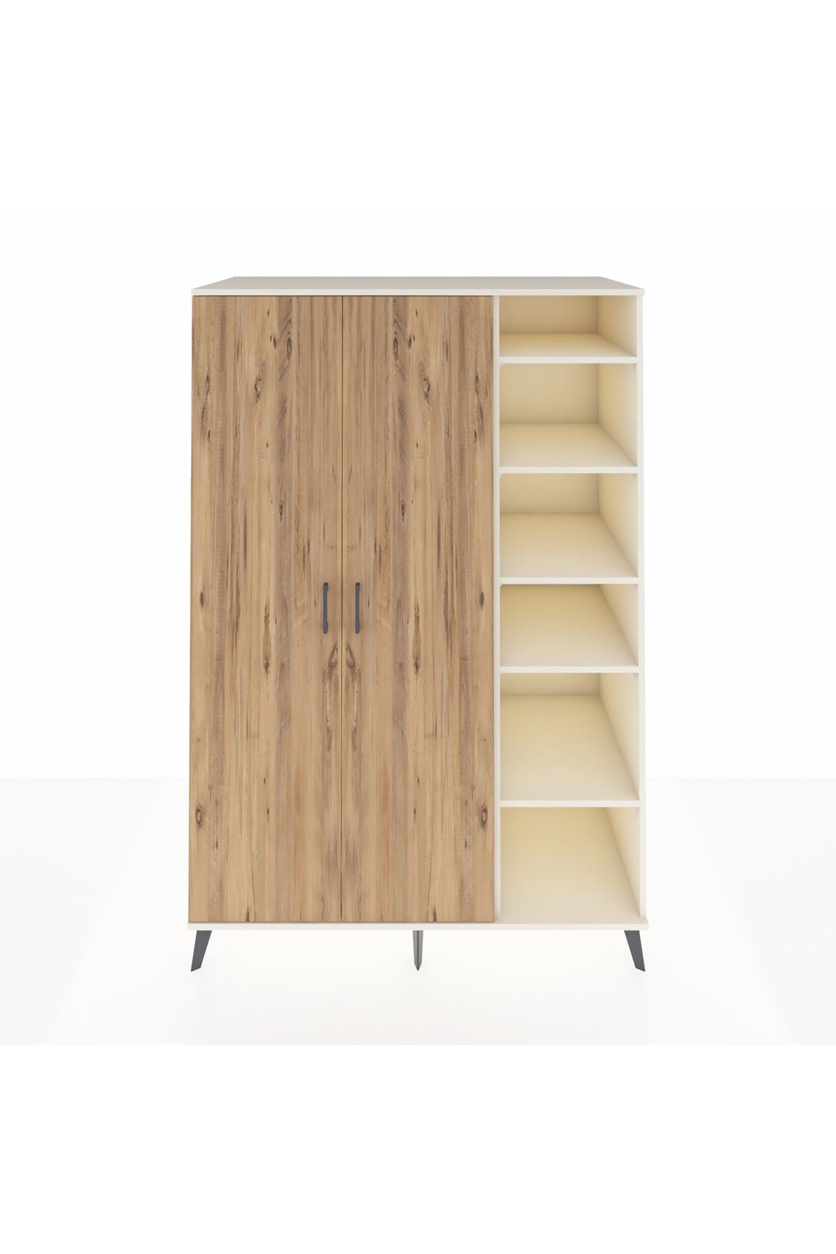 • Antre dolabı: 132 cm genişliği ve yüksek yapısıyla mont ve ayakkabı düzeni için çok kullanışlı.