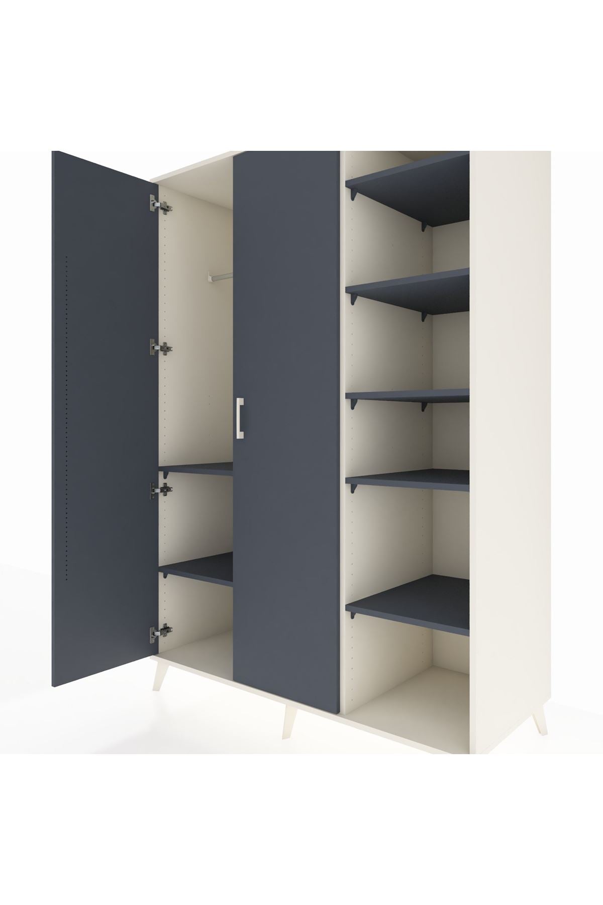 Metal ayaklar ve metal kulplar, dolabınıza hem şık bir dokunuş hem de ekstra dayanıklılık katar. 🦾 Üstelik 1.2 mm kalınlığında kenar bandı ile benzerlerinden çok daha üstün bir kalite sunar.