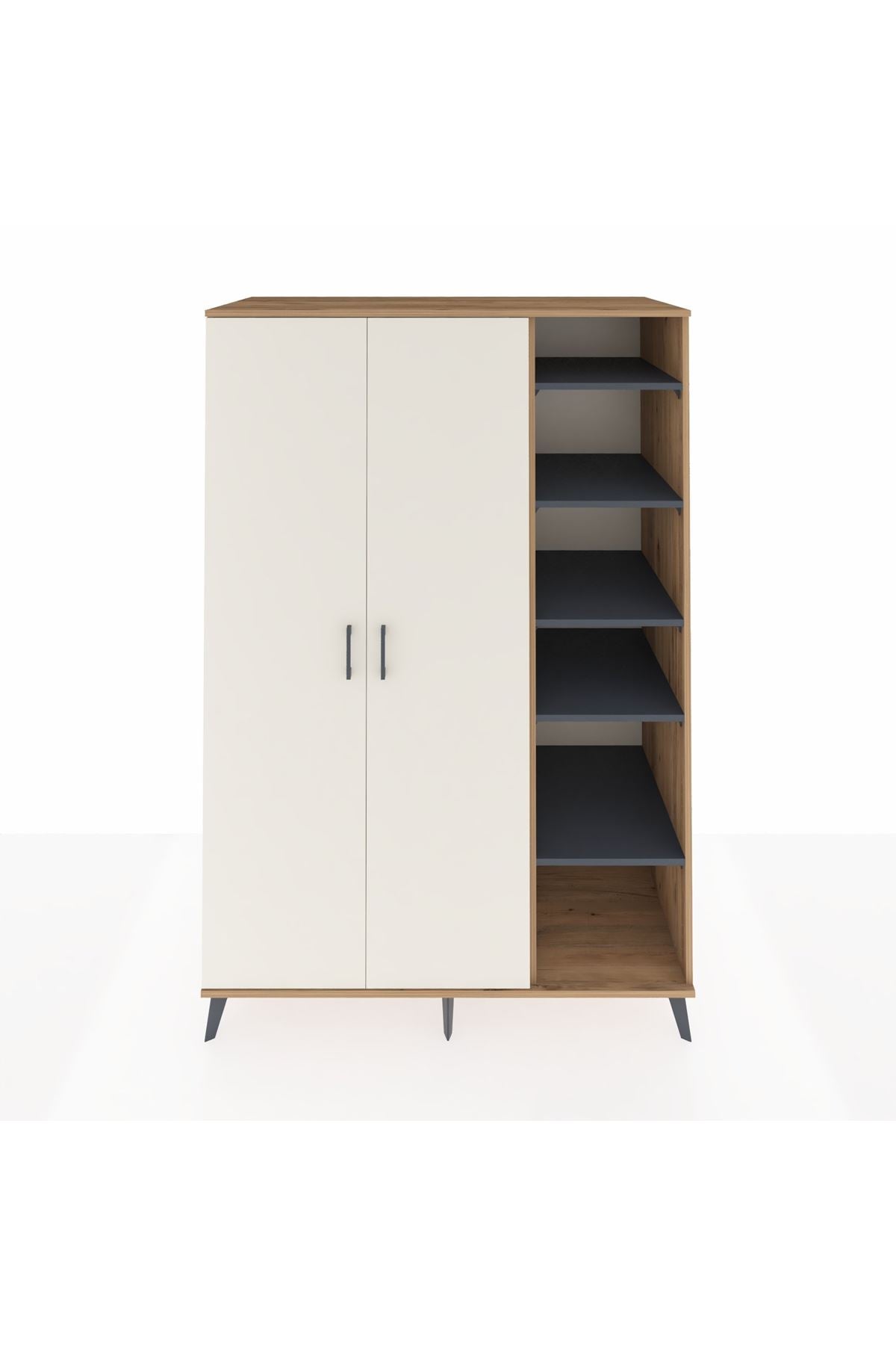 Antrasit tonlarında 6 kapaklı ve 2 çekmeceli yapısı; 8 rafı ile tüm eşyalarınızı düzenli şekilde saklamanızı sağlar 📚🧥