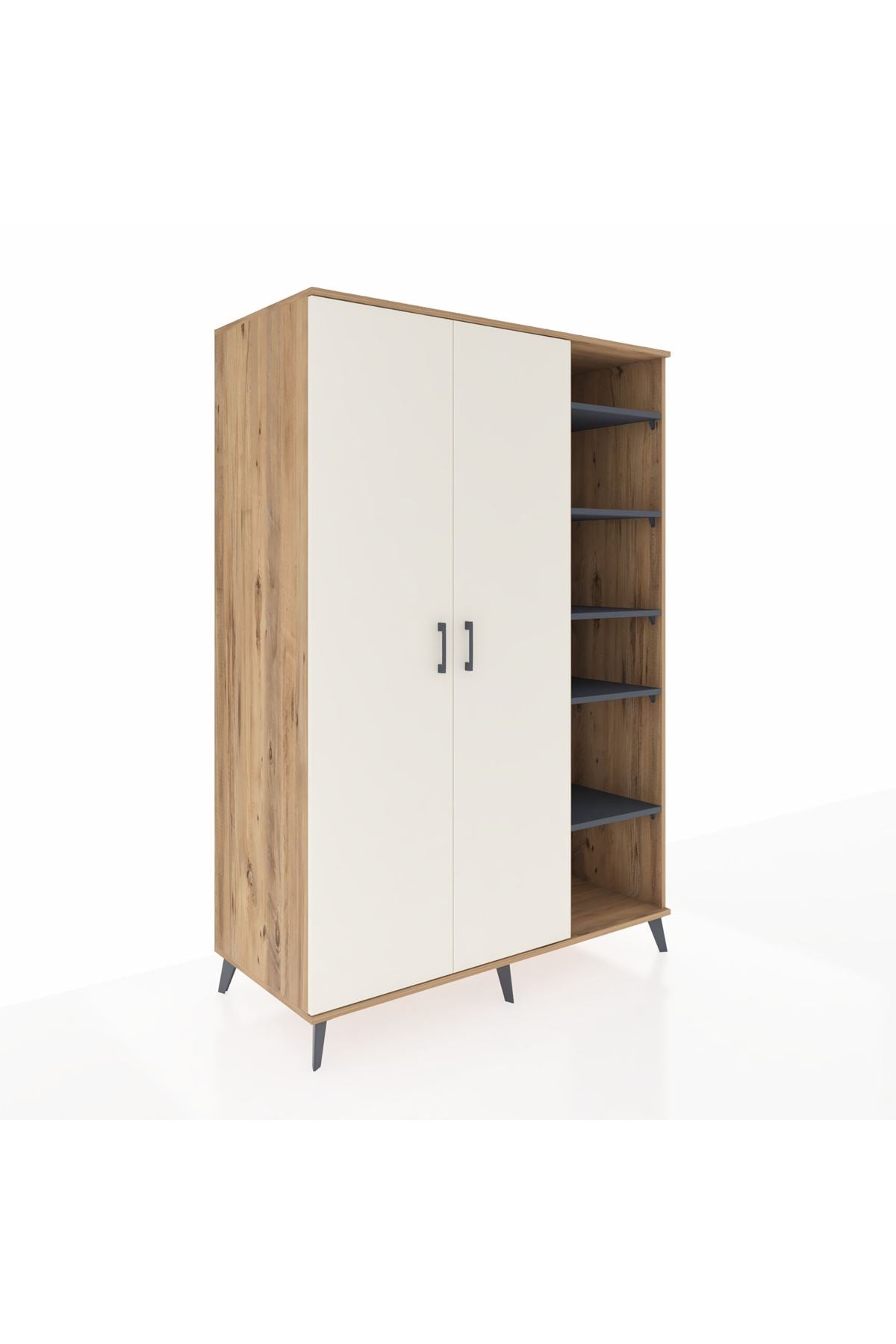 Kronos Dolap 7 Raflı 2 Kapaklı Tek Askılı 132x59x195 Çam-Aytaşı/Antrasit