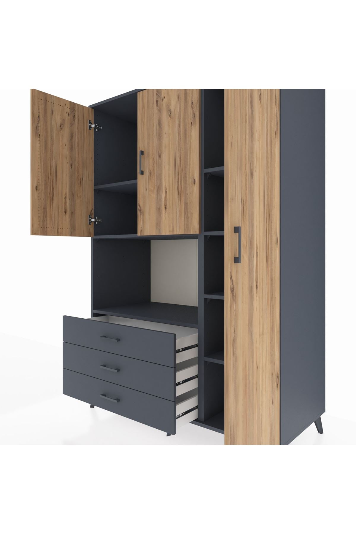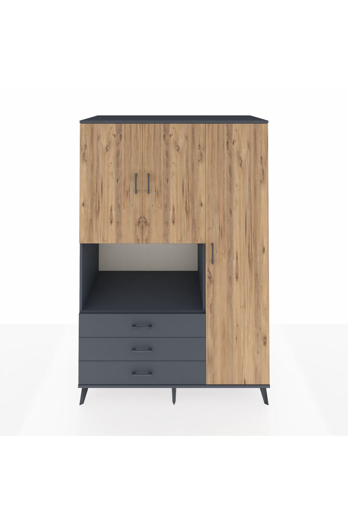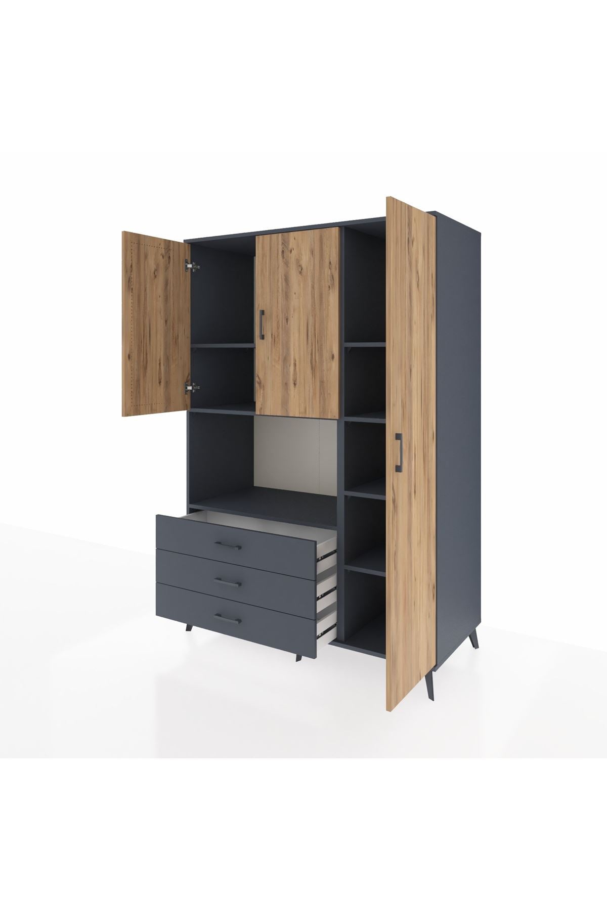 Kronos Dolap 7 Raflı 3 Çekmeceli 3 Kapaklı 132x59x195 Antrasit-Çam/Antrasit