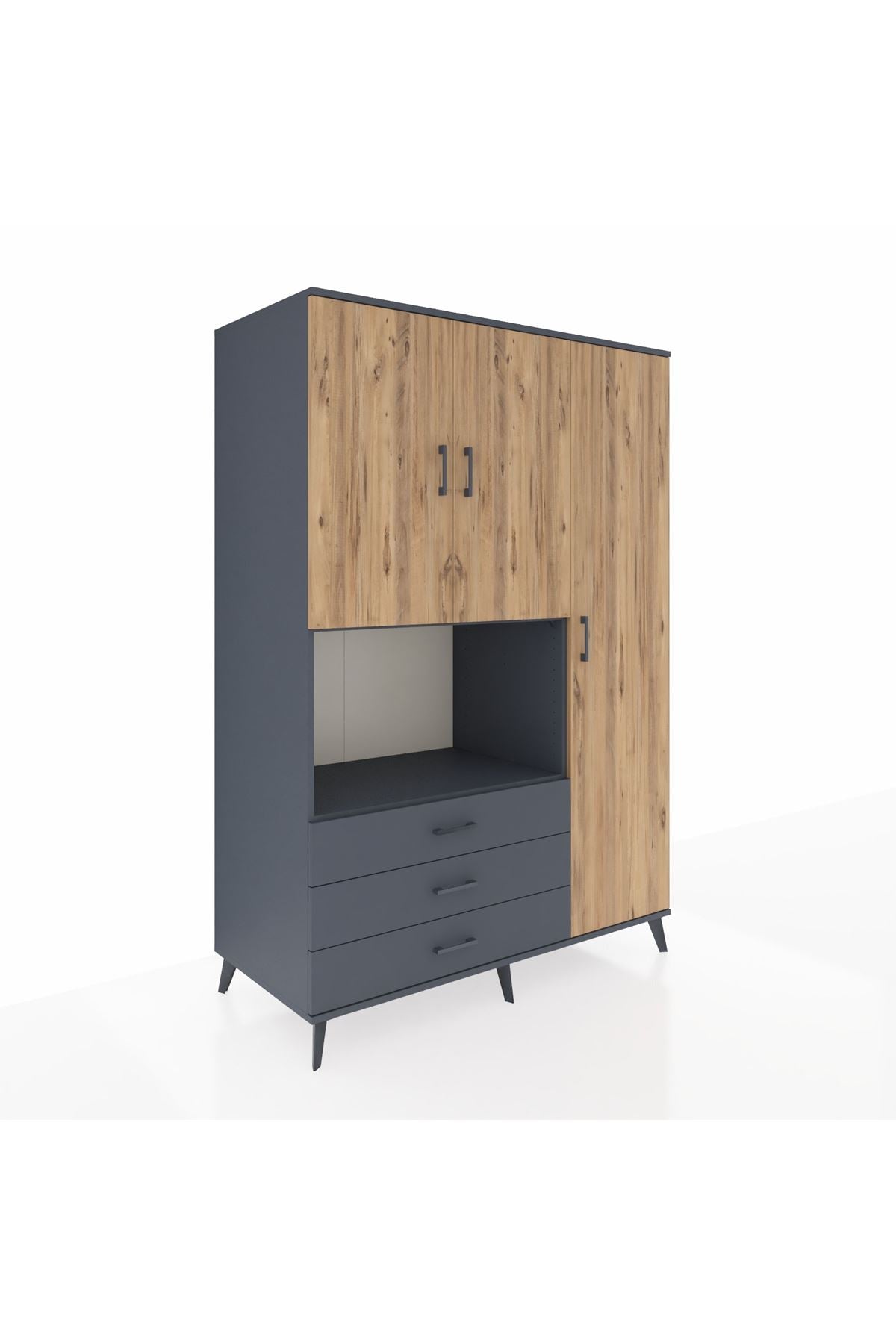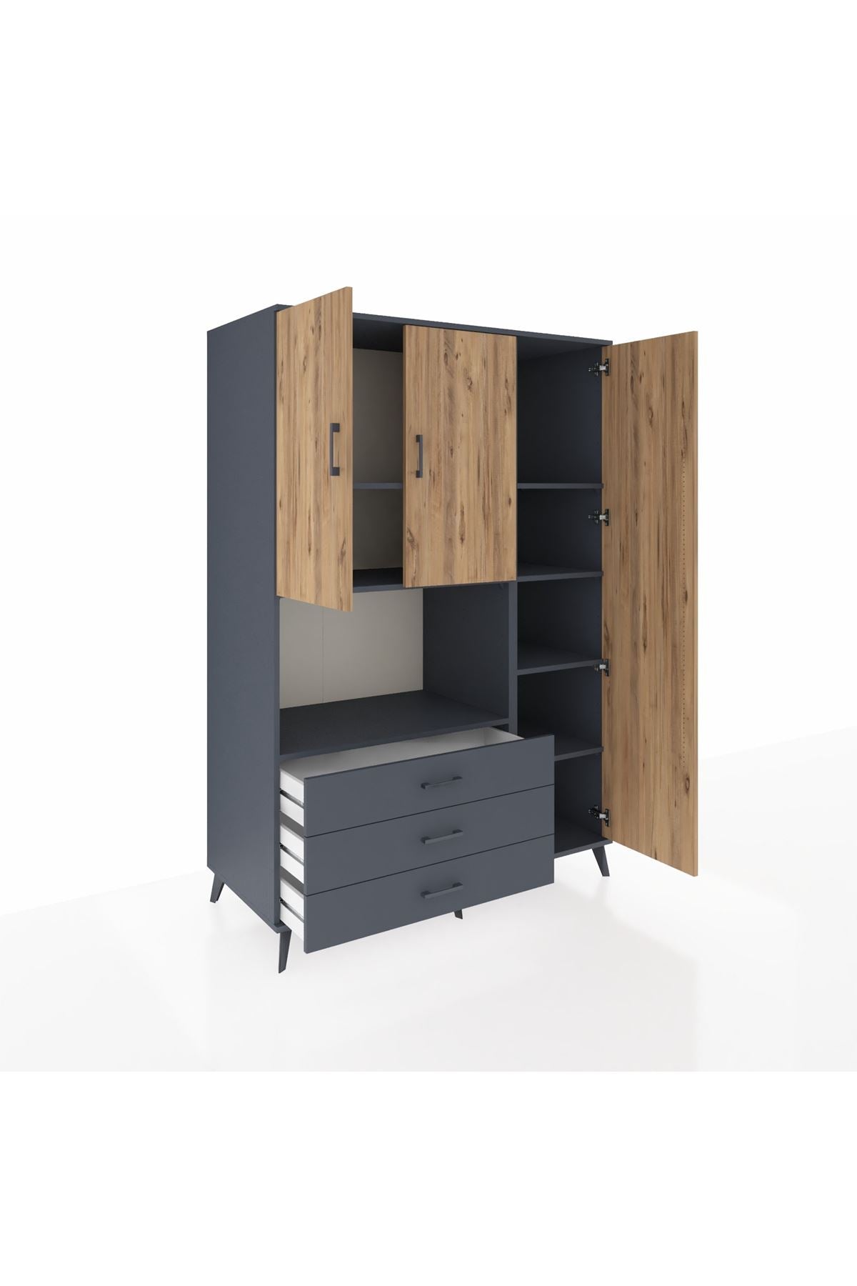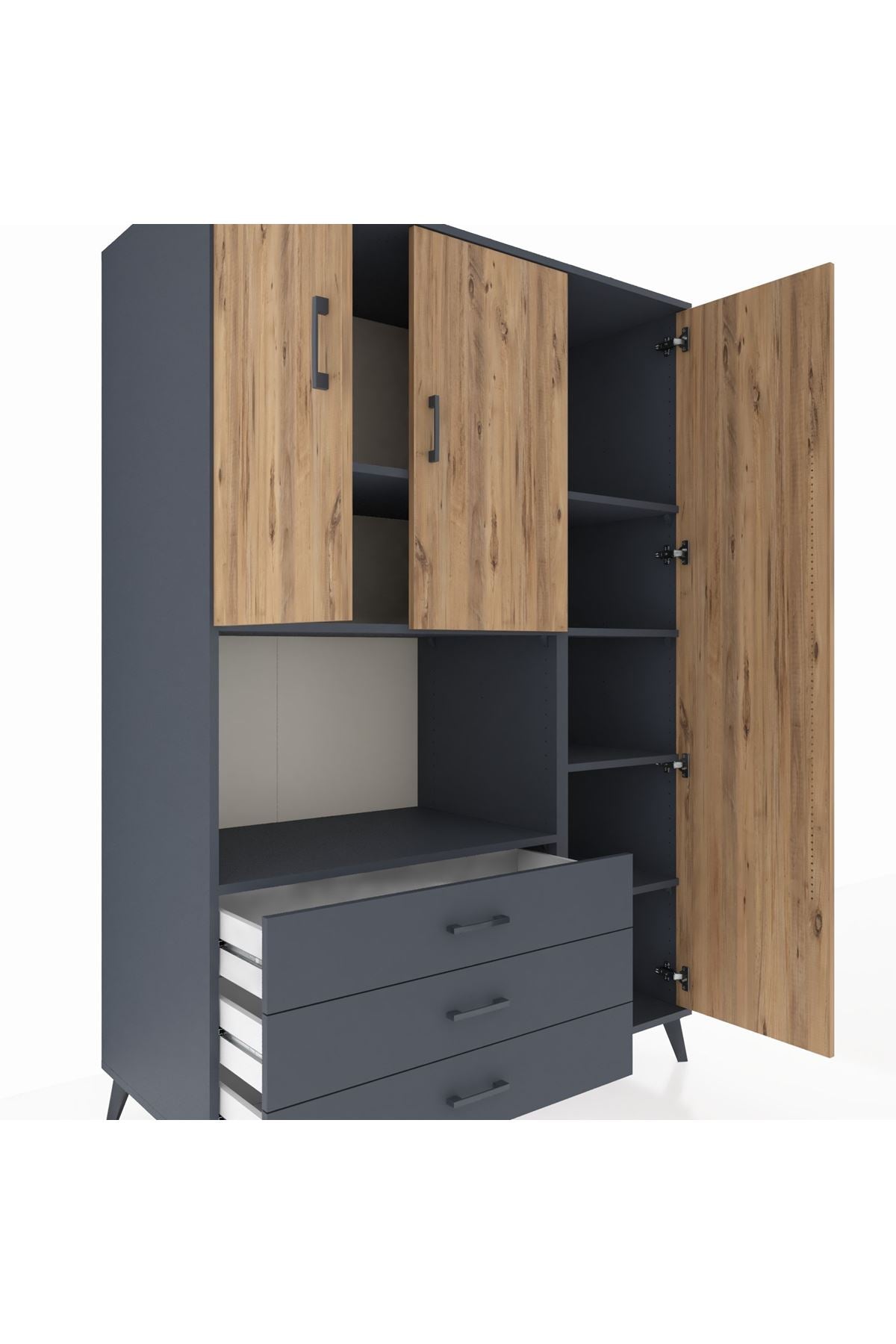 Kronos Dolap 7 Raflı 3 Çekmeceli 3 Kapaklı 132x59x195 Antrasit-Çam/Antrasit