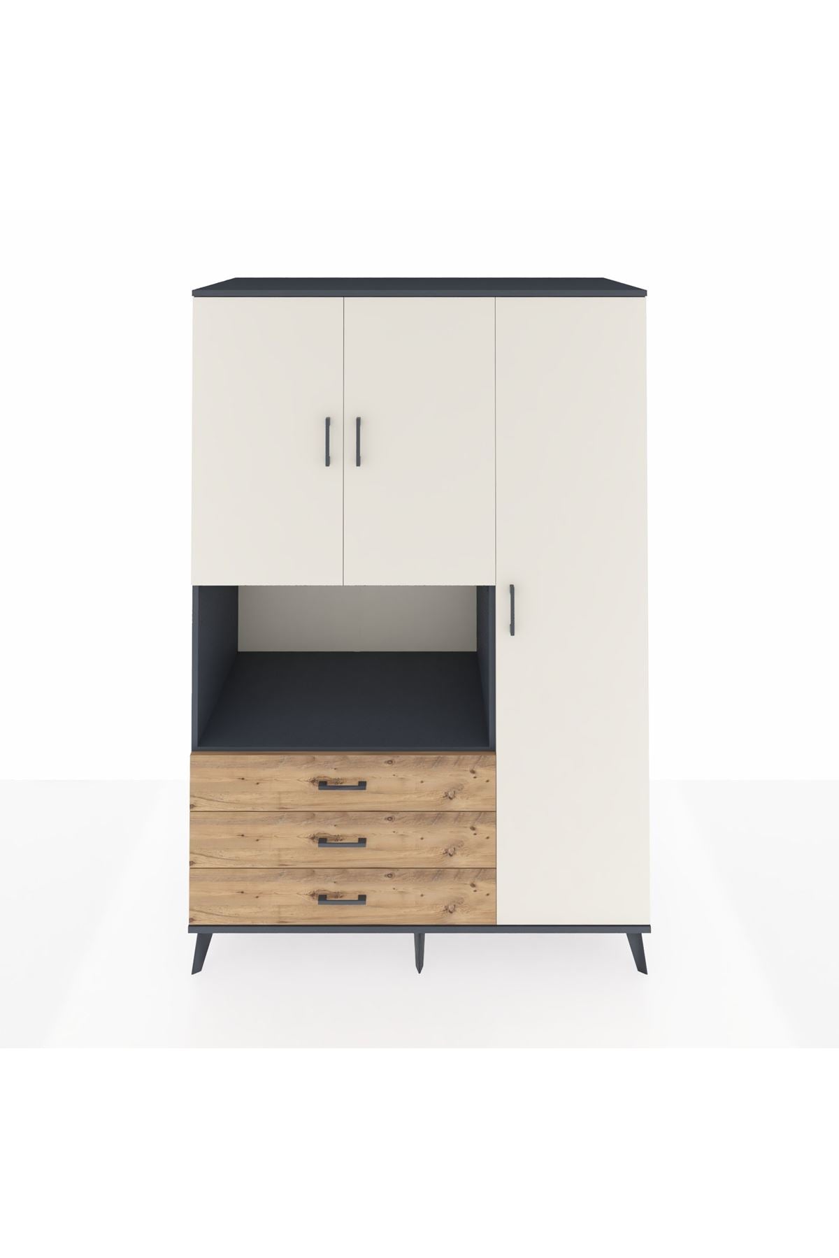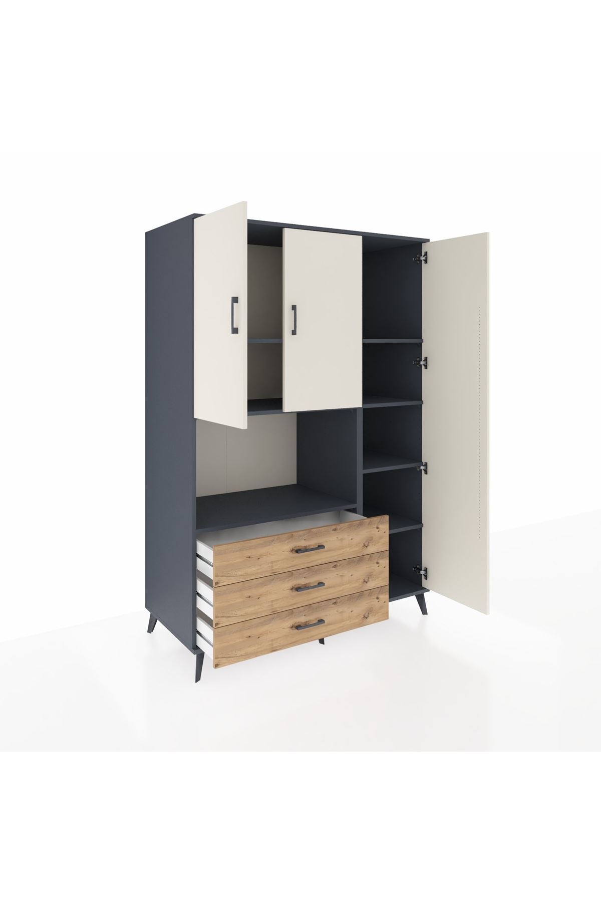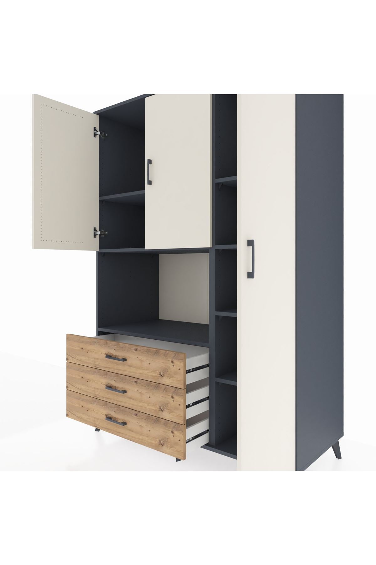 Kronos Dolap 7 Raflı 3 Çekmeceli 3 Kapaklı 132x59x195 Antrasit-Aytaşı/Çam