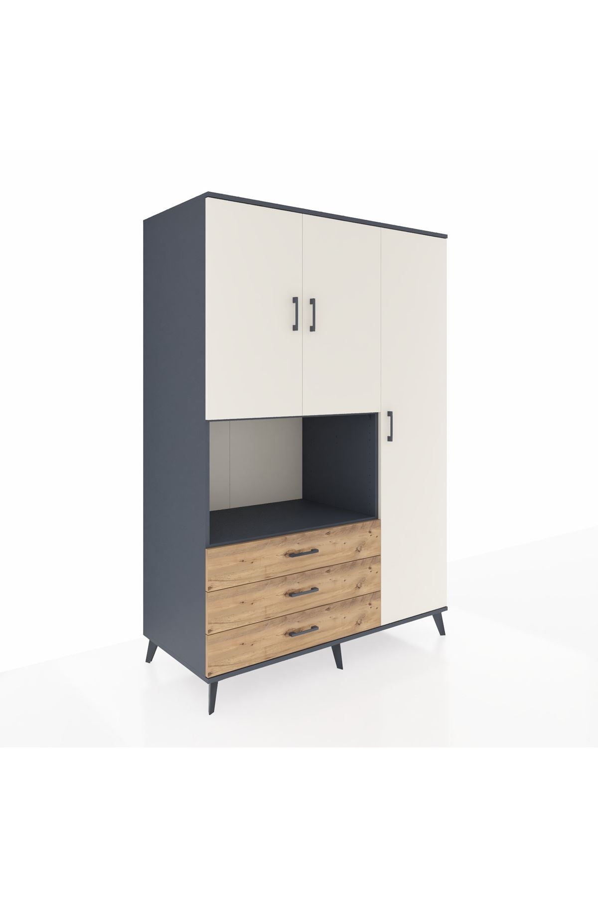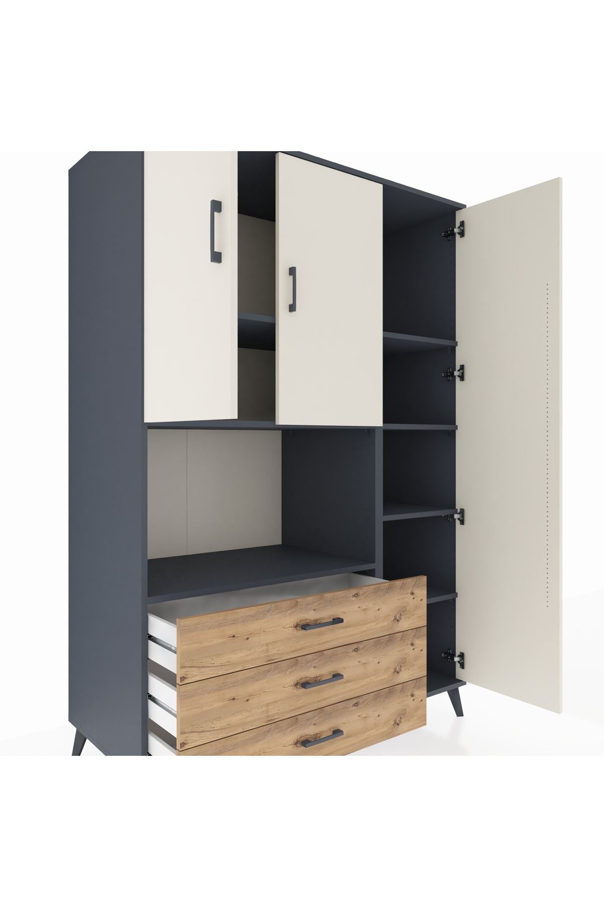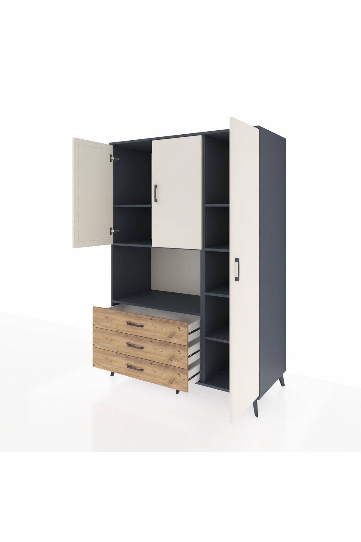 Kronos Dolap 7 Raflı 3 Çekmeceli 3 Kapaklı 132x59x195 Antrasit-Aytaşı/Çam