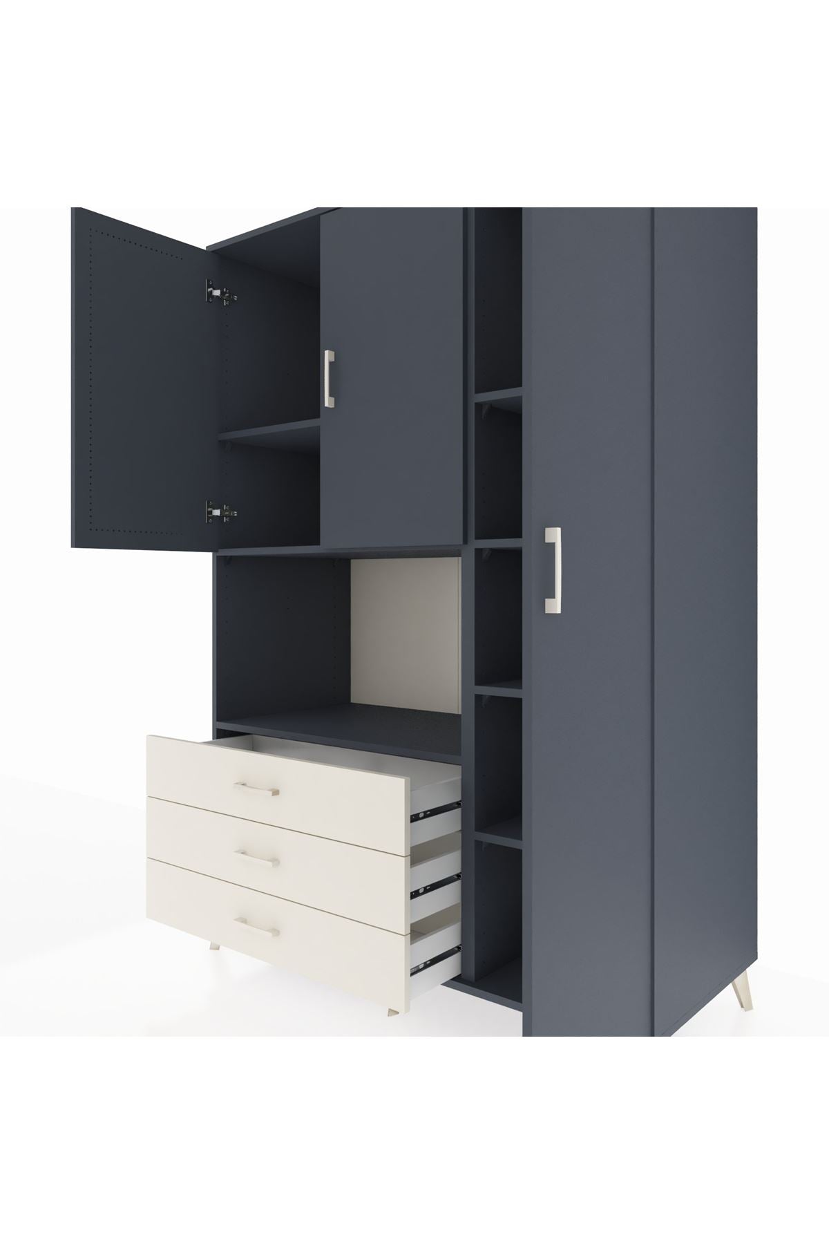 Kronos Dolap 7 Raflı 3 Çekmeceli 3 Kapaklı 132x59x195 Antrasit-Antrasit/Aytaşı