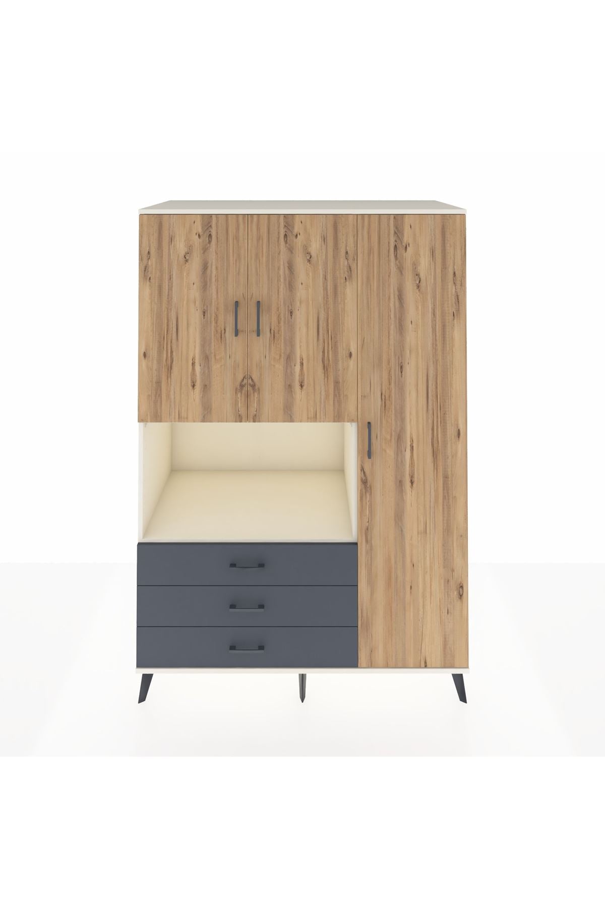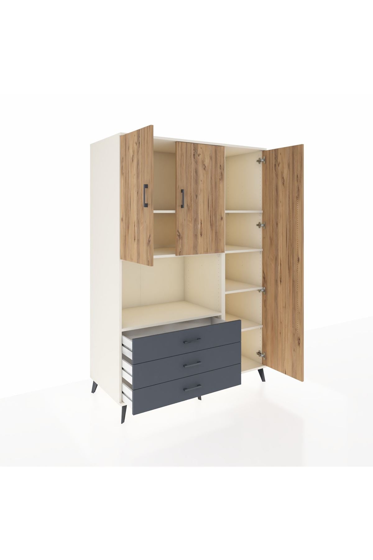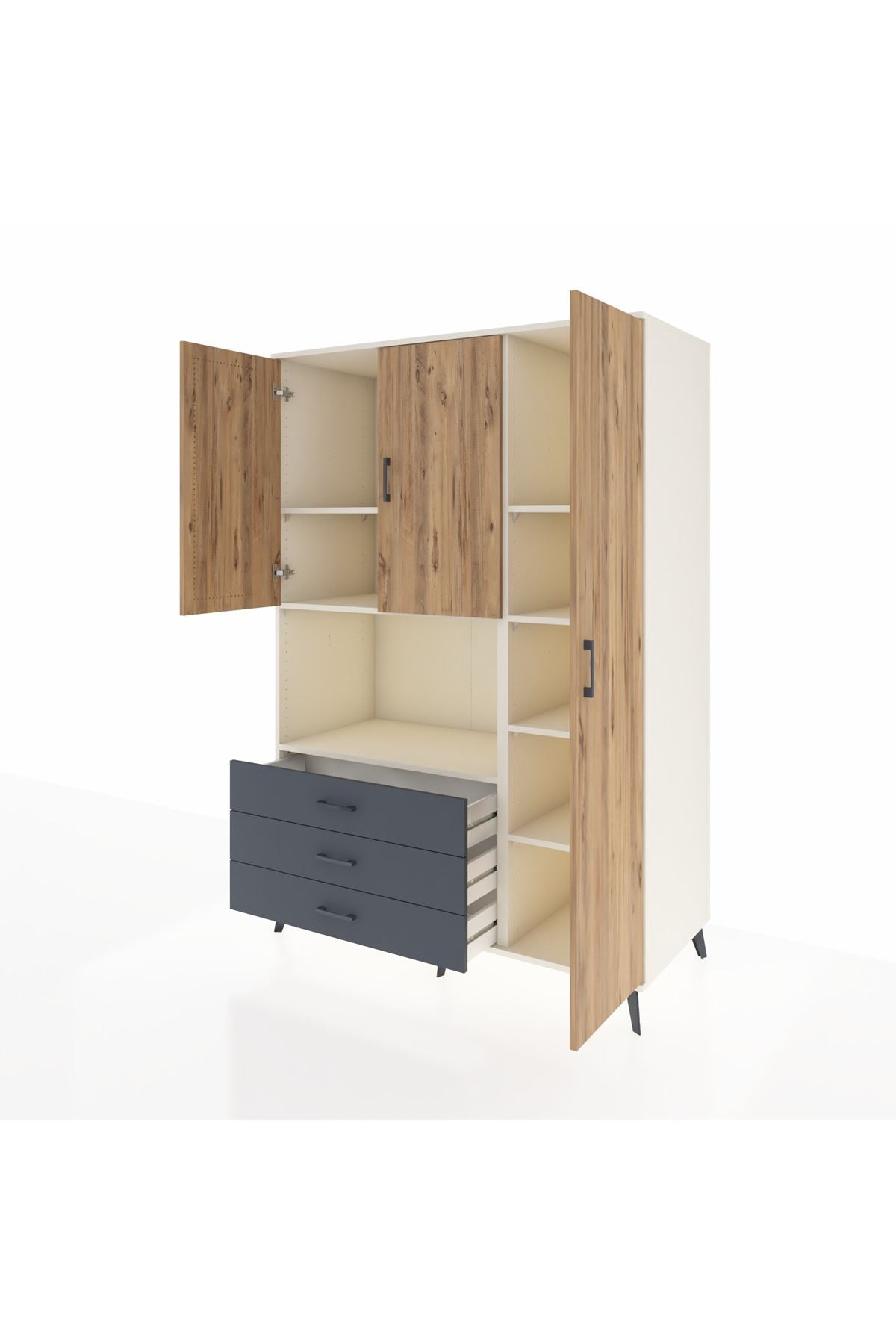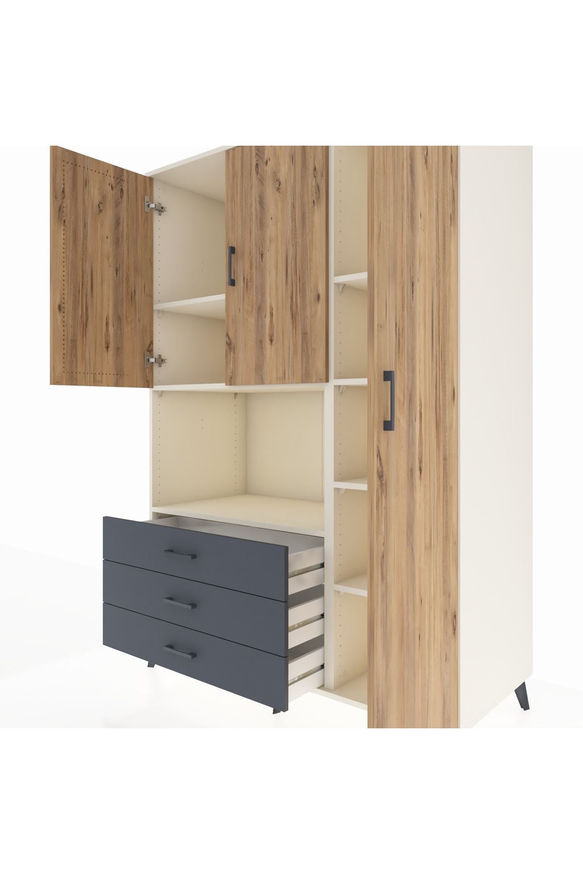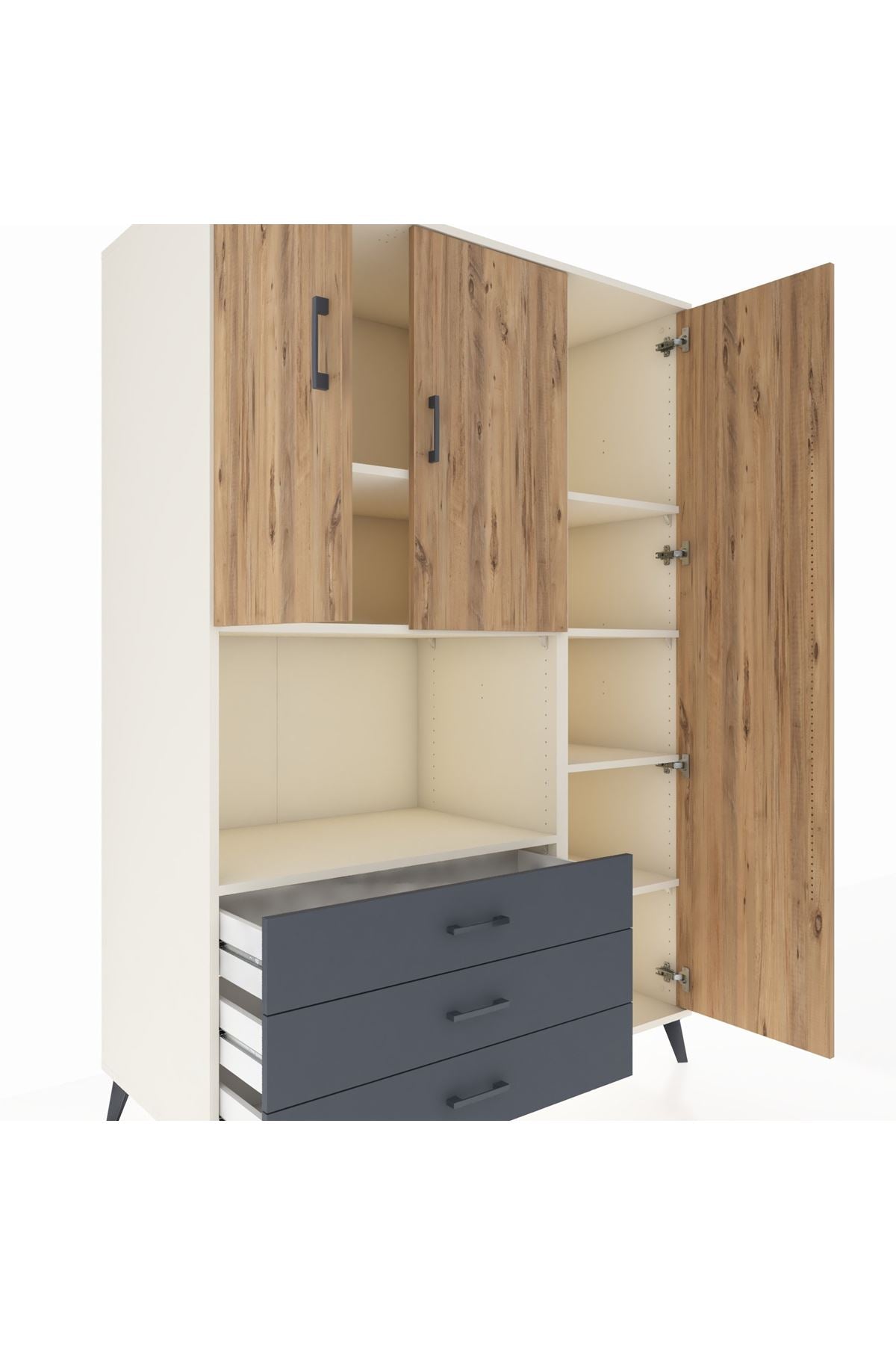 Kronos Dolap 7 Raflı 3 Çekmeceli 3 Kapaklı 132x59x195 Aytaşı-Çam/Antrasit