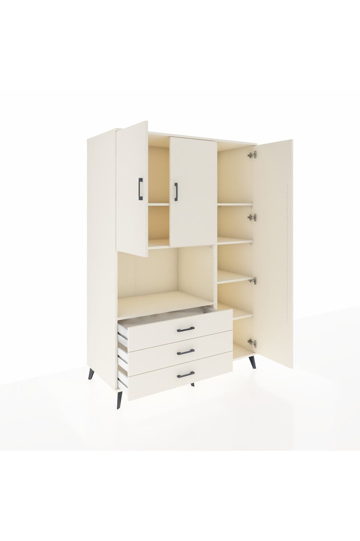 - 🗄️ 9 raf & 5 çekmece & 3 kapak