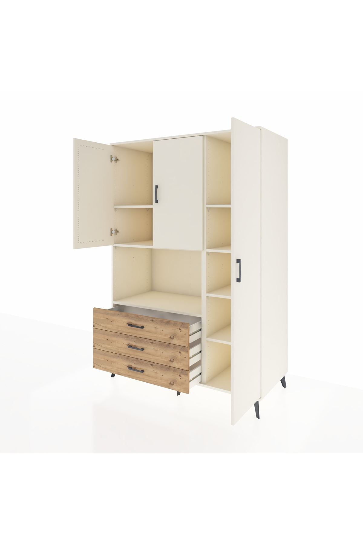 Kronos Dolap 7 Raflı 3 Çekmeceli 3 Kapaklı 132x59x195 Aytaşı-Aytaşı/Çam