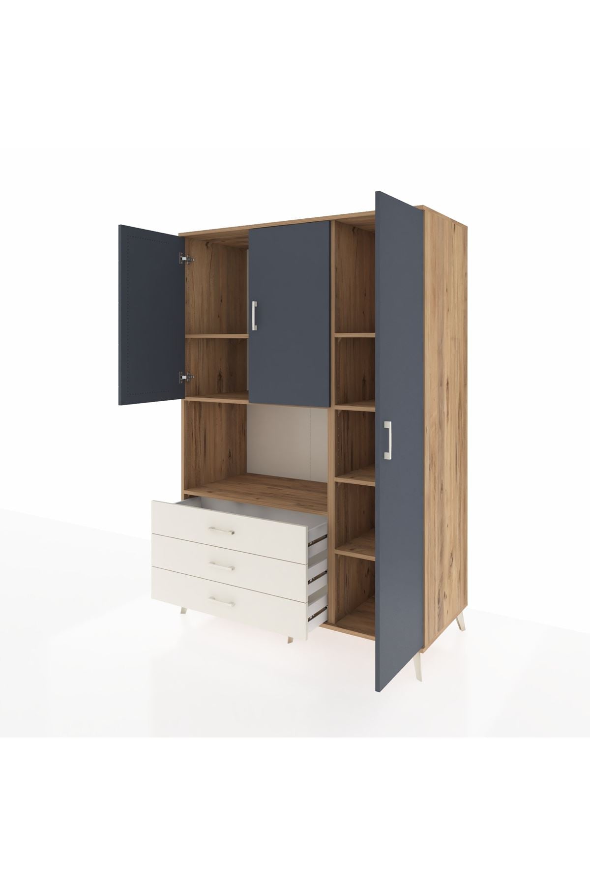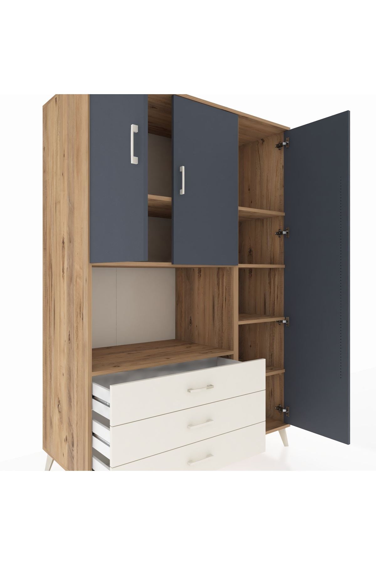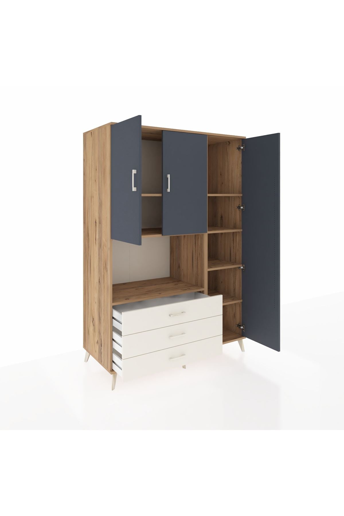 Kronos Dolap 7 Raflı 3 Çekmeceli 3 Kapaklı 132x59x195 Çam-Antrasit/Aytaşı