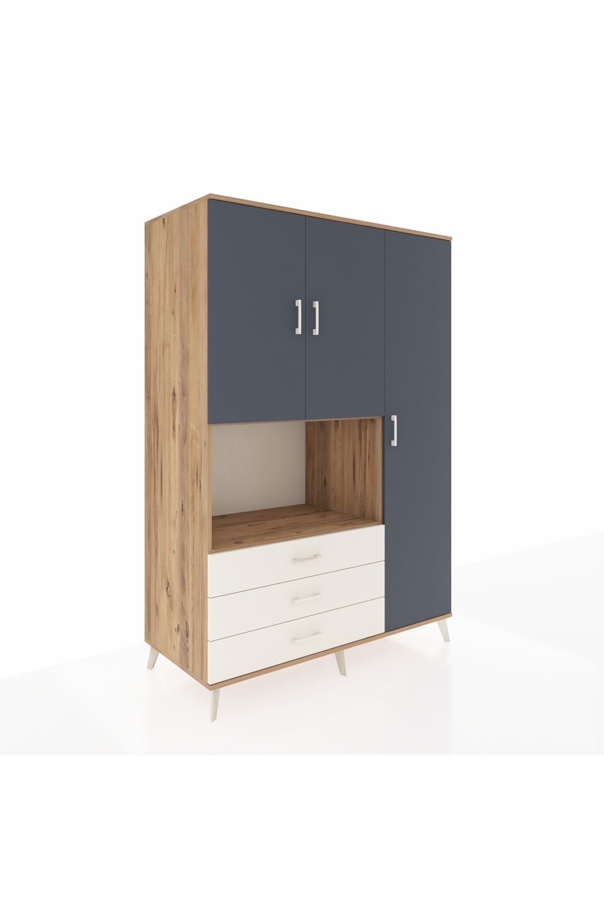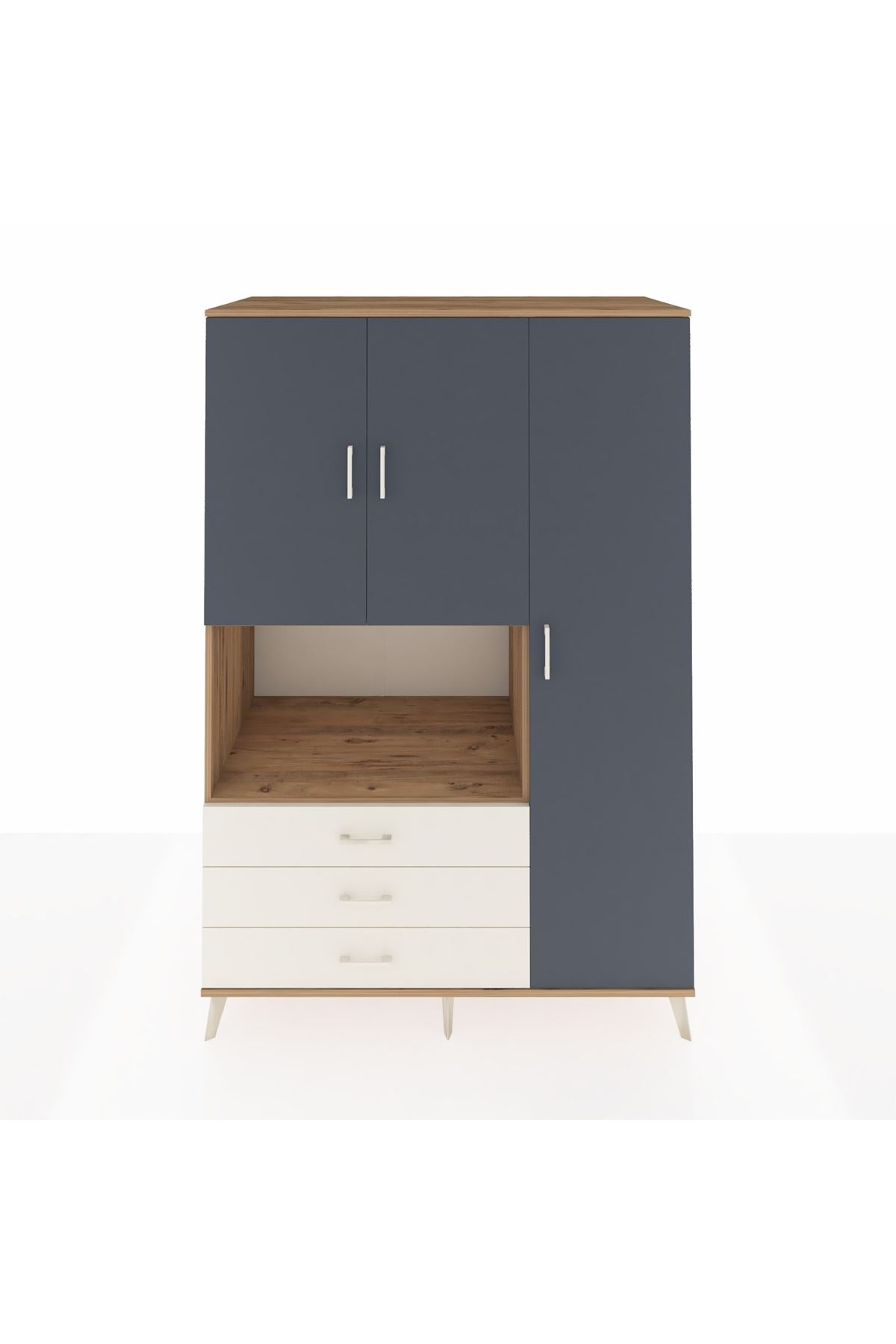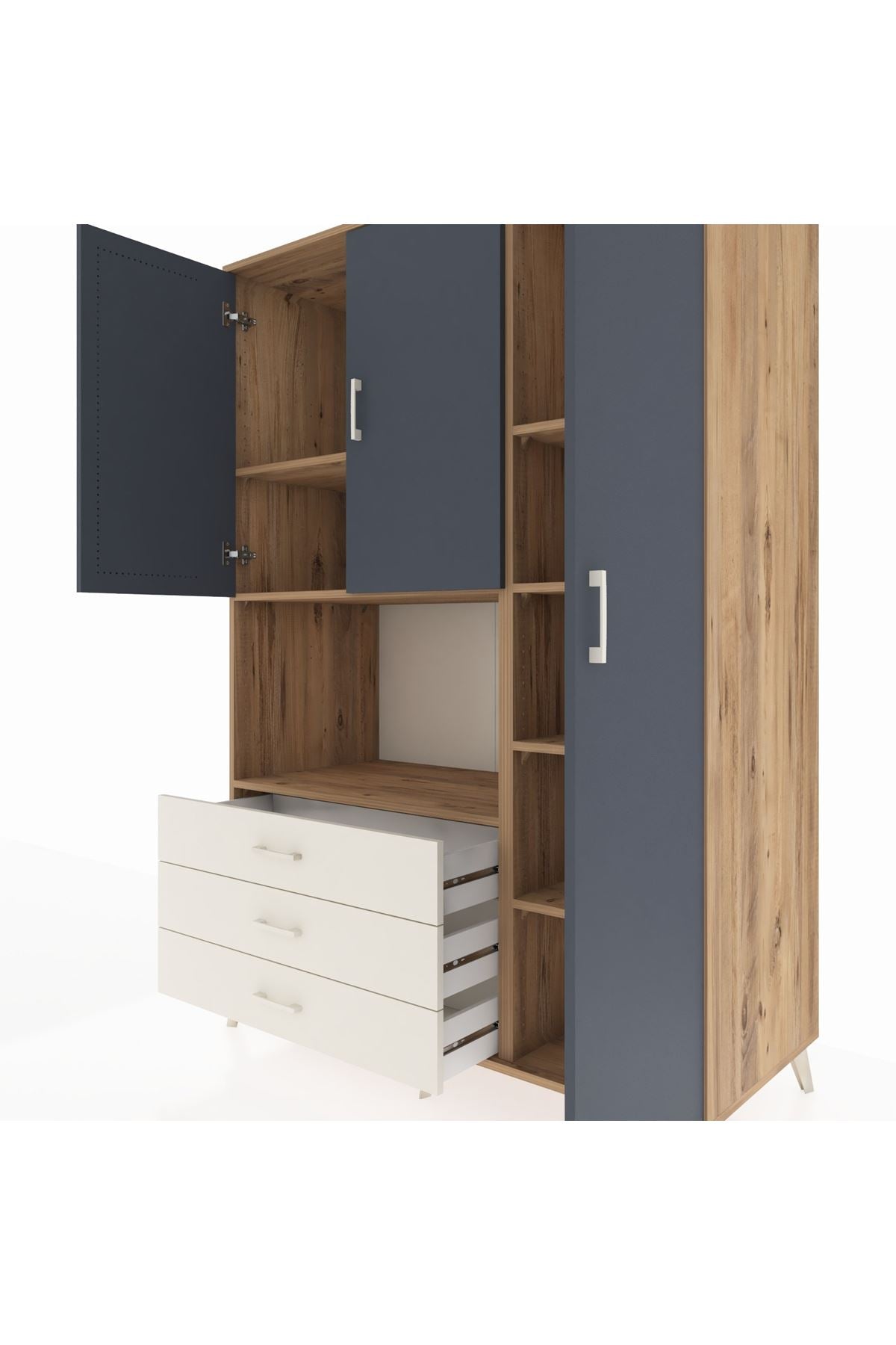 Kronos Dolap 7 Raflı 3 Çekmeceli 3 Kapaklı 132x59x195 Çam-Antrasit/Aytaşı