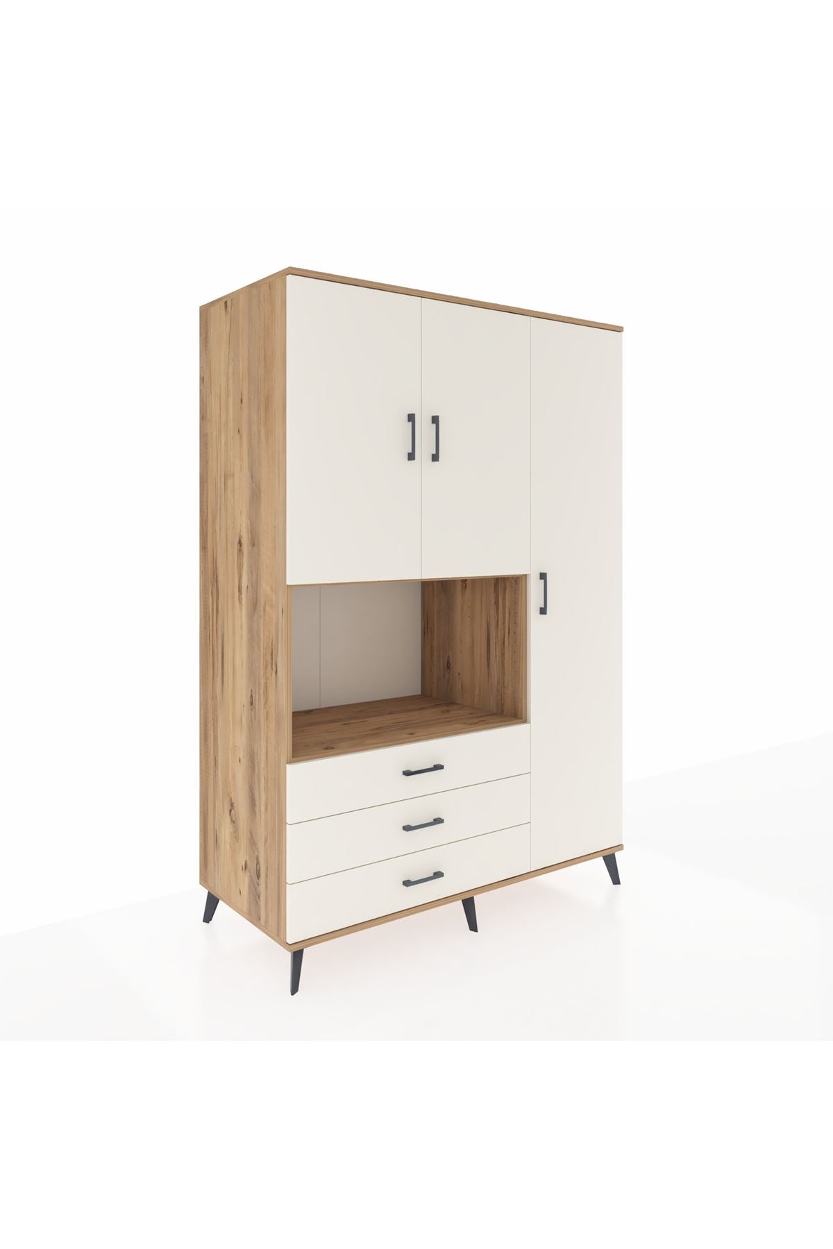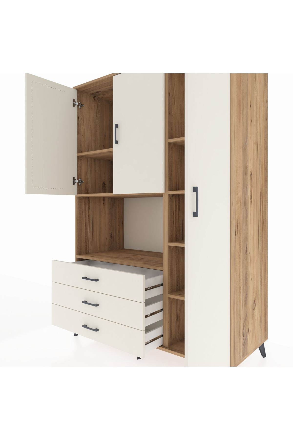 Kronos Dolap 7 Raflı 3 Çekmeceli 3 Kapaklı 132x59x195 Çam-Aytaşı/Aytaşı
