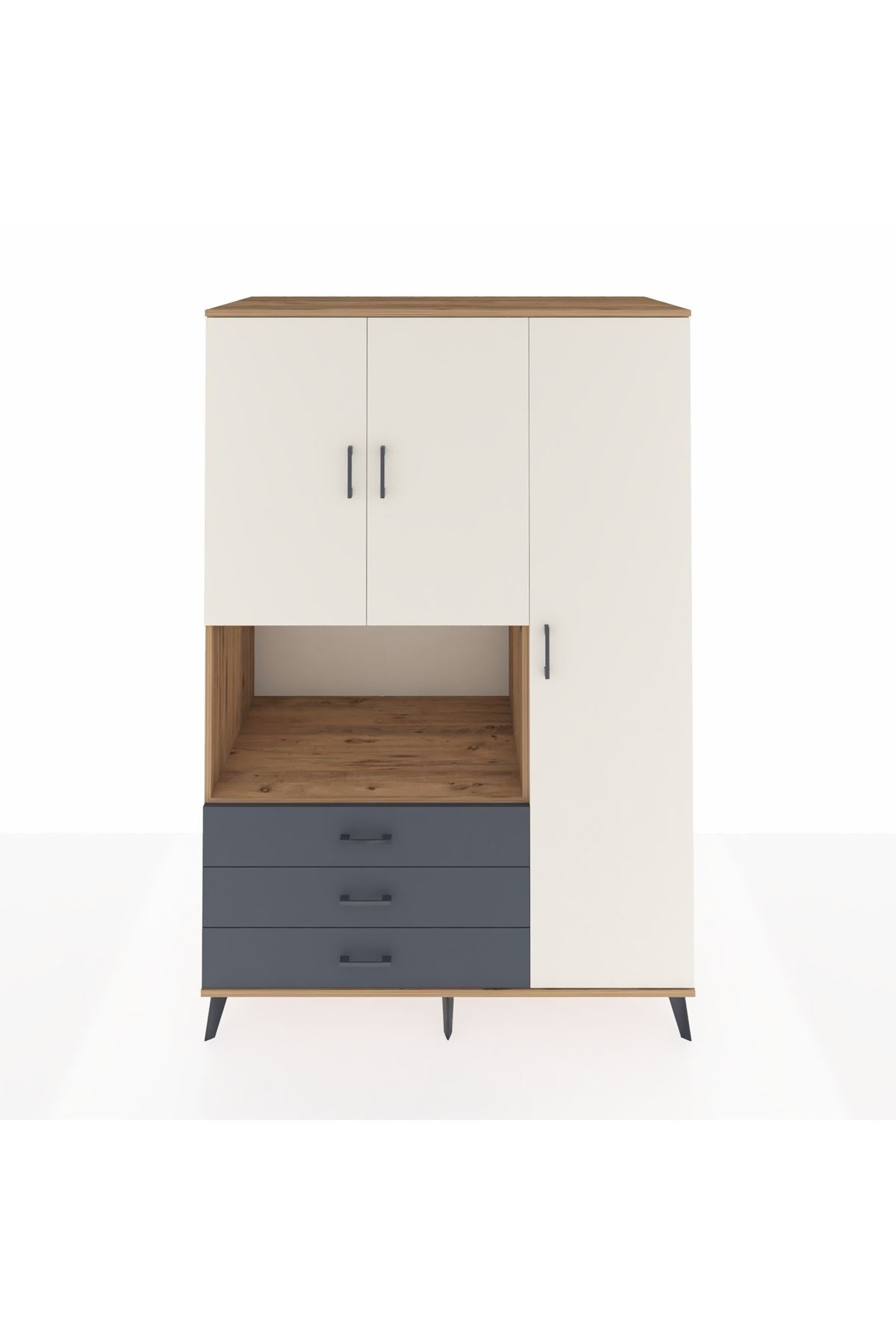Kronos Dolap 7 Raflı 3 Çekmeceli 3 Kapaklı 132x59x195 Çam-Aytaşı/Antrasit