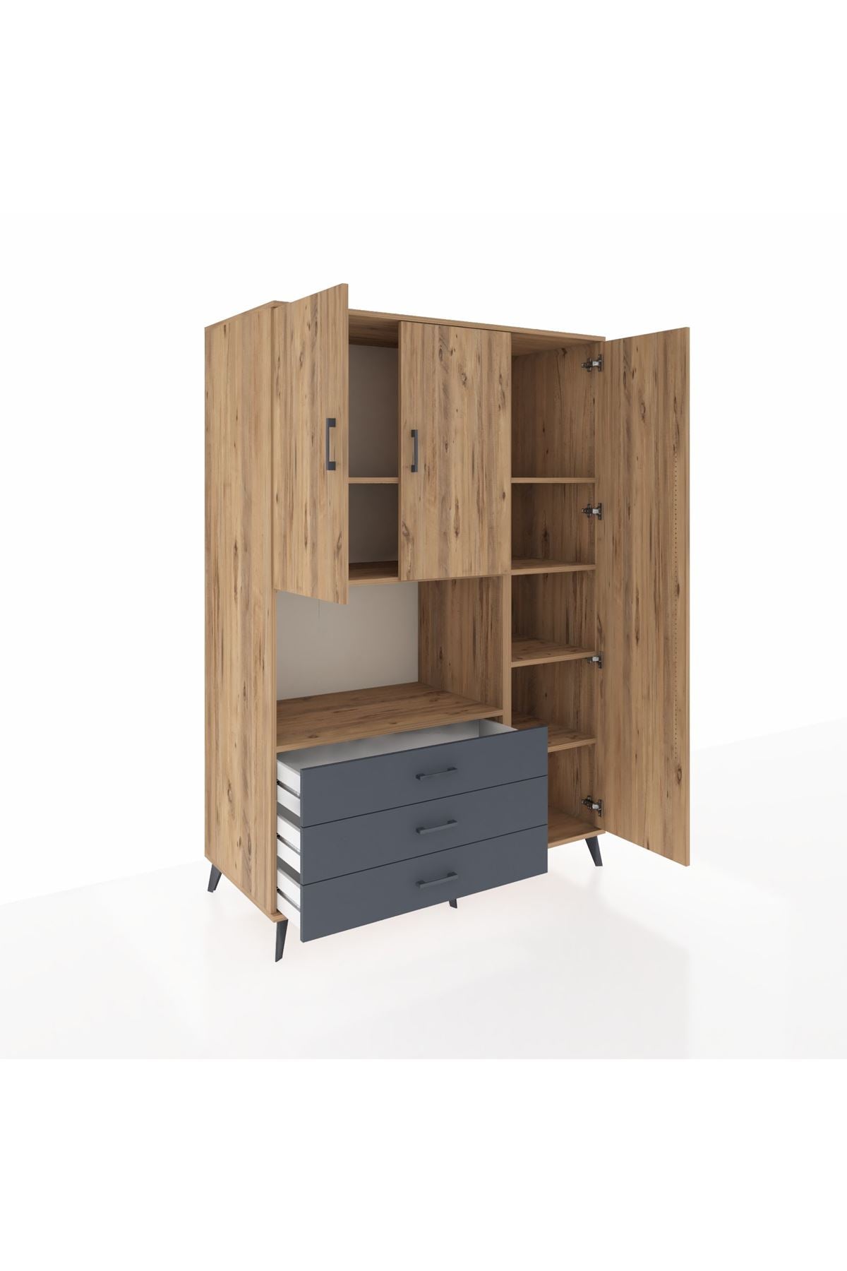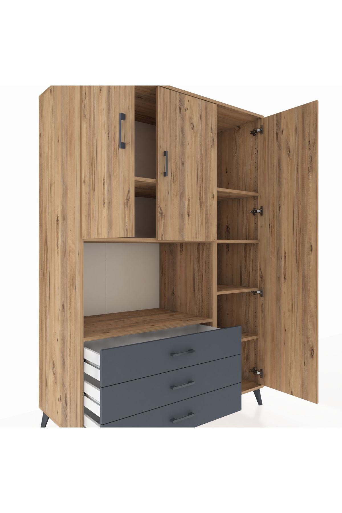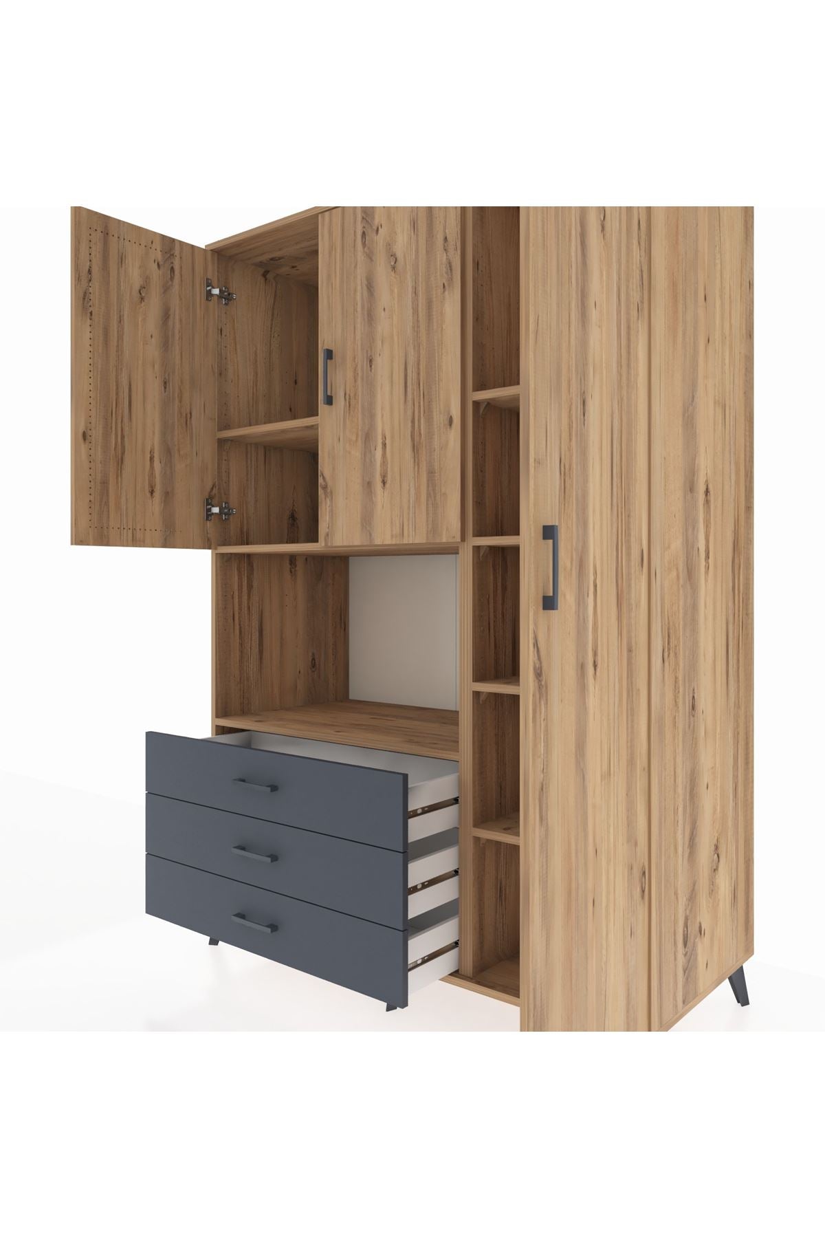 Kronos Dolap 7 Raflı 3 Çekmeceli 3 Kapaklı 132x59x195 Çam-Çam/Antrasit