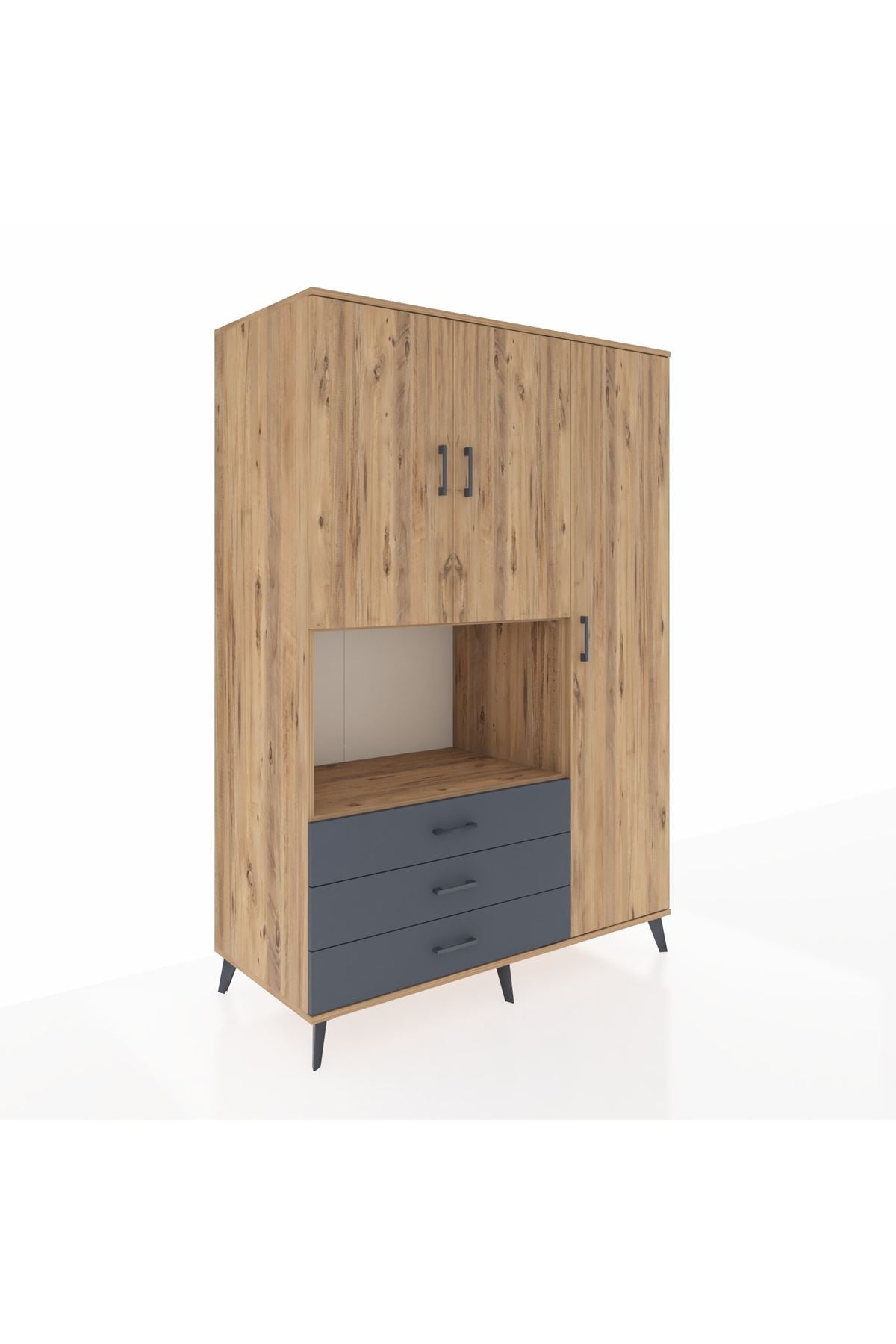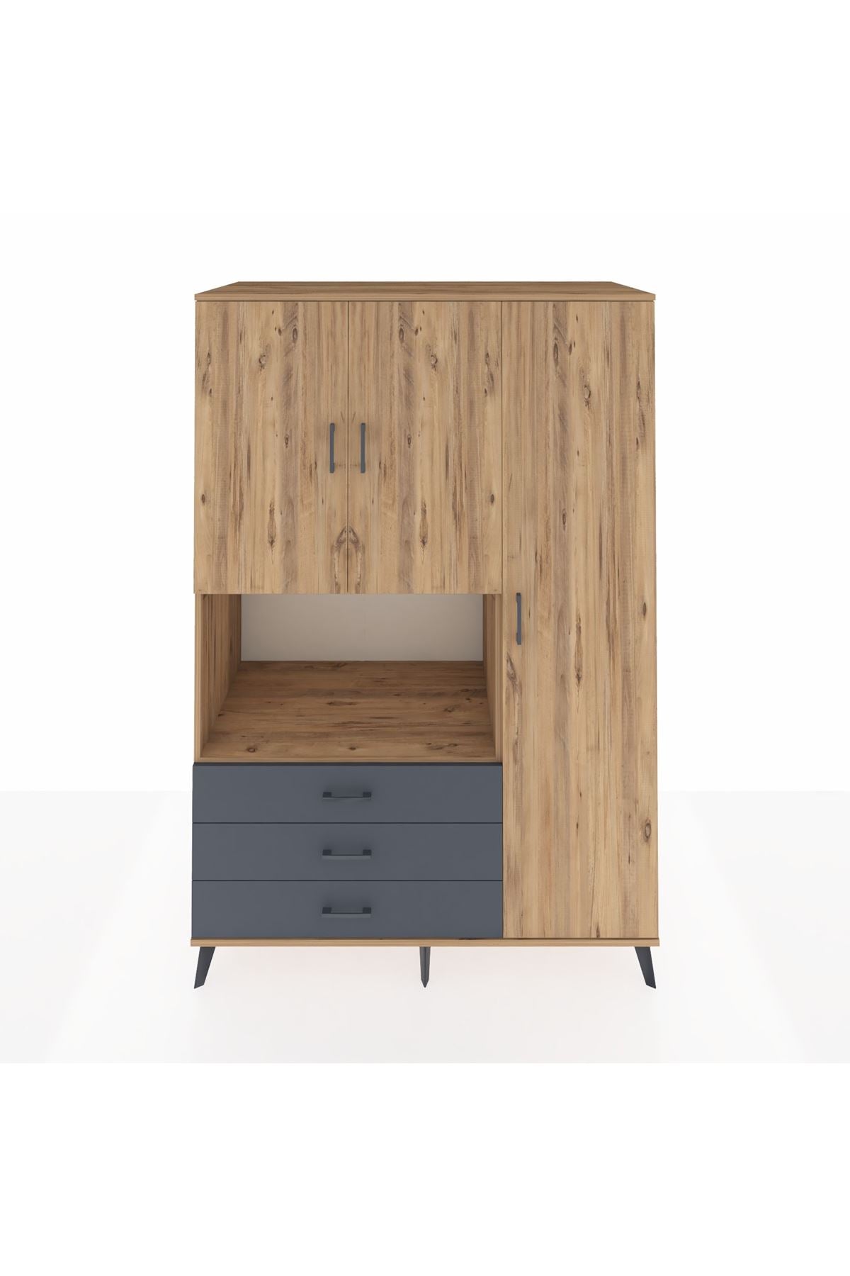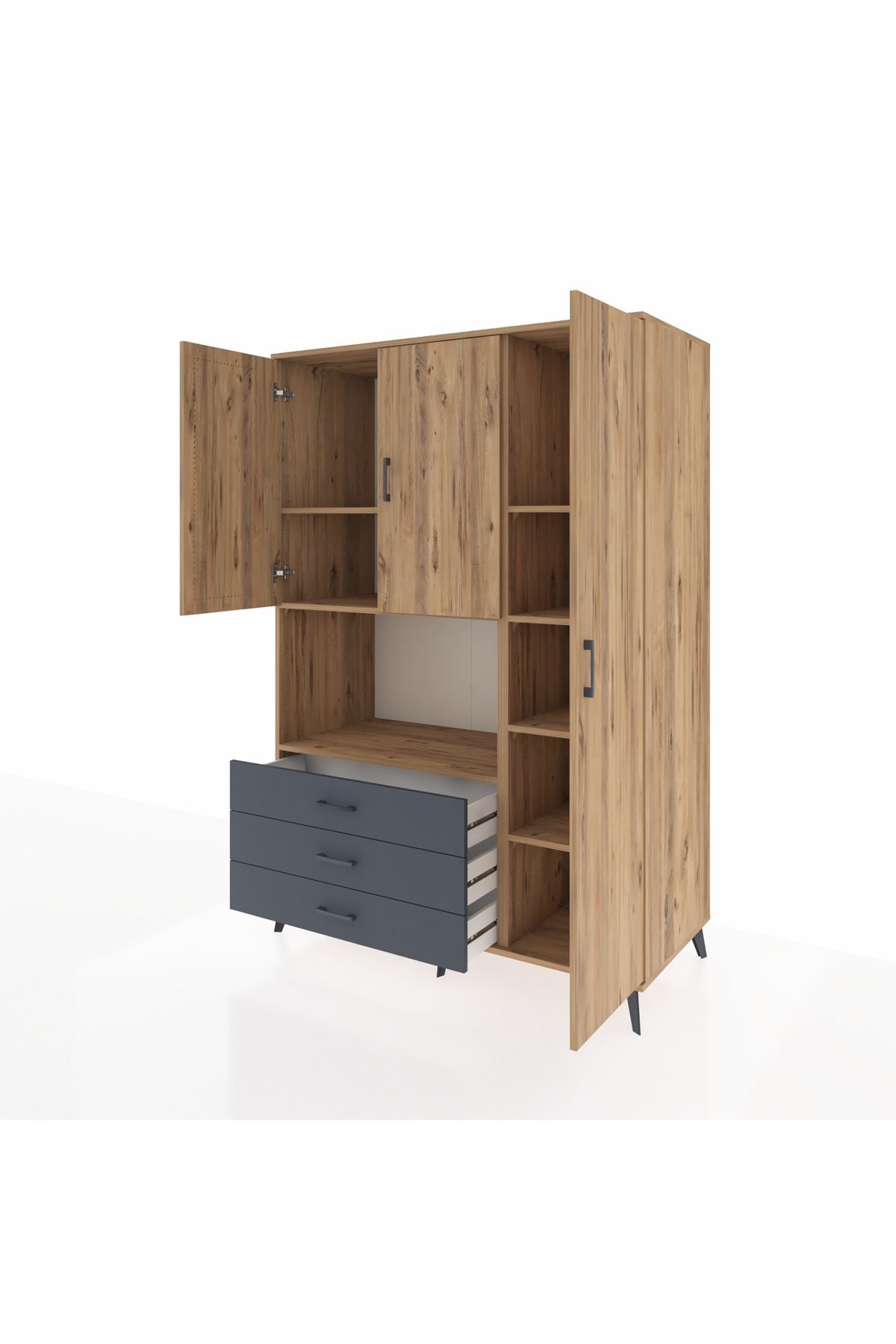 Kronos Dolap 7 Raflı 3 Çekmeceli 3 Kapaklı 132x59x195 Çam-Çam/Antrasit