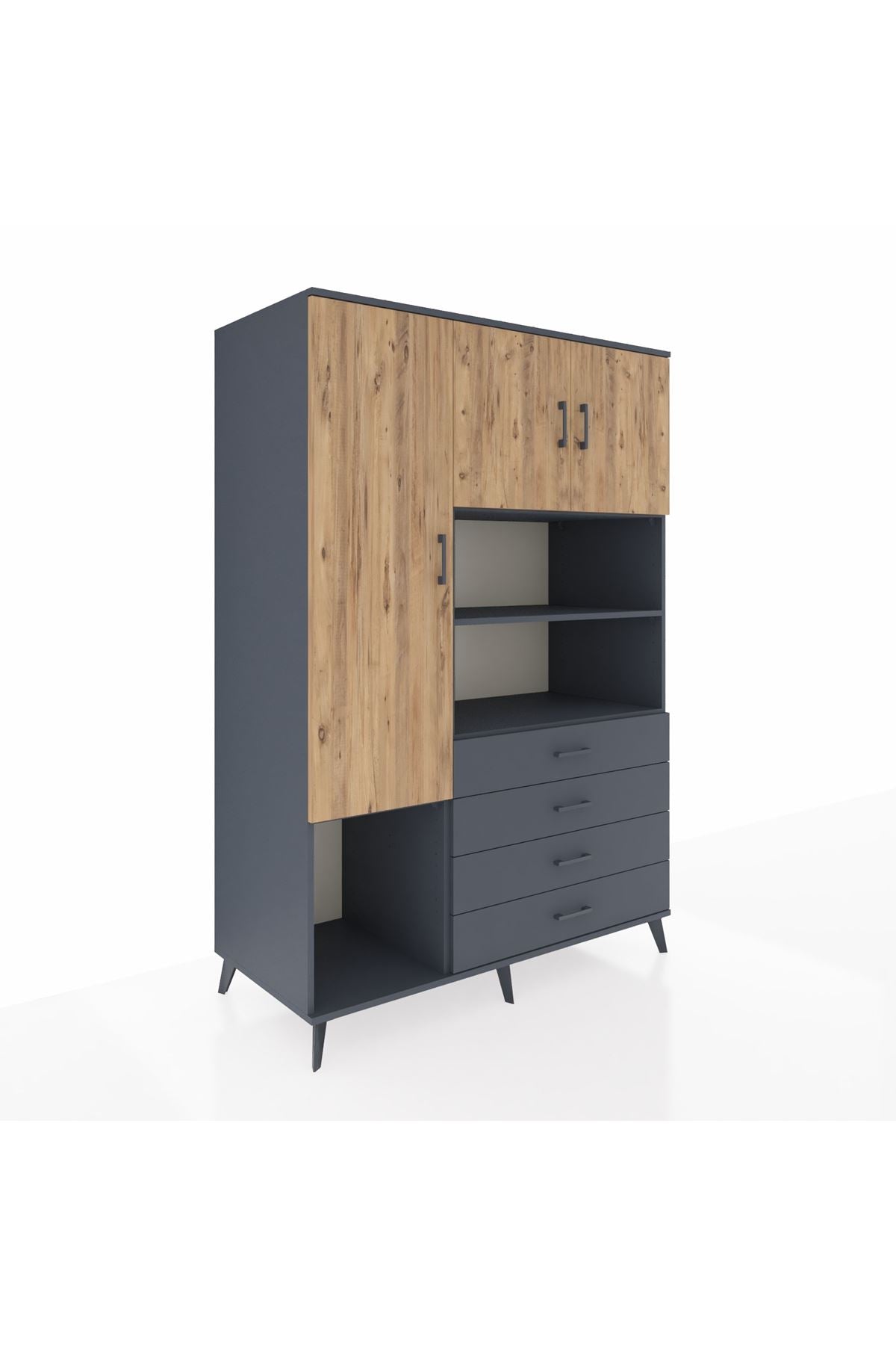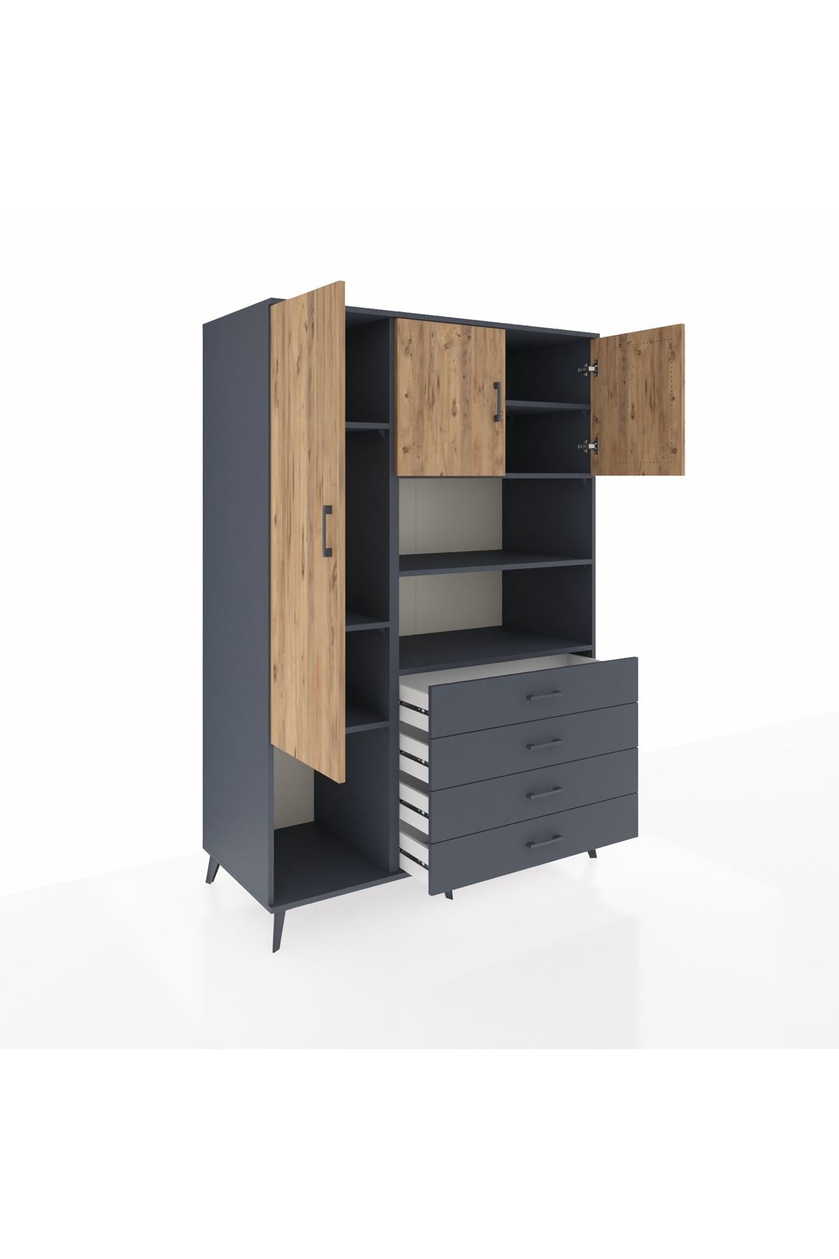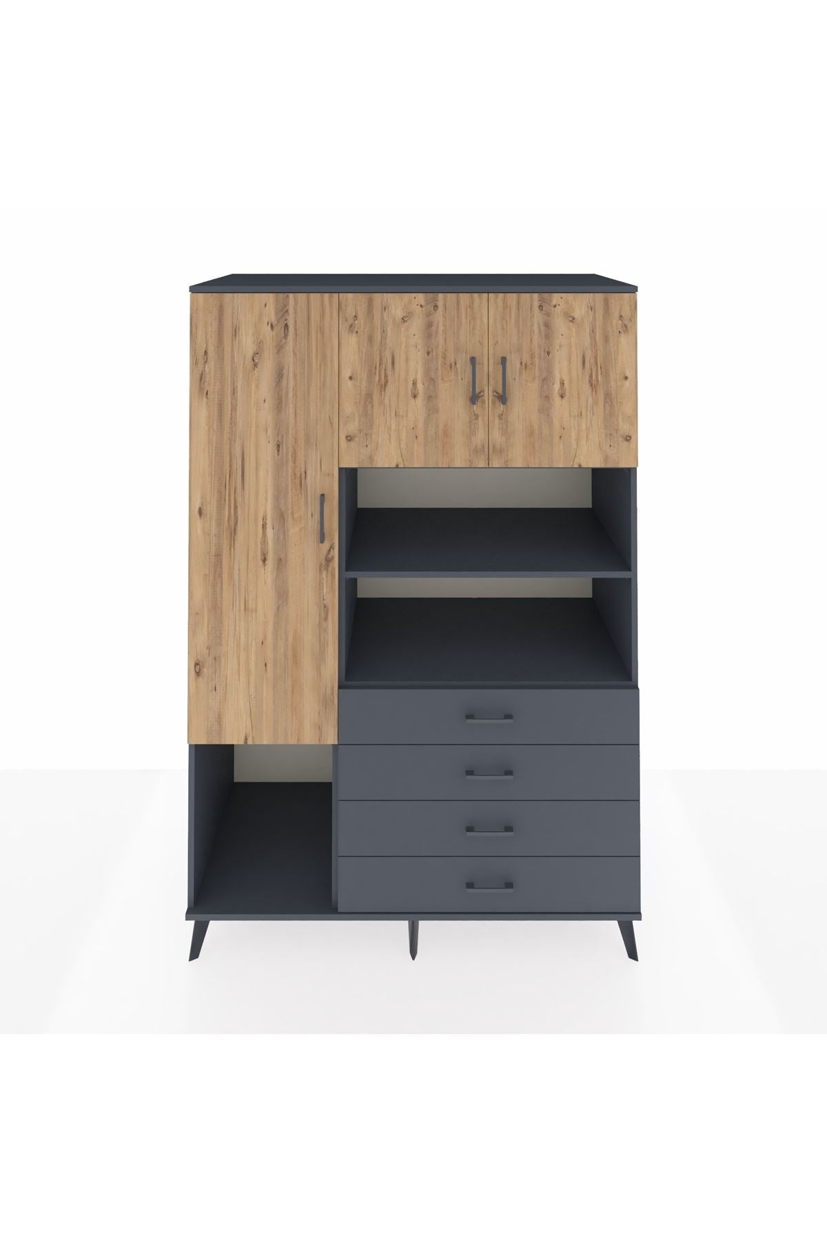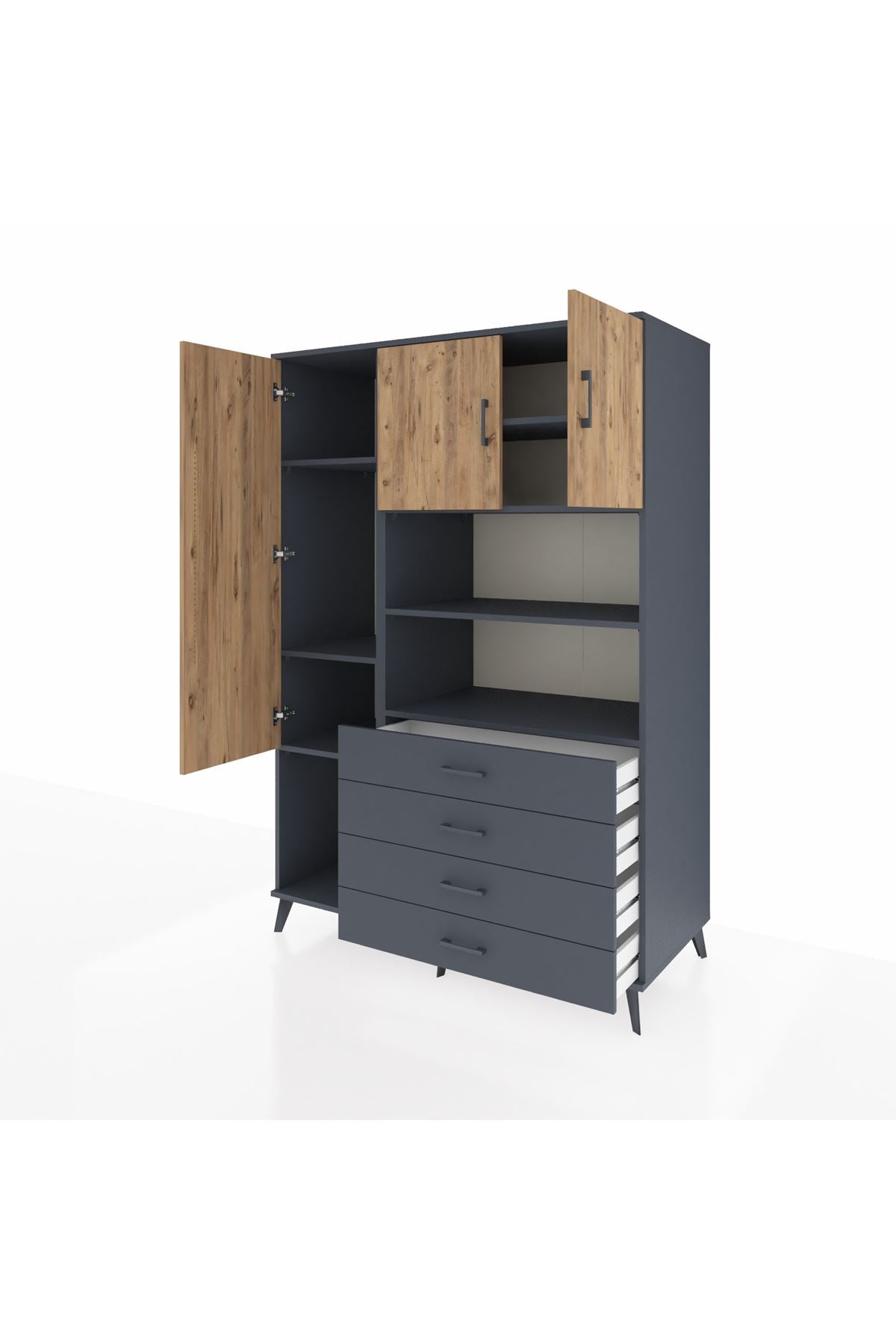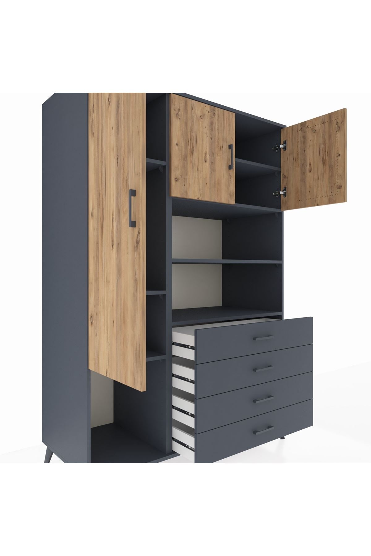 Kronos Dolap 7 Raflı 4 Çekmeceli 3 Kapaklı 132x59x195 Antrasit-Çam/Antrasit