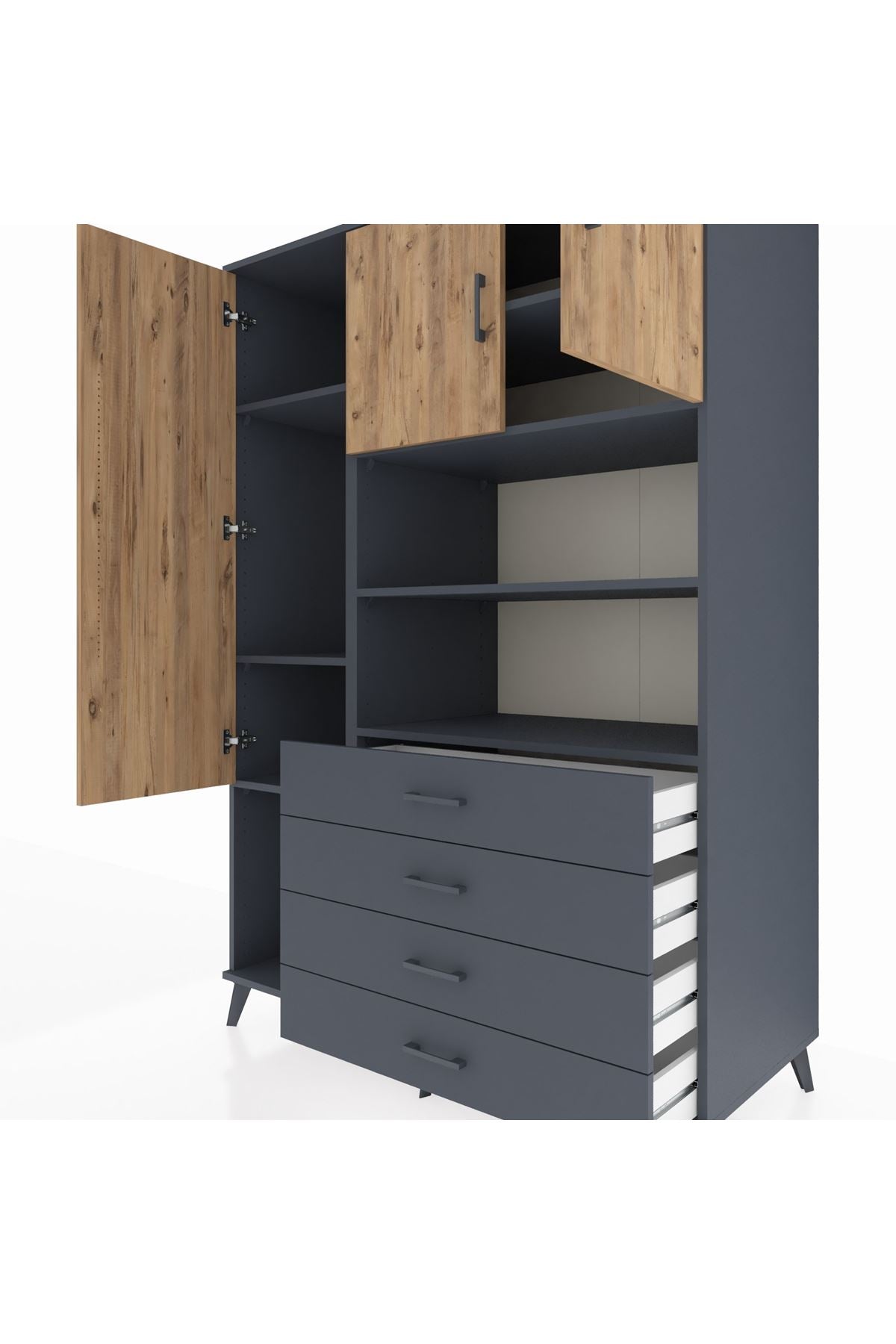 🌞 Kronos Dolap 7 Raflı 4 Çekmeceli 3 Kapaklı – Antrasit-Çam/Antrasit