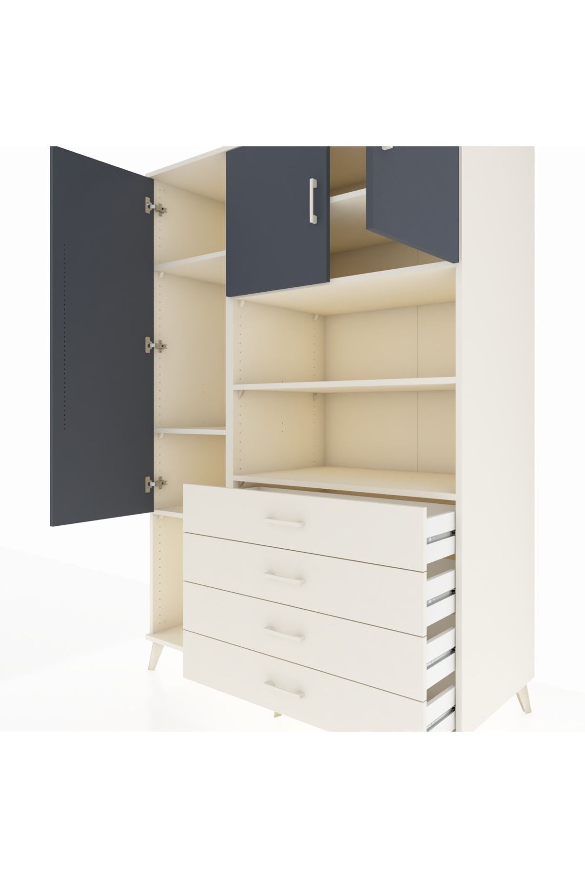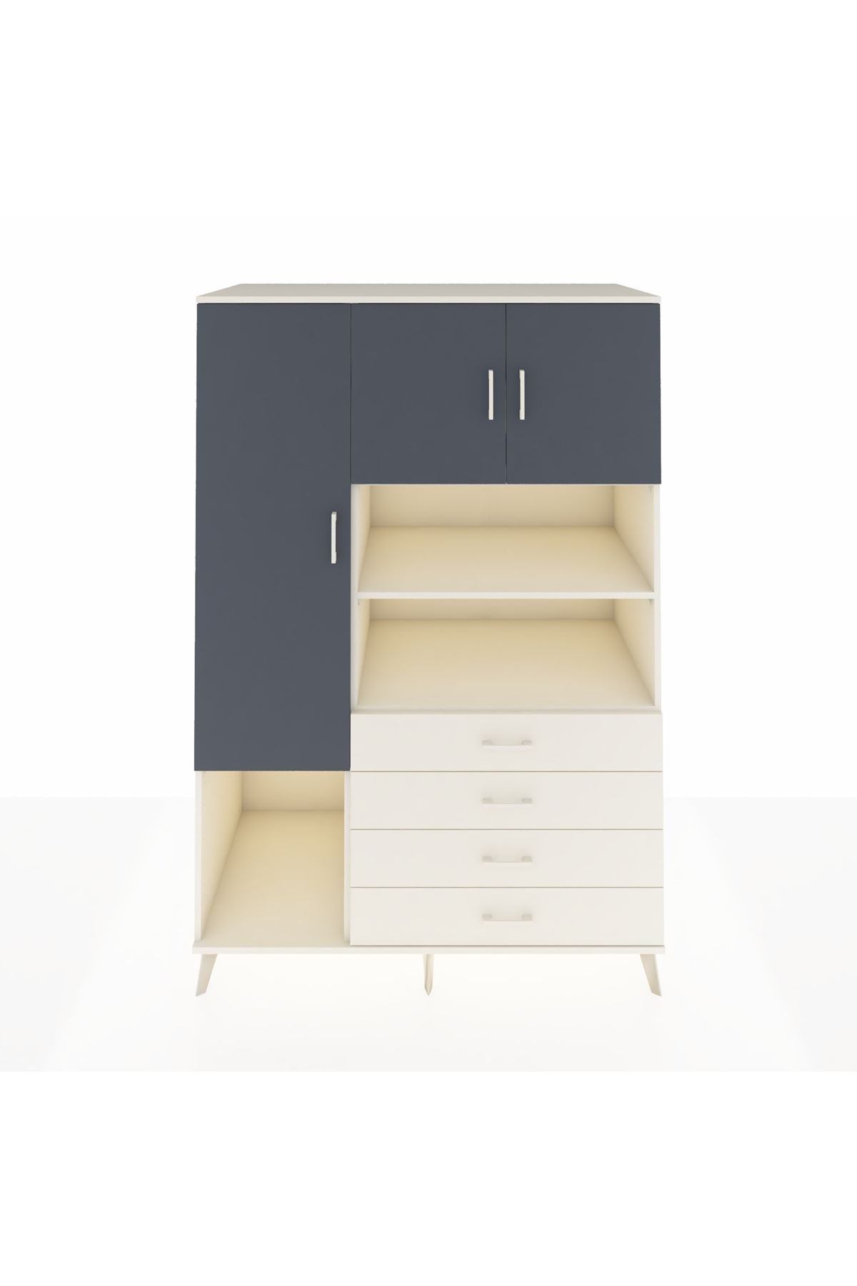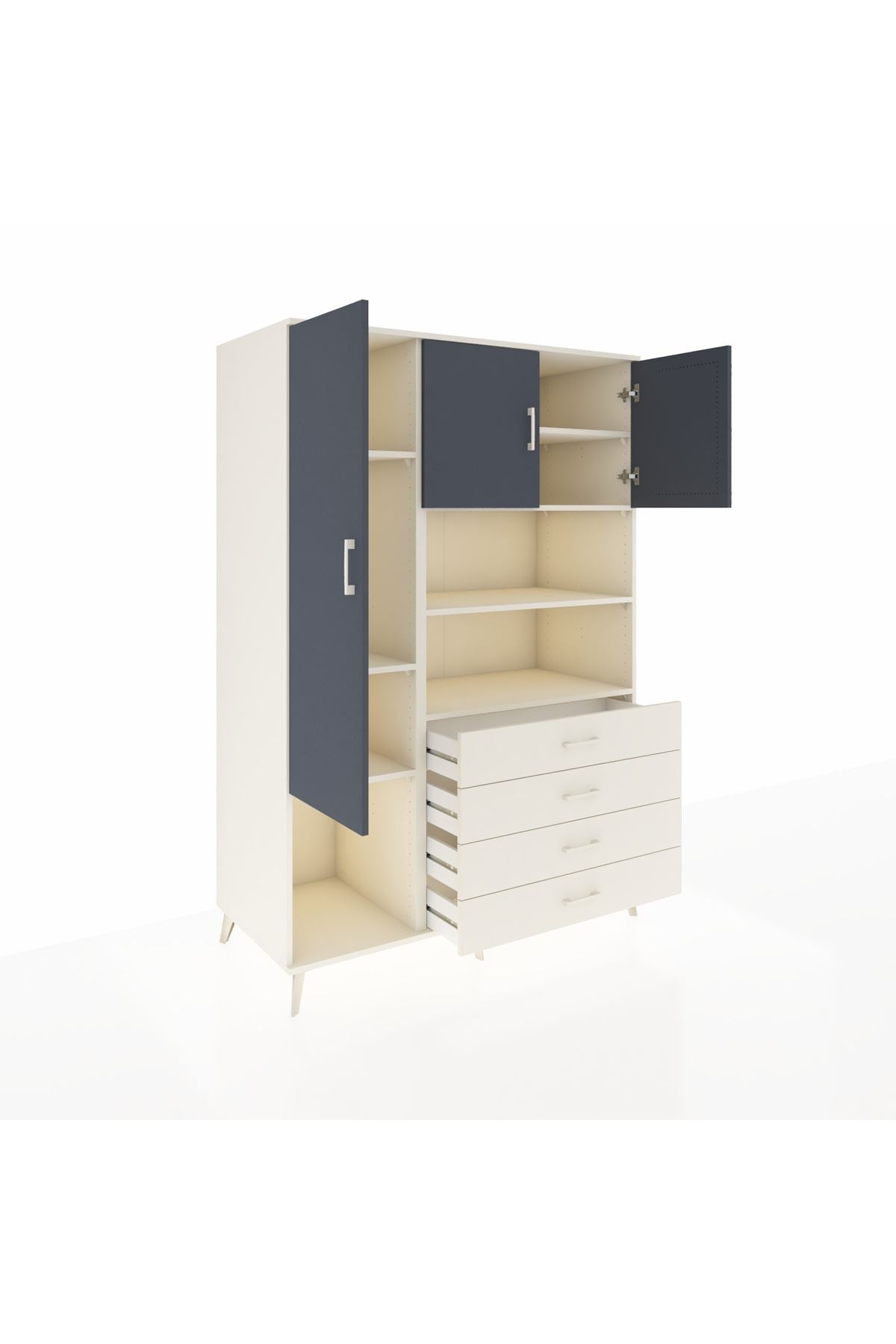 Kronos Dolap; zamansız çizgileri, 7 rafı, 4 geniş çekmecesi ve 3 kapaklı kullanışlı tasarımıyla hem evinizde hem de ofisinizde çok amaçlı depolama çözümü sunar 🚪🗄️