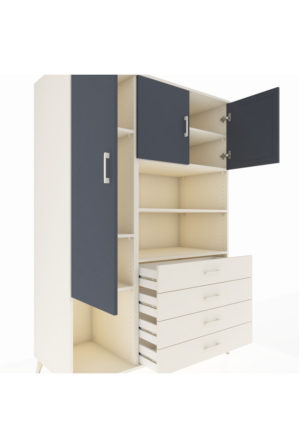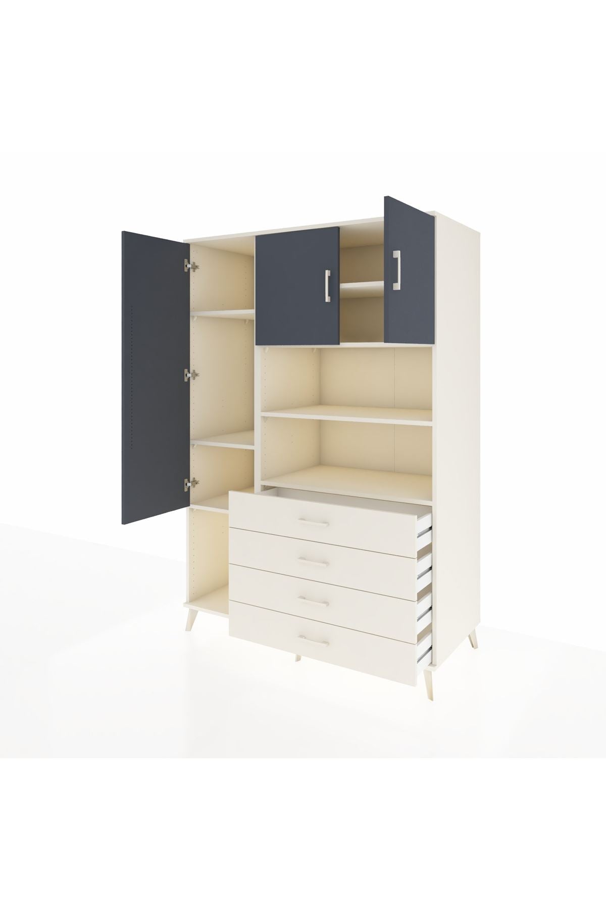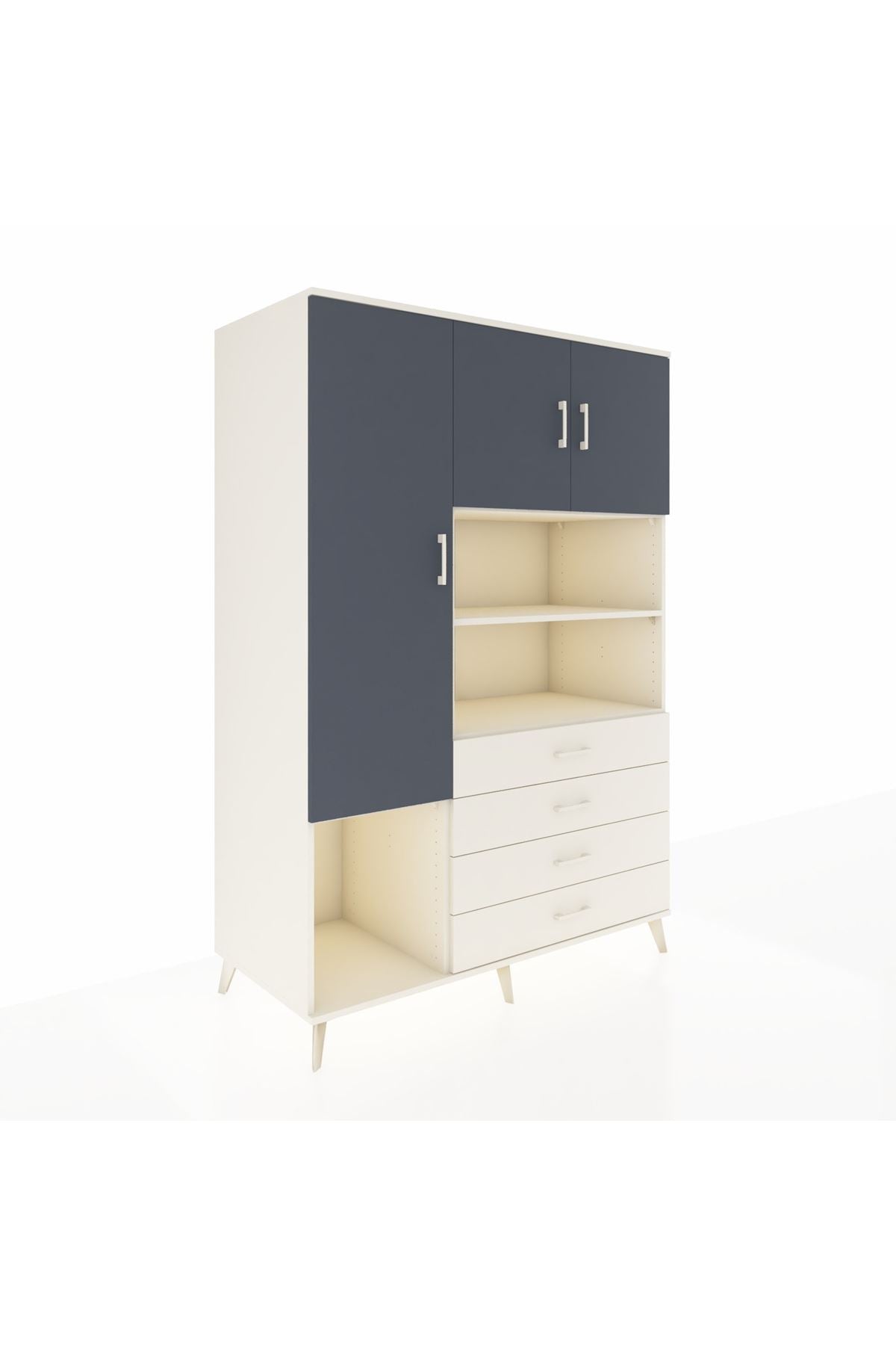 Kronos Dolap; zamansız çizgileri, 7 rafı, 4 geniş çekmecesi ve 3 kapaklı kullanışlı tasarımıyla hem evinizde hem de ofisinizde çok amaçlı depolama çözümü sunar 🚪🗄️