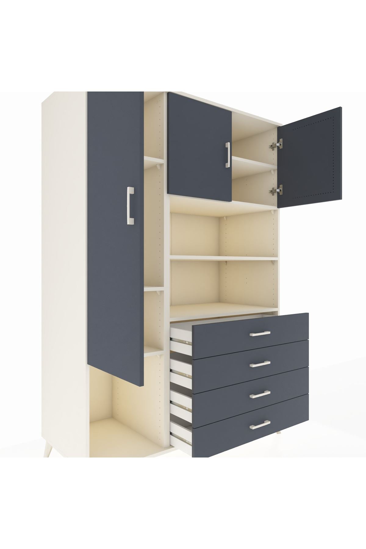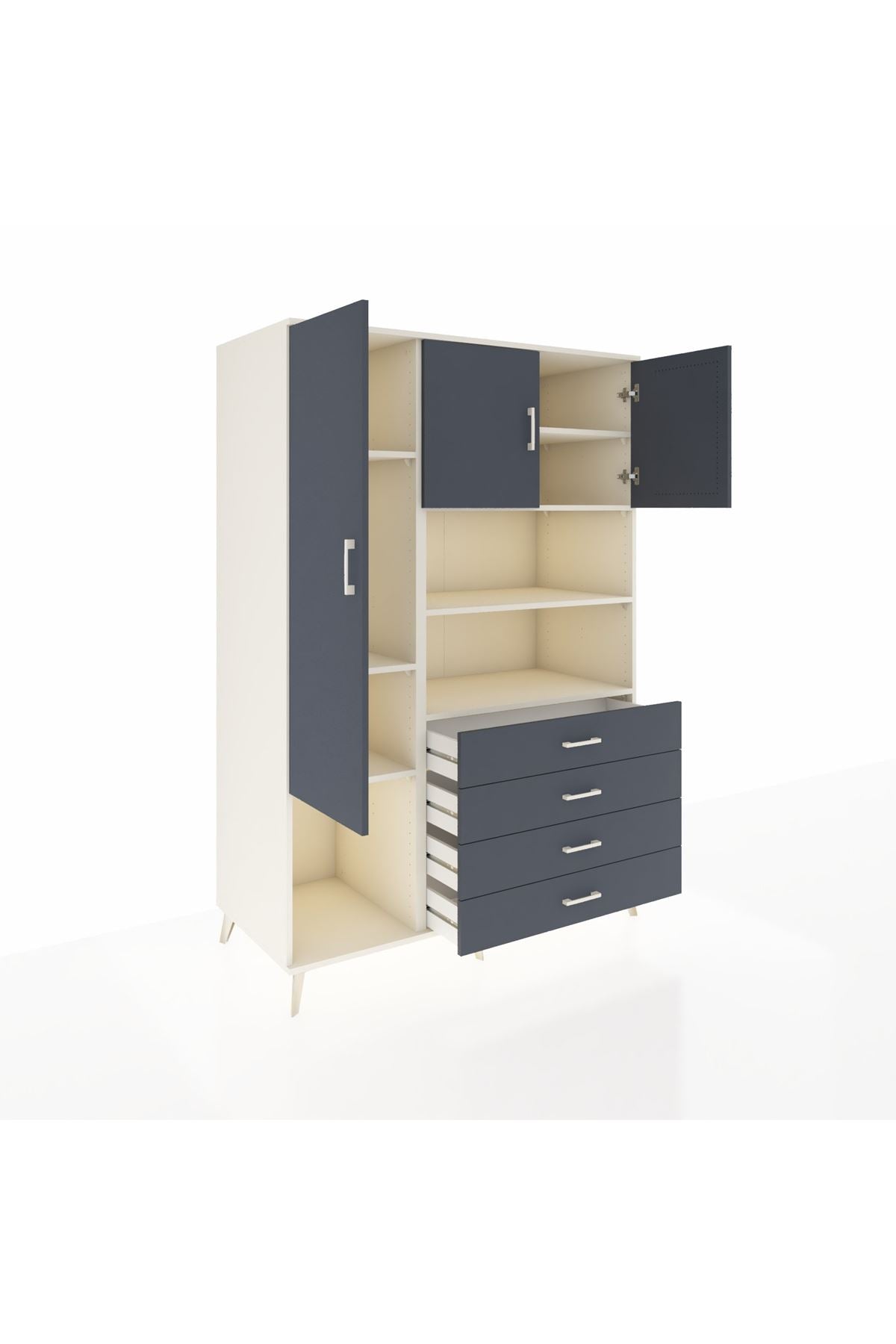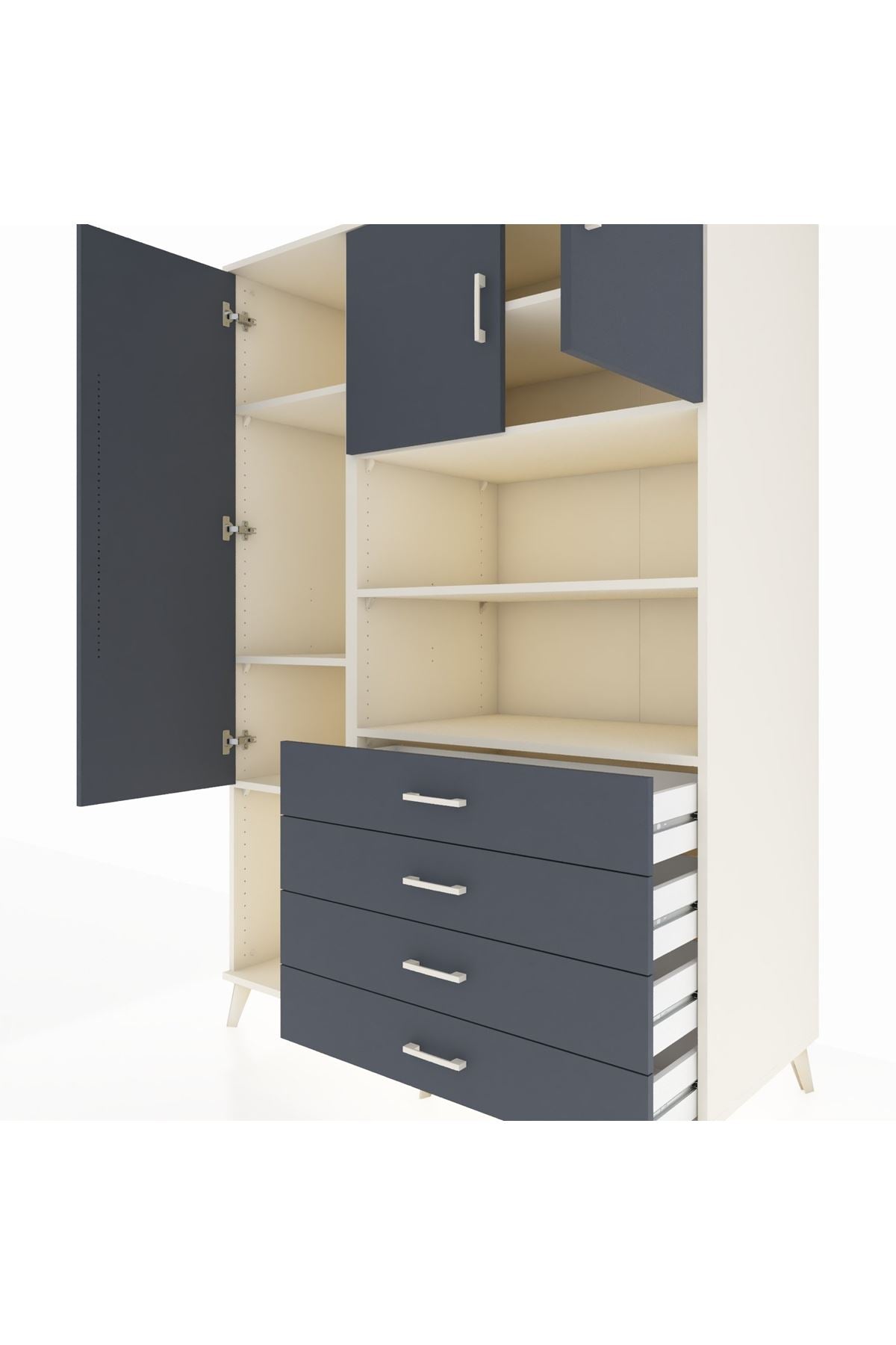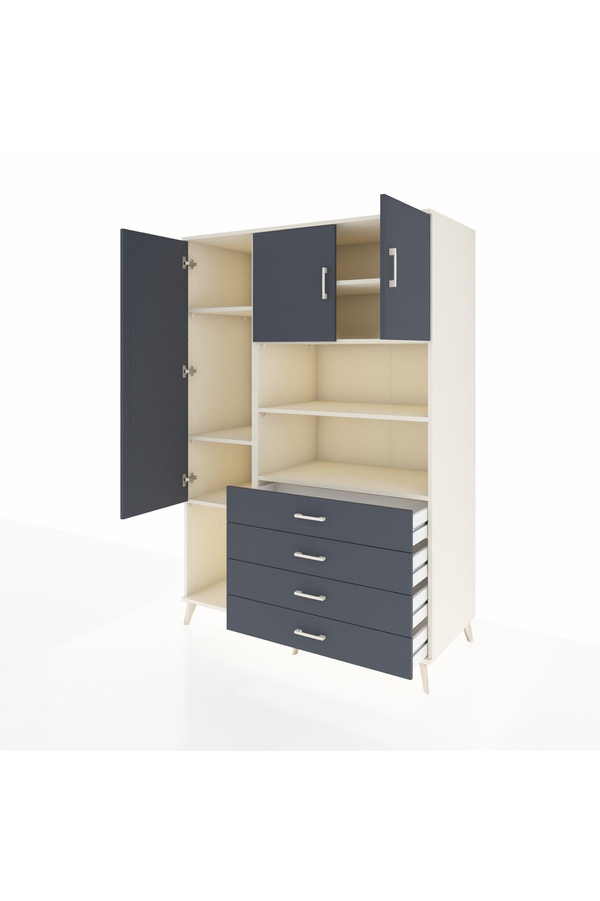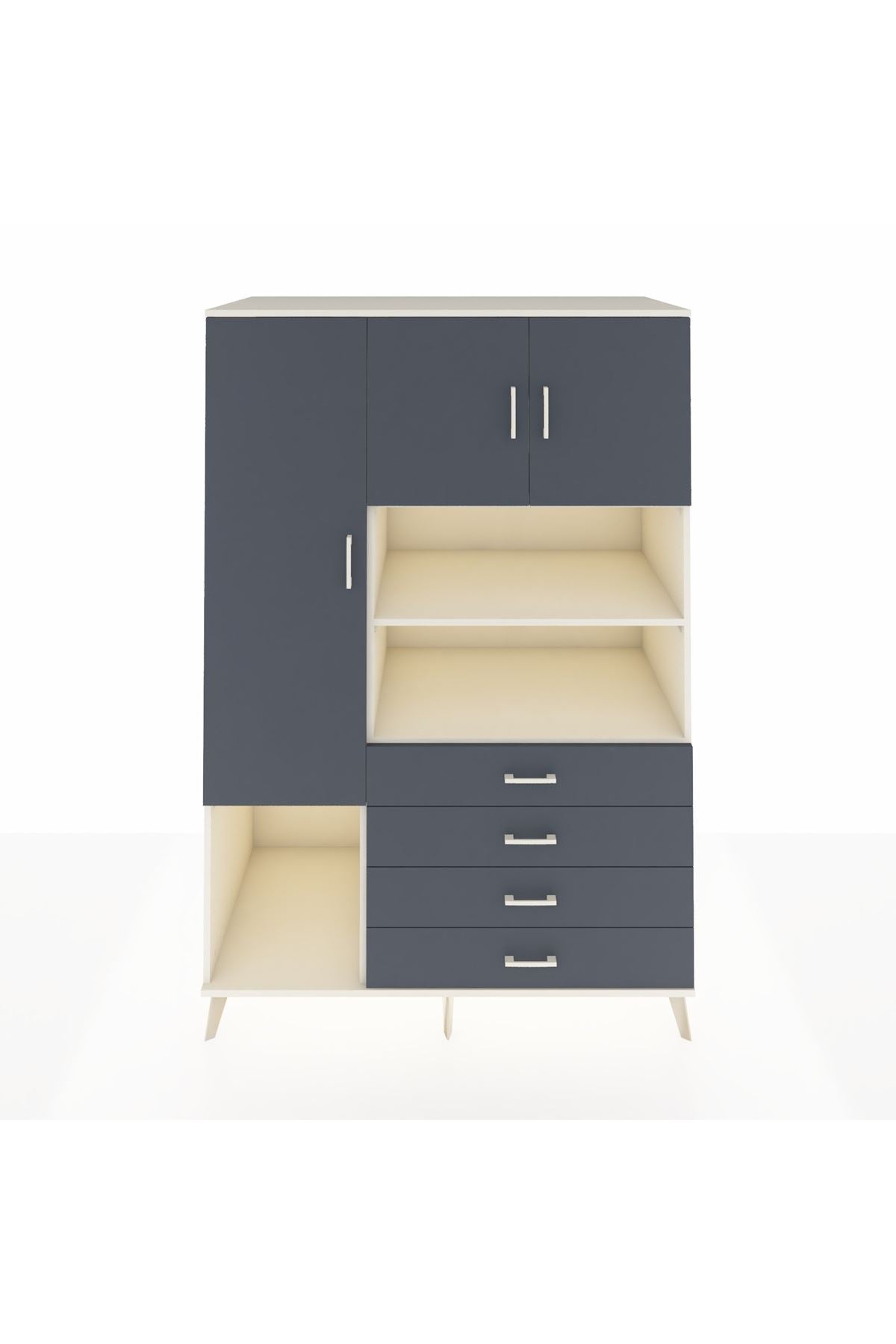 Geniş iç hacmi sayesinde yedi raf ve dört çekmeceyle her ihtiyaca yanıt verir. Üç kapaklı tasarımı, eşyalarınızı düzenli ve pratik bir şekilde saklamanızı sağlar. Aytaşı ve antrasit renk uyumu, mekâna şık bir dokunuş katar. 🎨