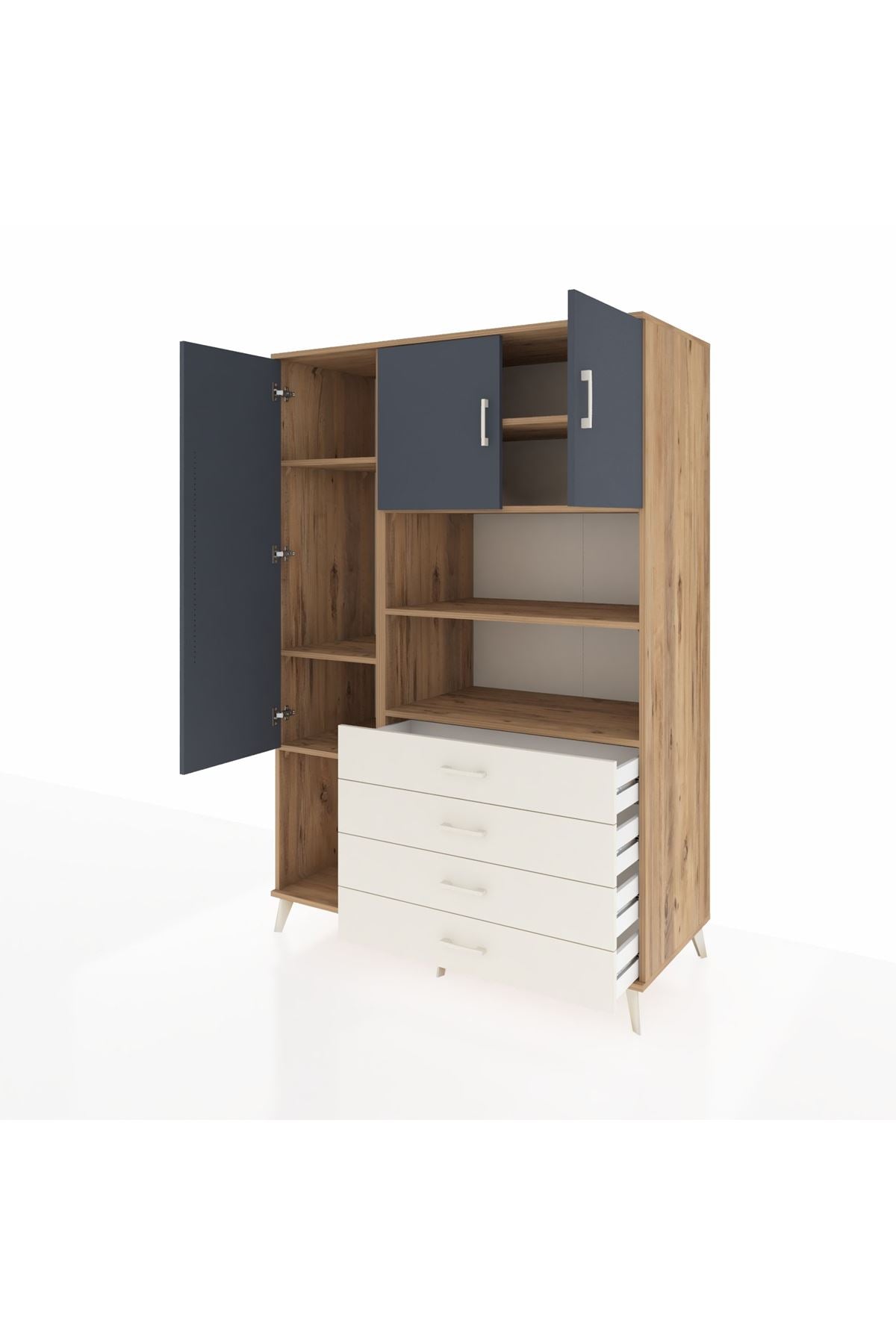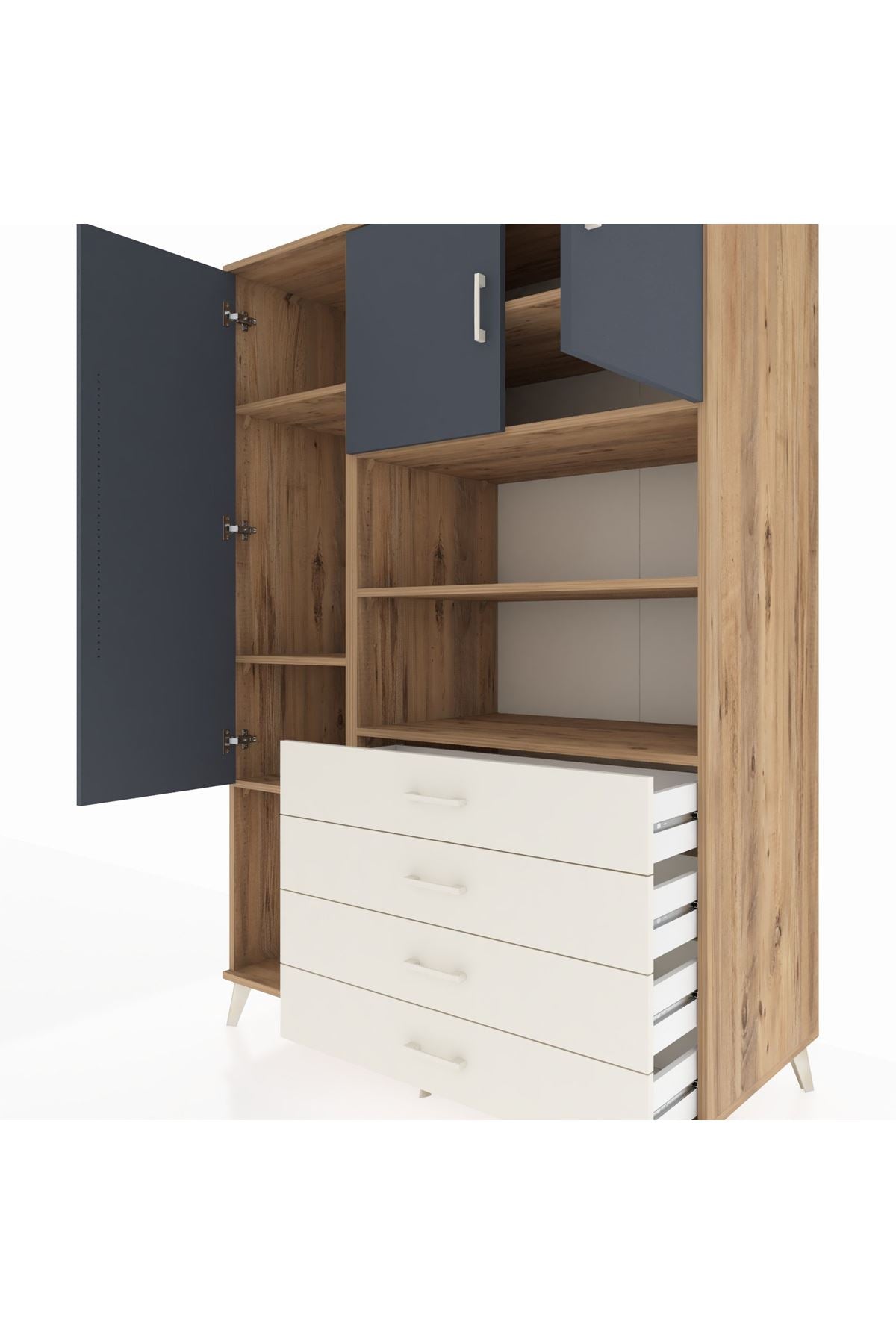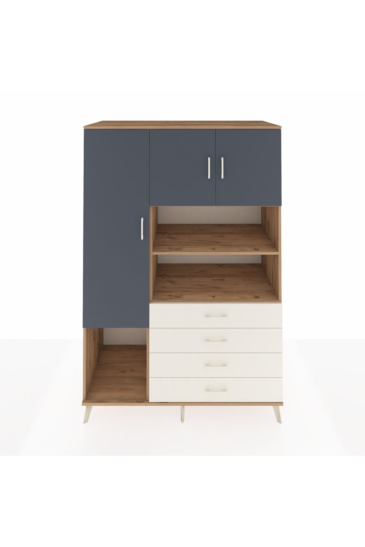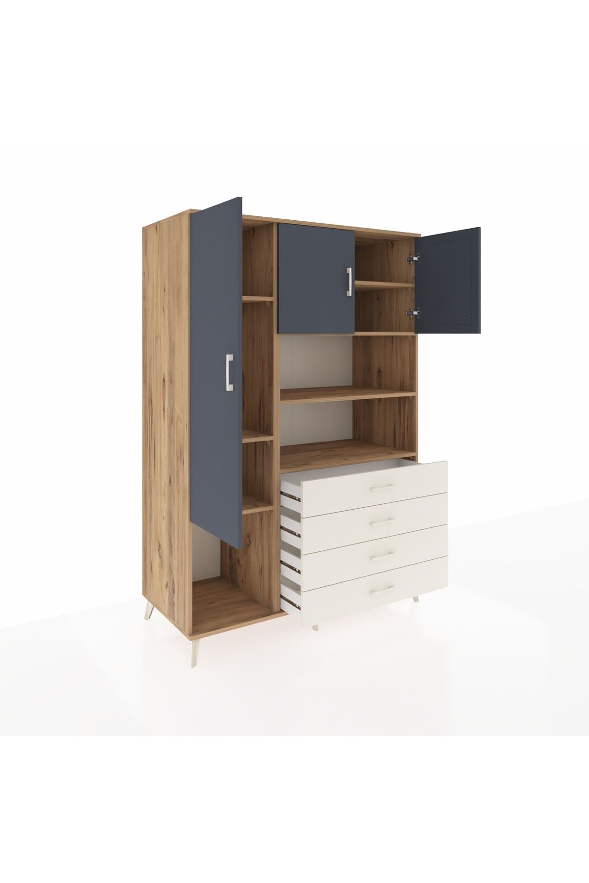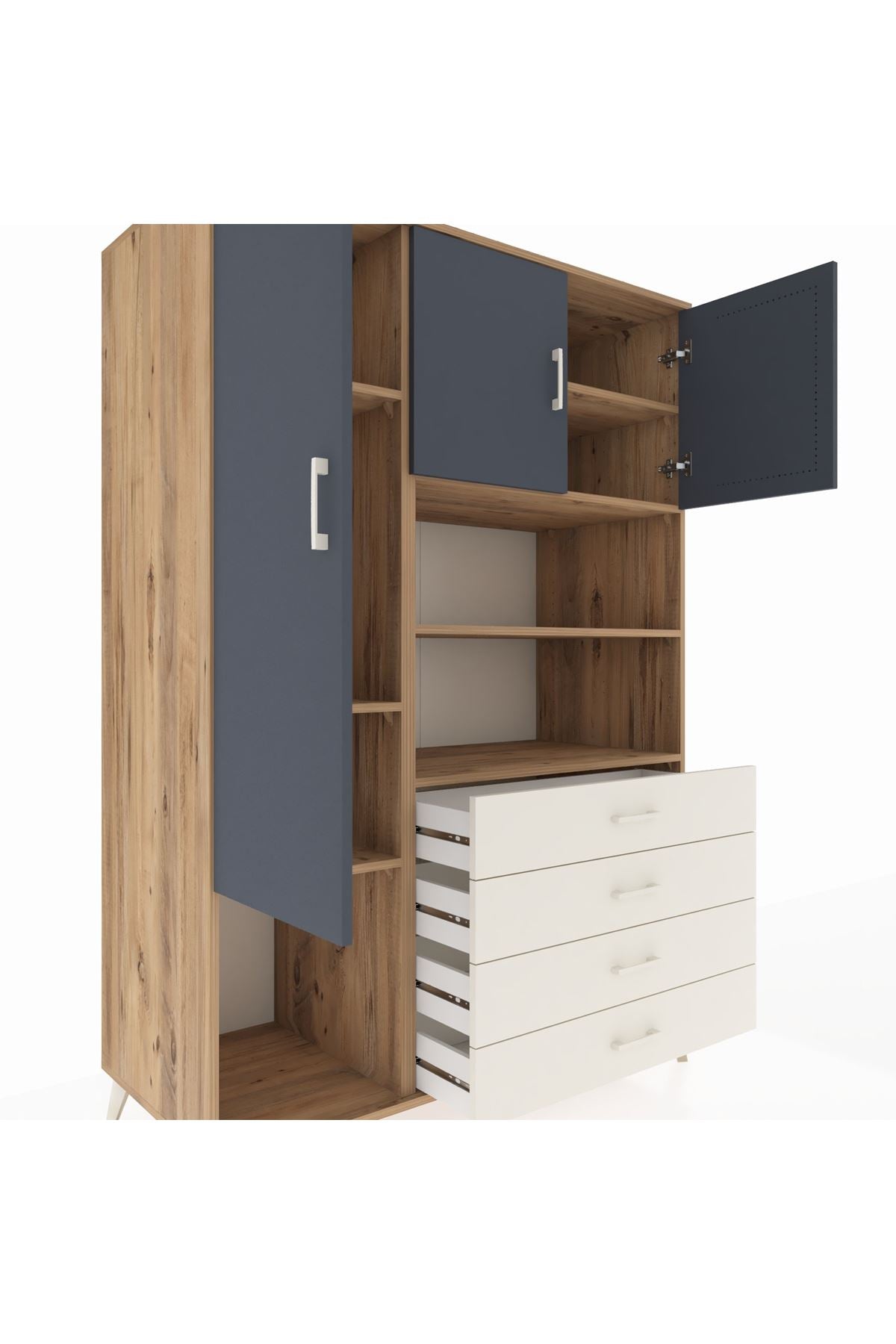 🌞 Kronos Dolap 7 Raflı 4 Çekmeceli 3 Kapaklı 132x59x195 Çam-Antrasit/Aytaşı