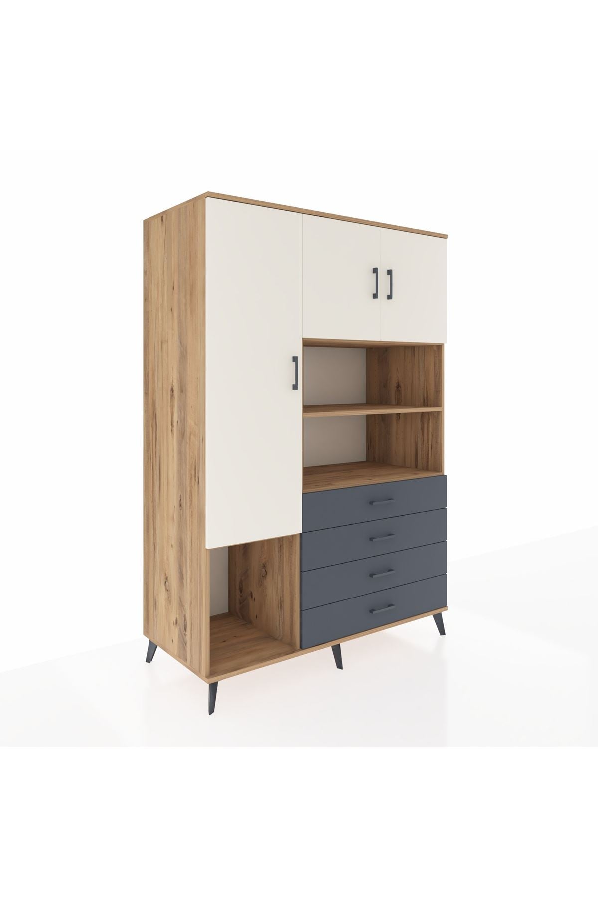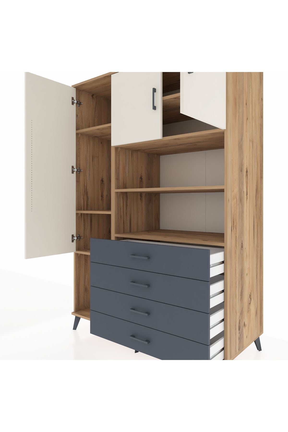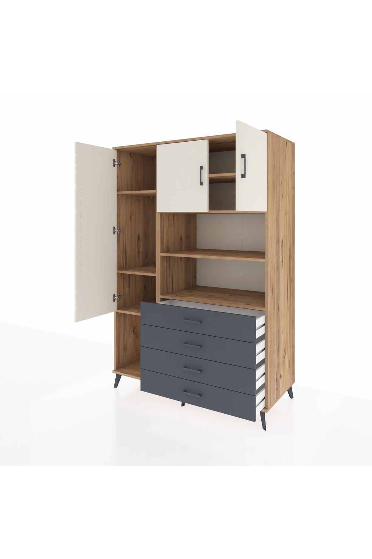 Kronos Dolap 7 Raflı 4 Çekmeceli 3 Kapaklı 132x59x195 Çam-Aytaşı/Antrasit