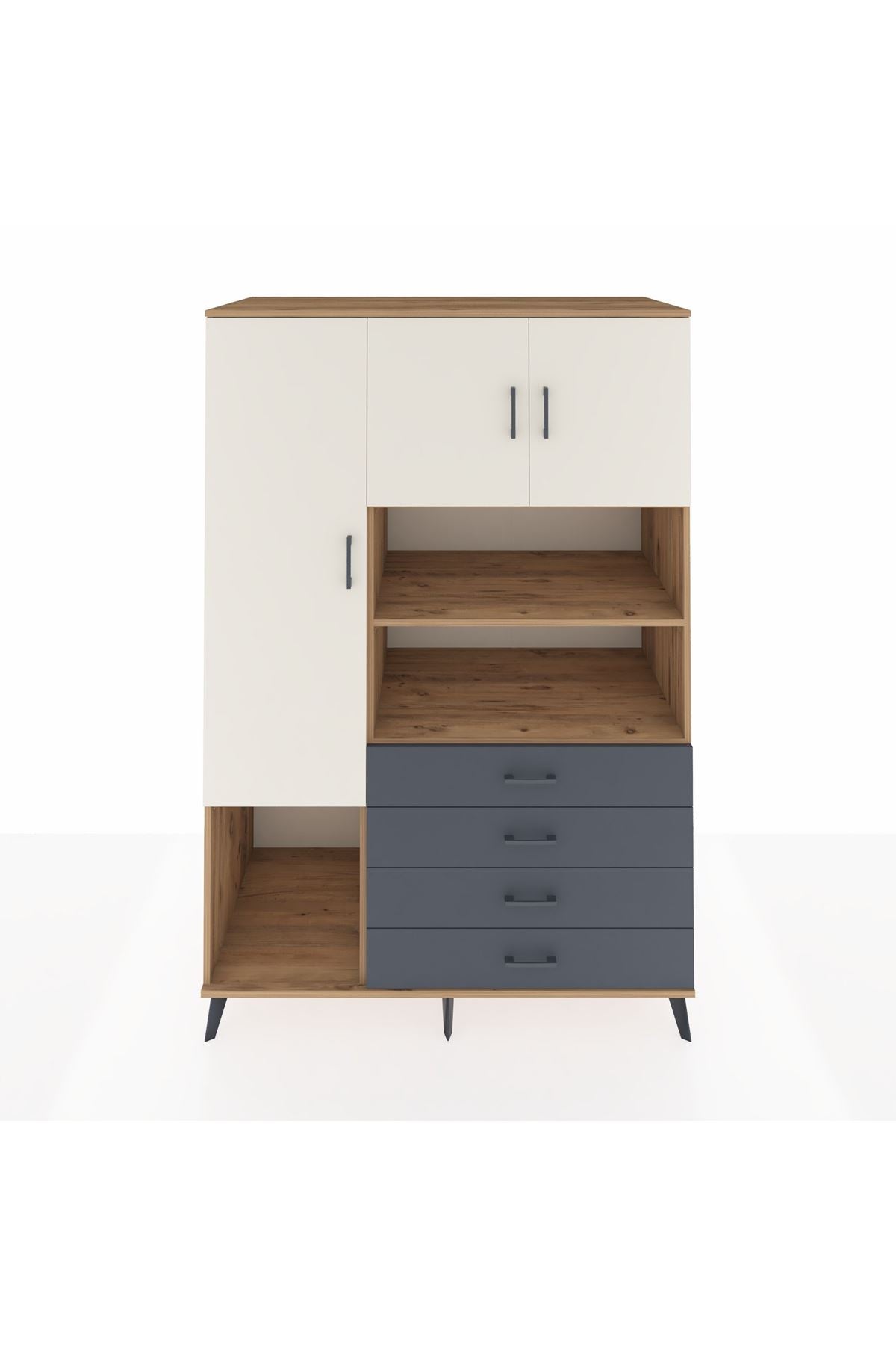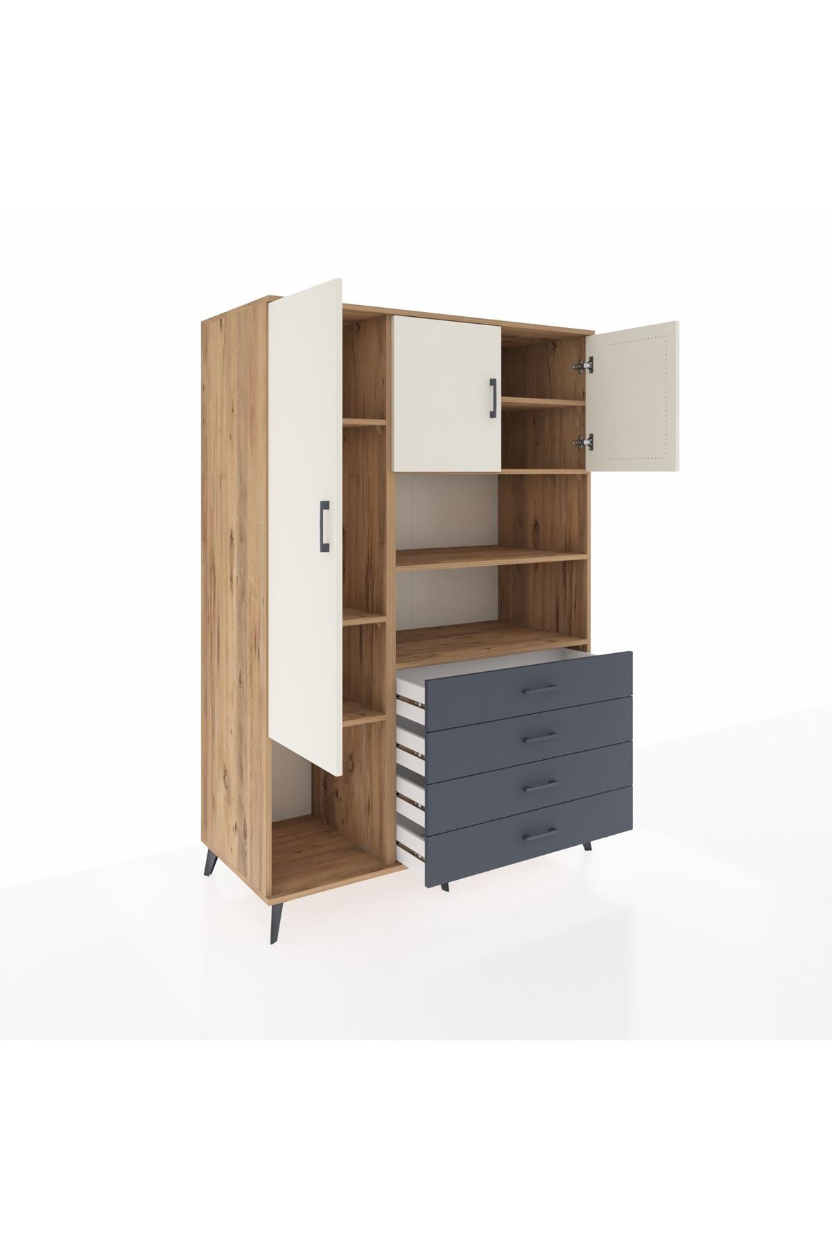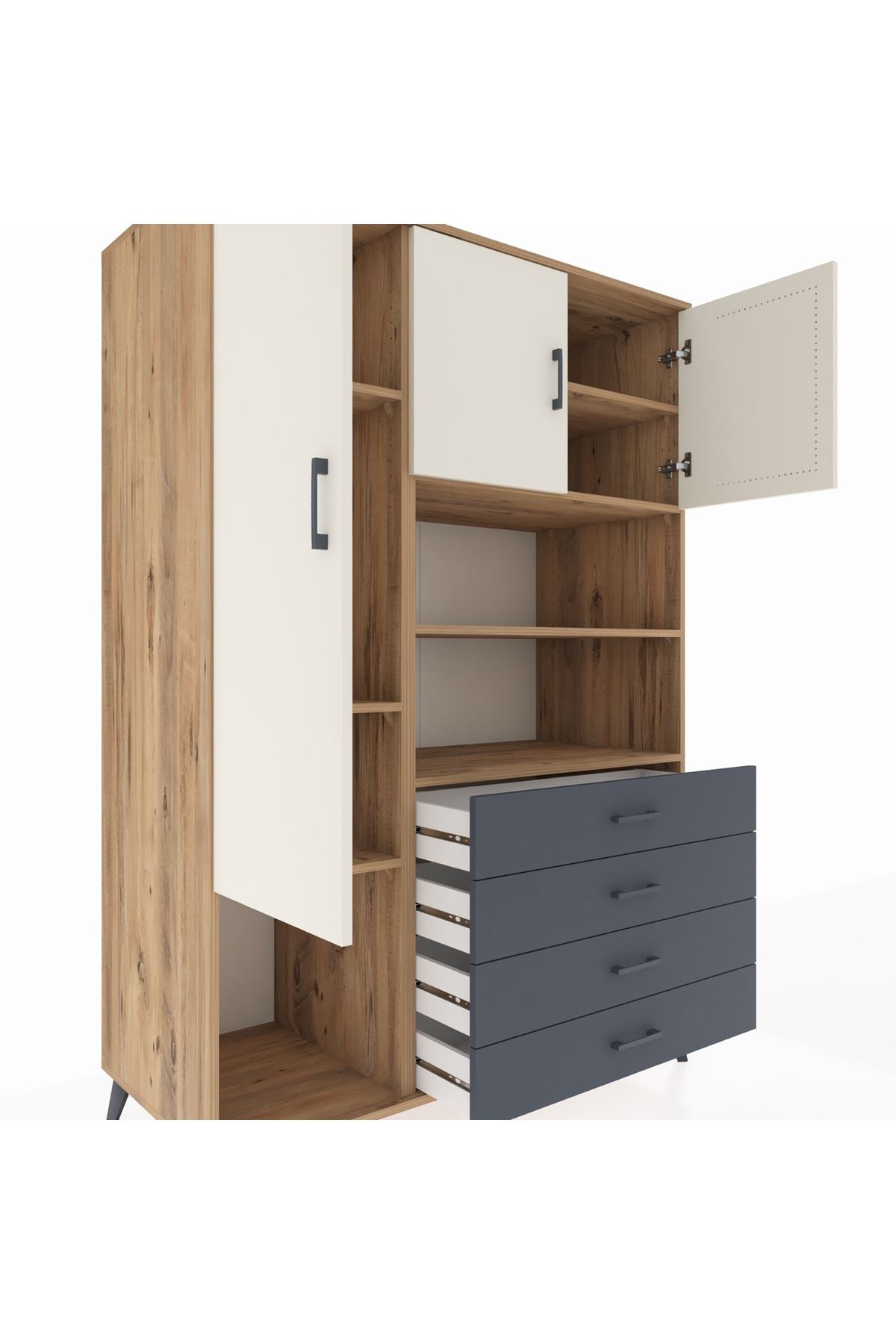 Kronos Dolap 7 Raflı 4 Çekmeceli 3 Kapaklı 132x59x195 Çam-Aytaşı/Antrasit