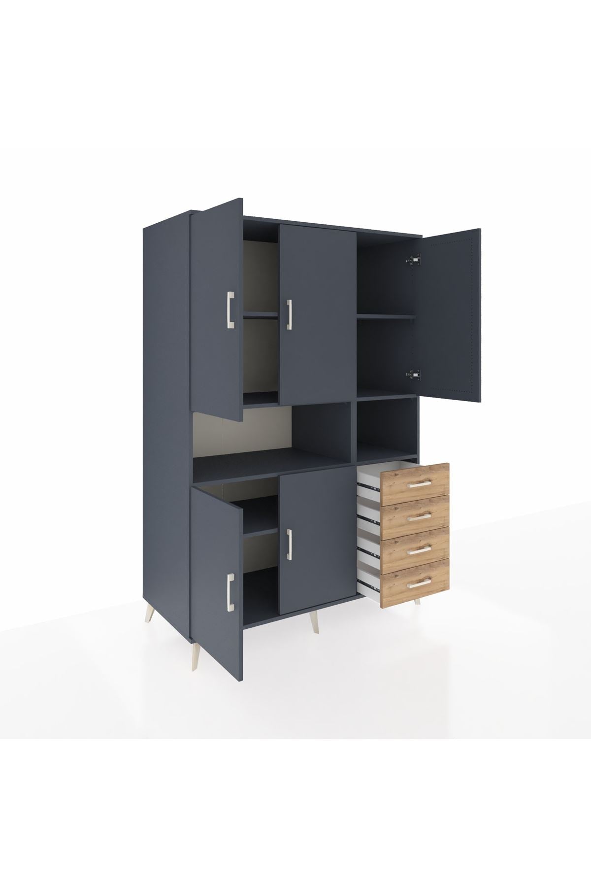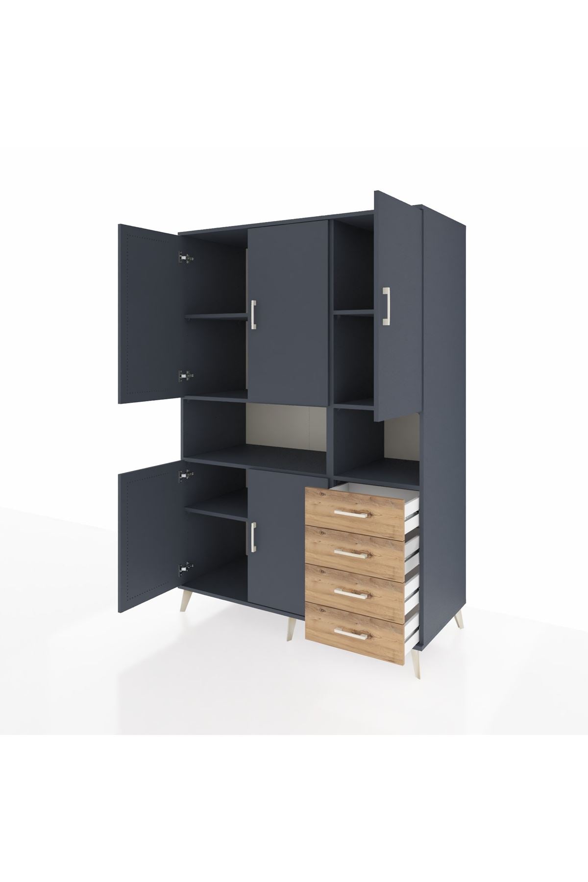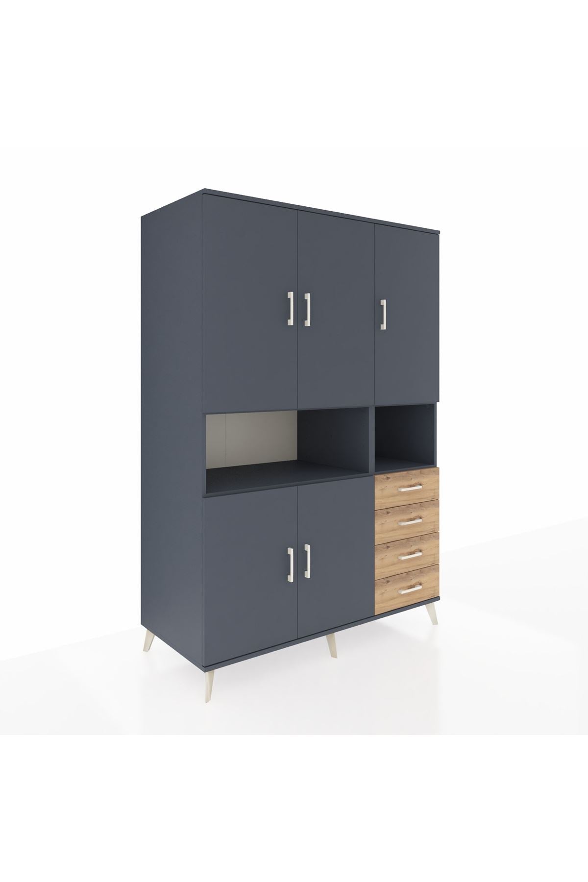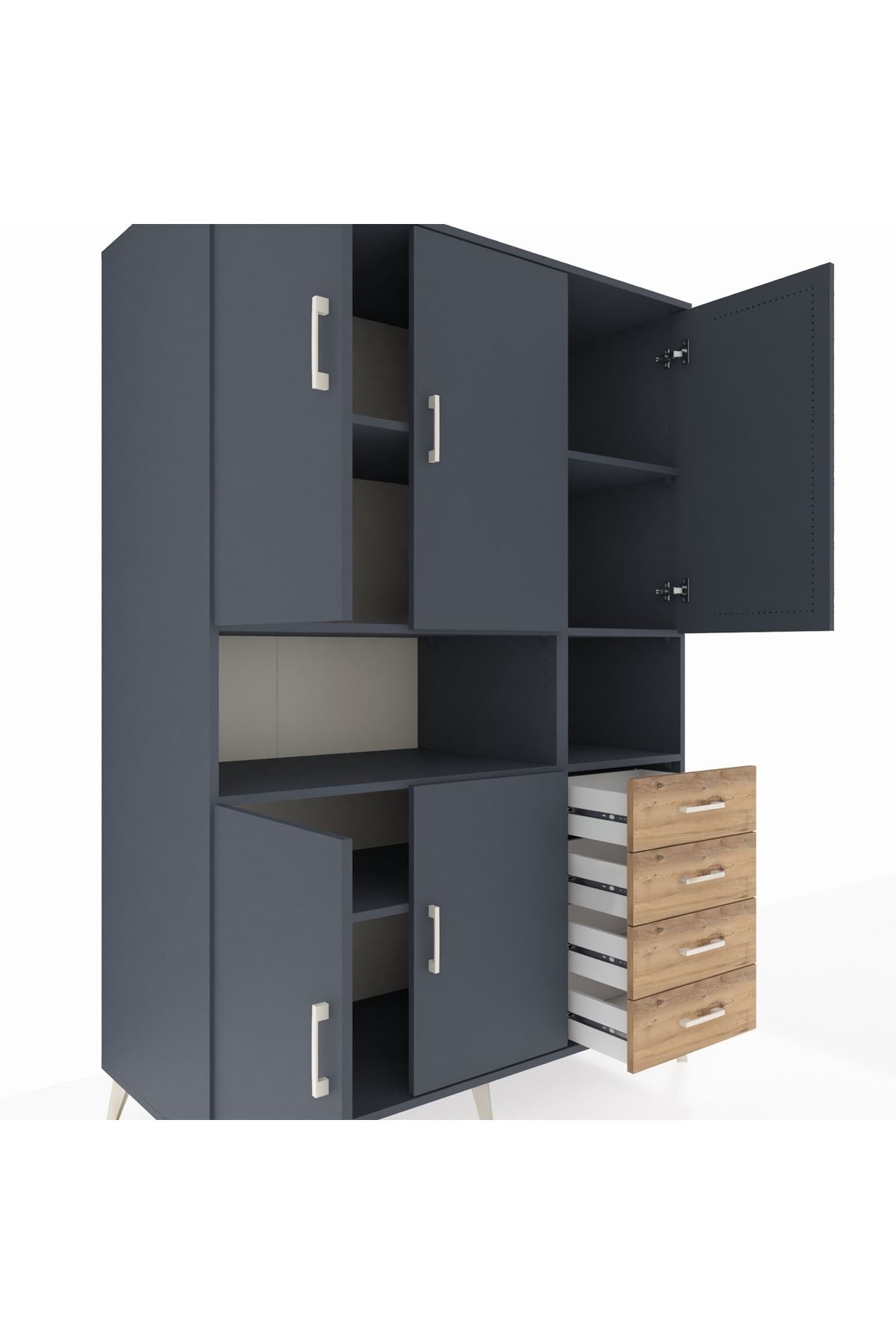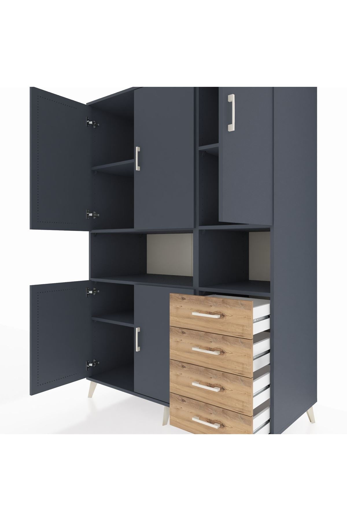 Kronos Dolap 7 Raflı 4 Çekmeceli 5 Kapaklı 132x59x195 Antrasit-Antrasit/Çam