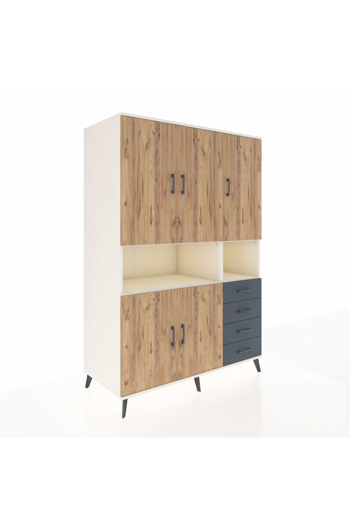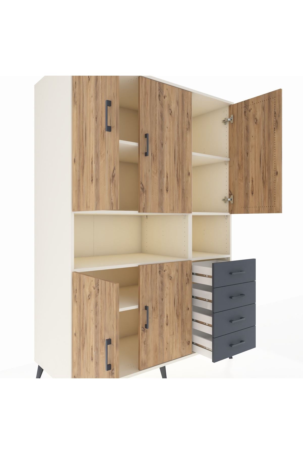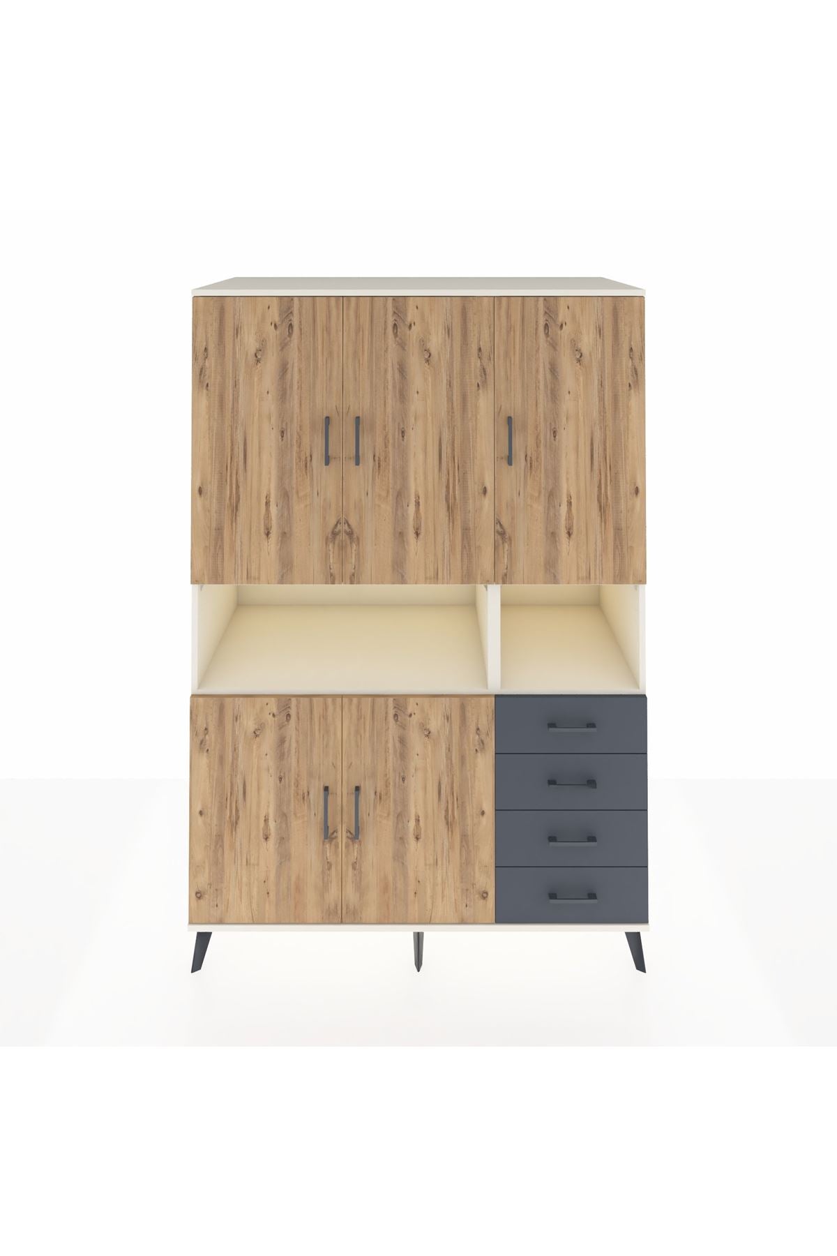 Kronos Dolap 7 Raflı 4 Çekmeceli 5 Kapaklı 132x59x195 Aytaşı-Çam/Antrasit