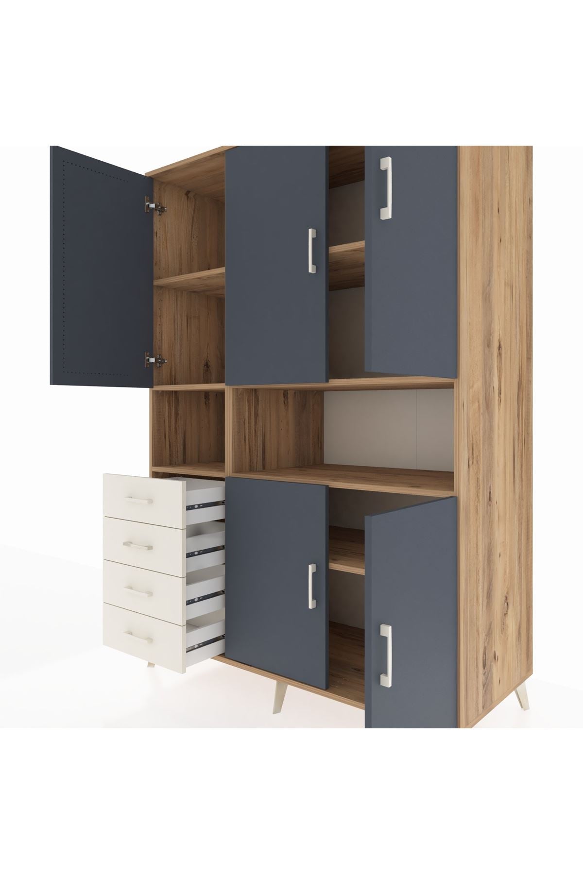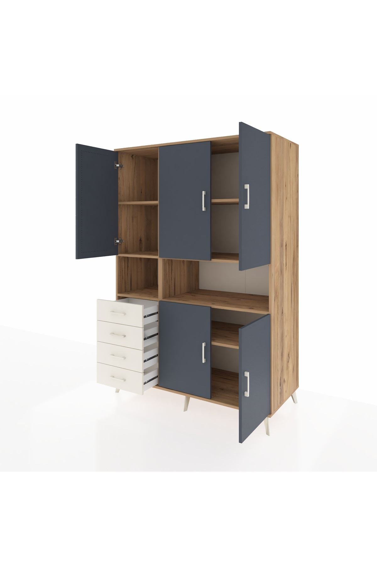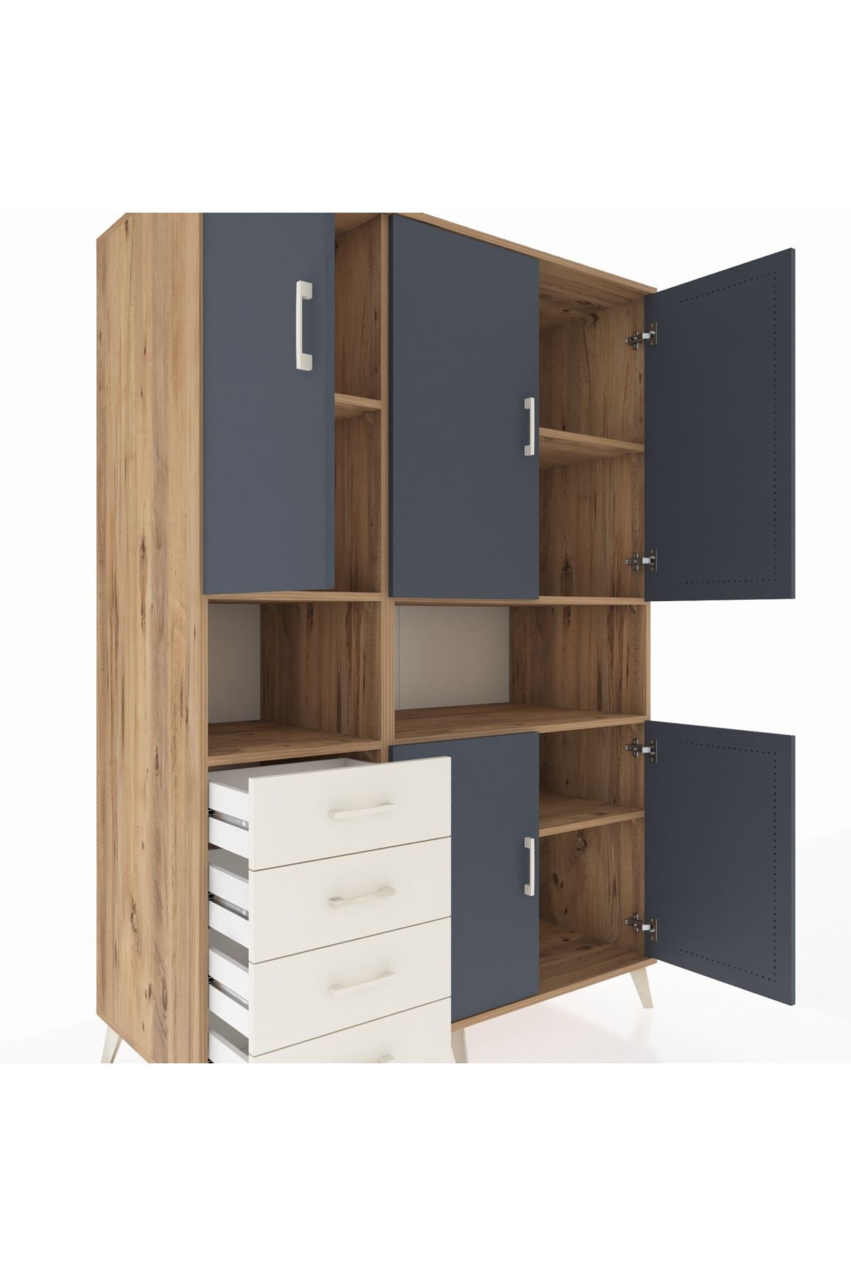 Kronos Dolap 7 Raflı 4 Çekmeceli 5 Kapaklı 132x59x195 Çam-Antrasit/Aytaşı