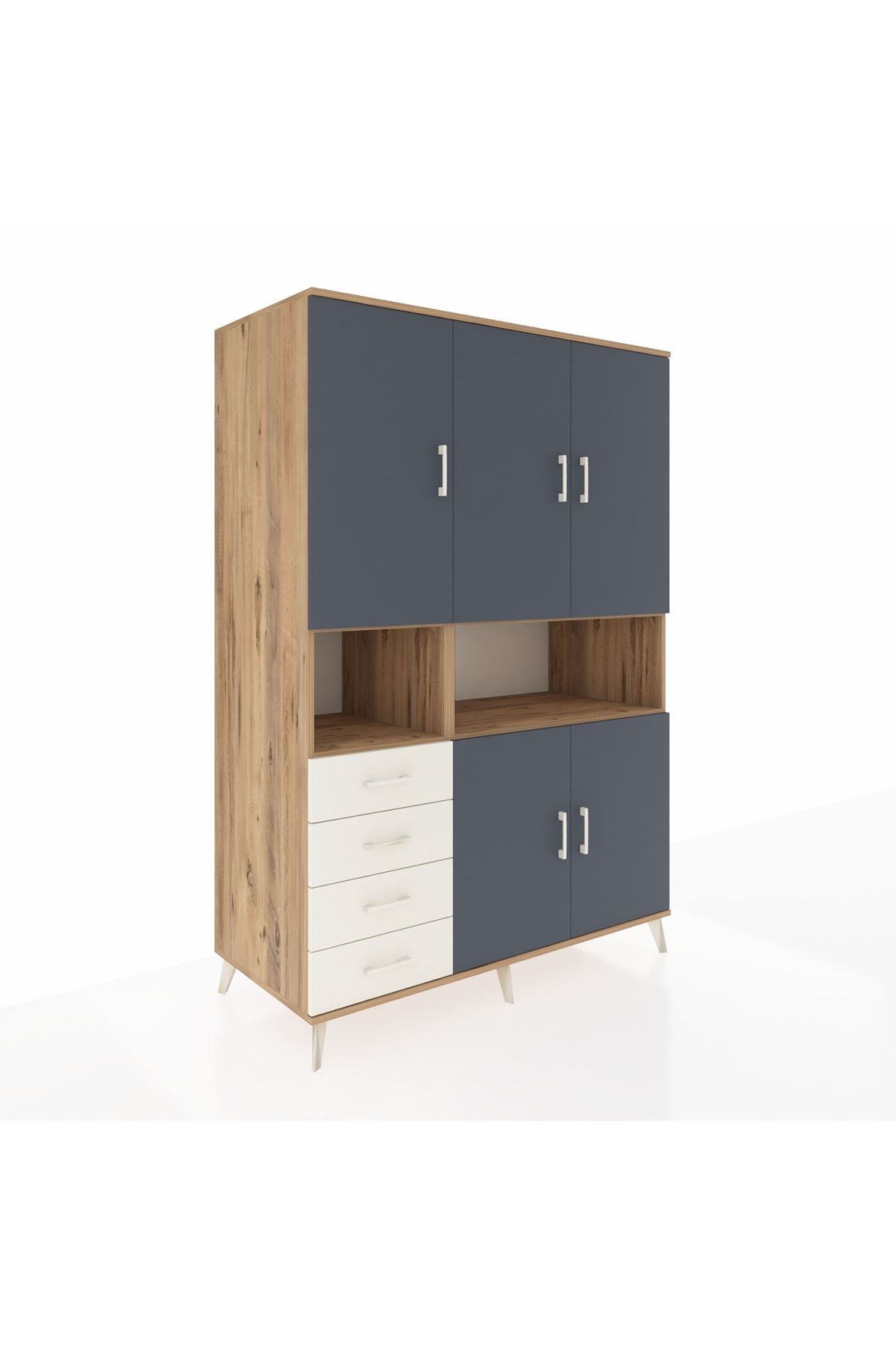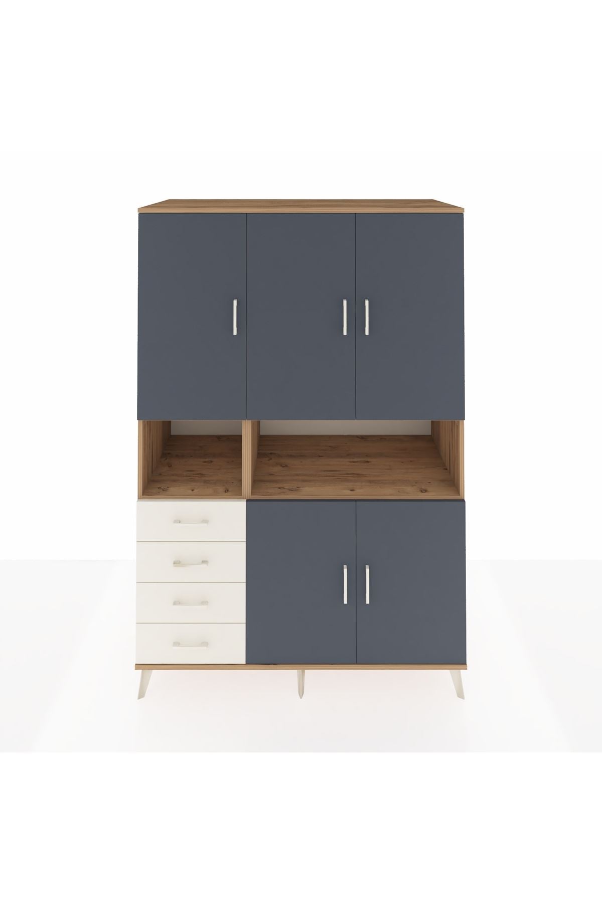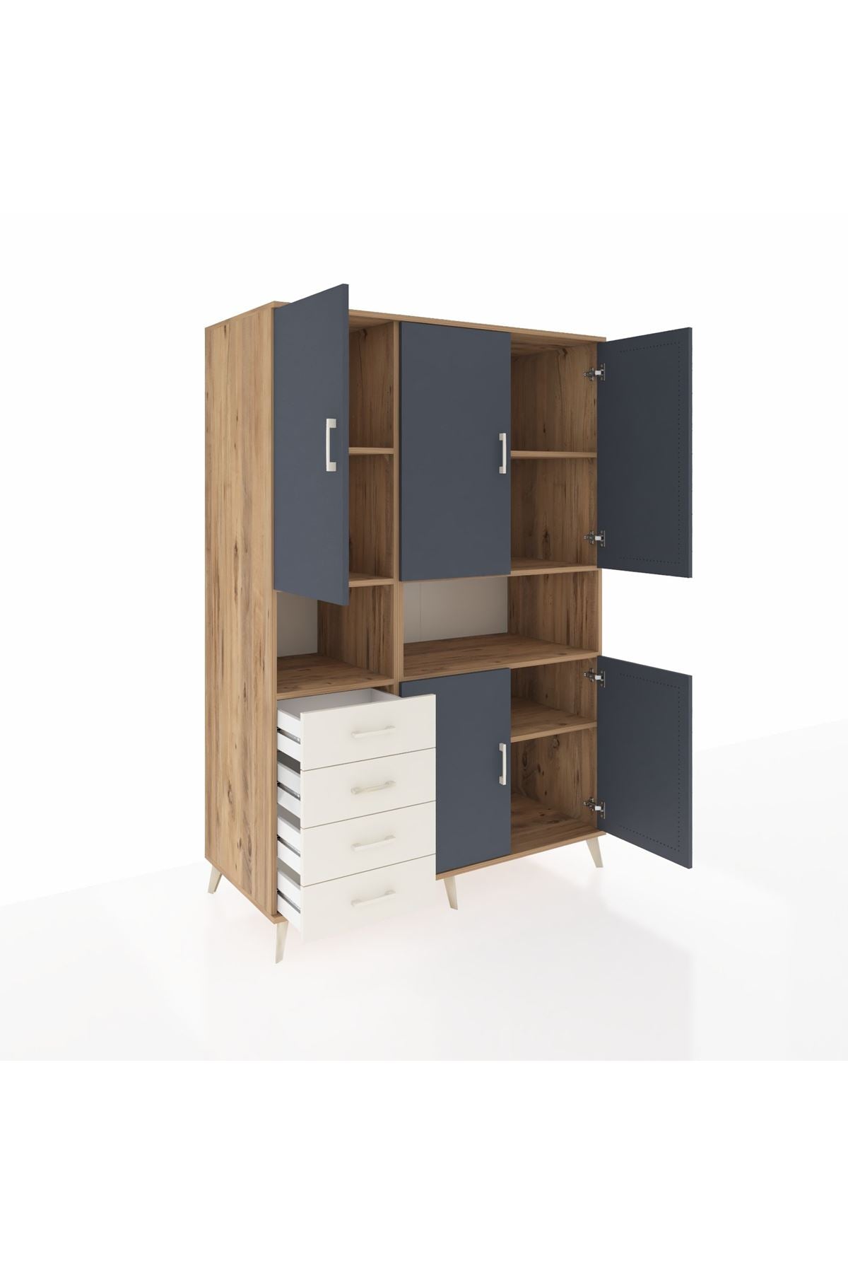 Kronos Dolap 7 Raflı 4 Çekmeceli 5 Kapaklı 132x59x195 Çam-Antrasit/Aytaşı