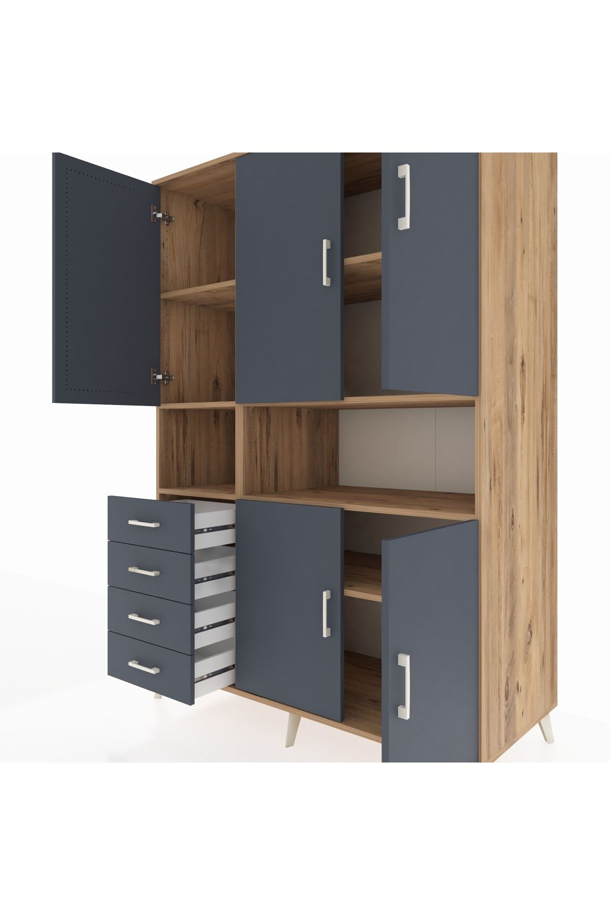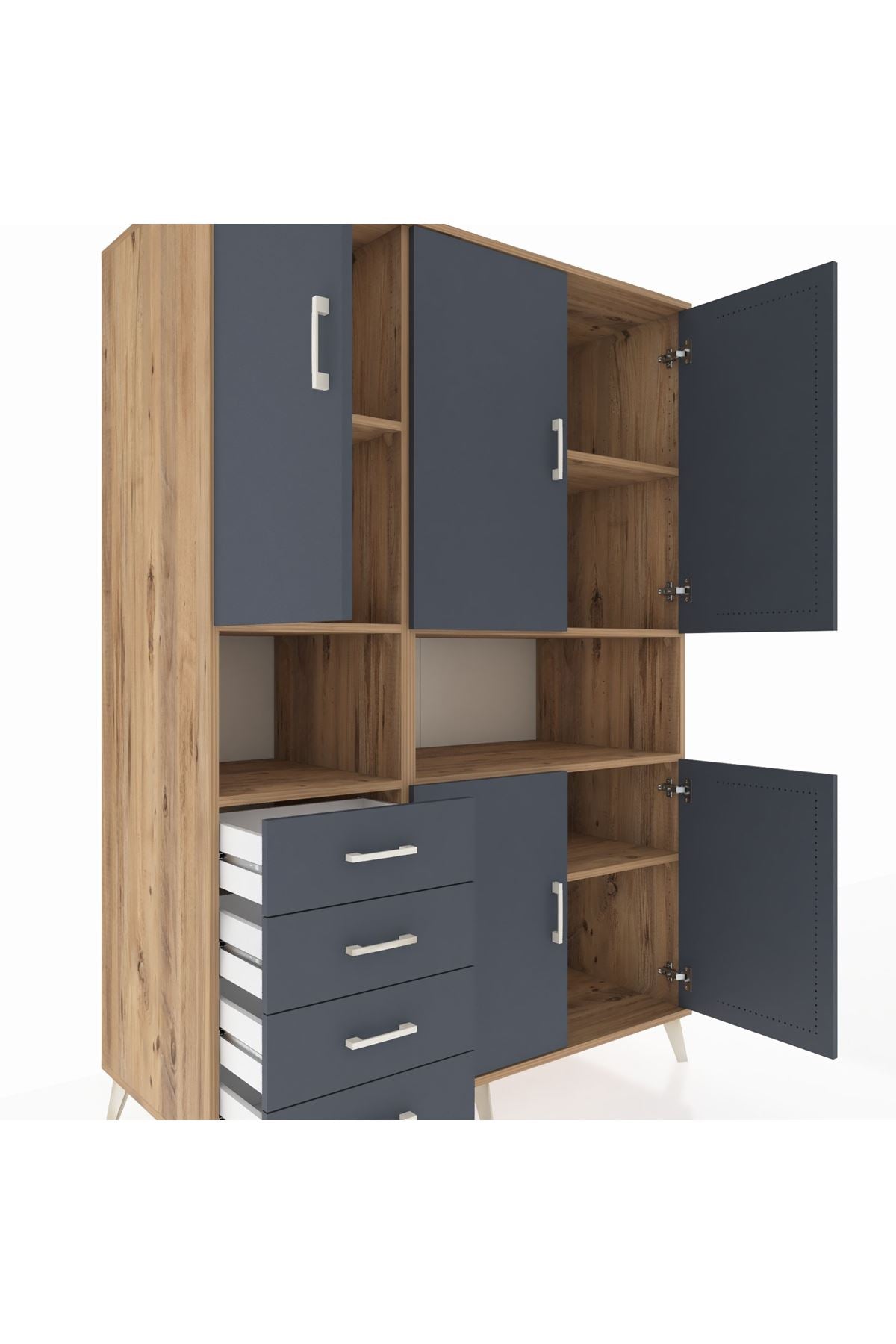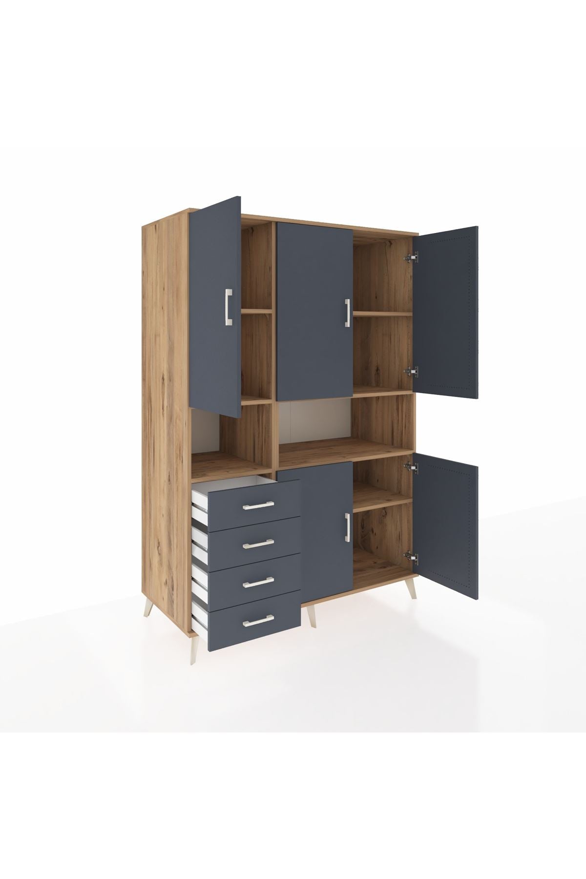 Kronos Dolap 7 Raflı 4 Çekmeceli 5 Kapaklı 132x59x195 Çam-Antrasit/Antrasit