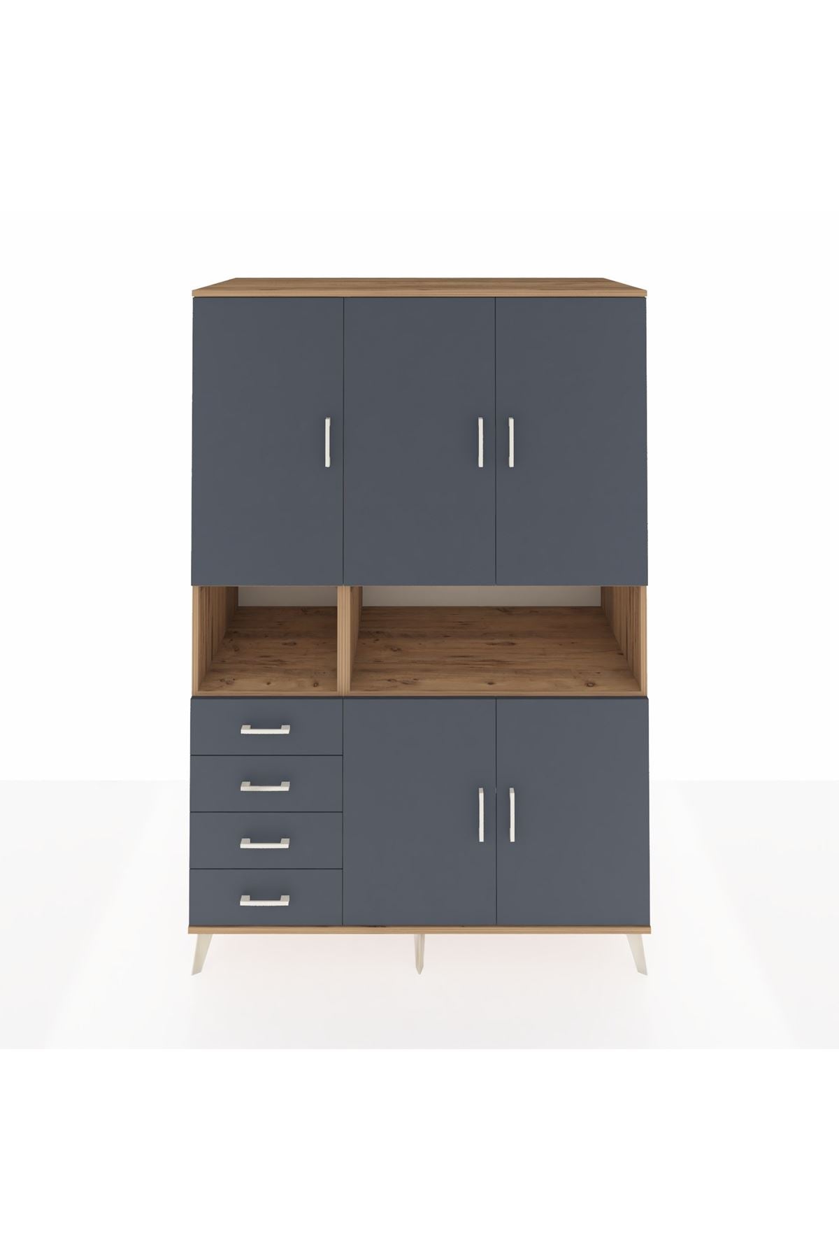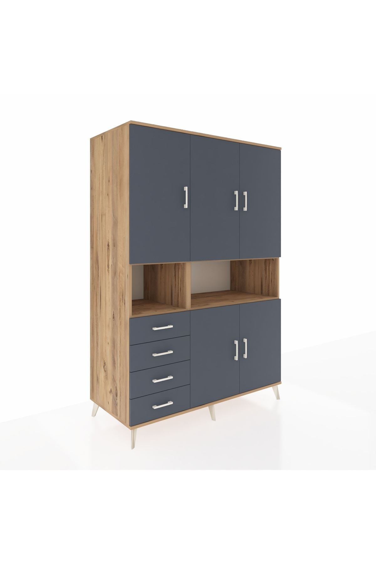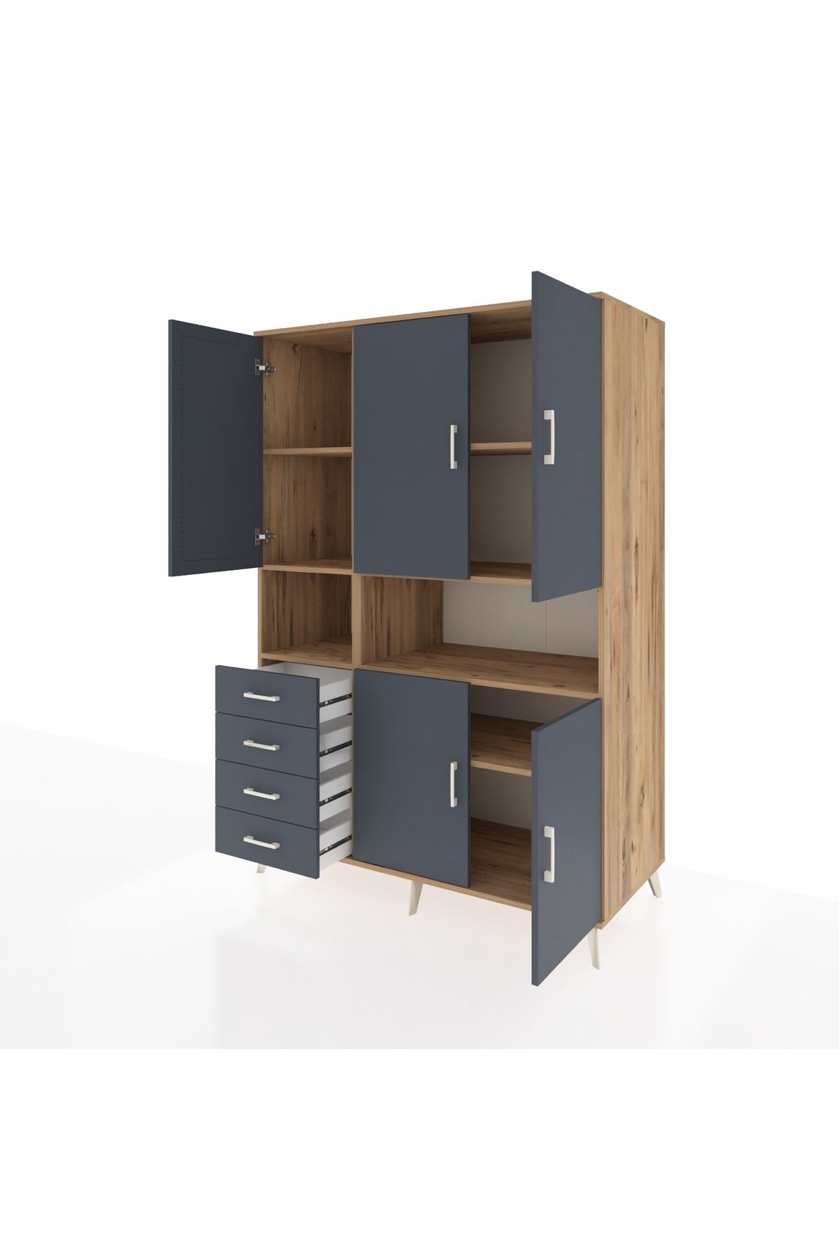 Kronos Dolap 7 Raflı 4 Çekmeceli 5 Kapaklı 132x59x195 Çam-Antrasit/Antrasit
