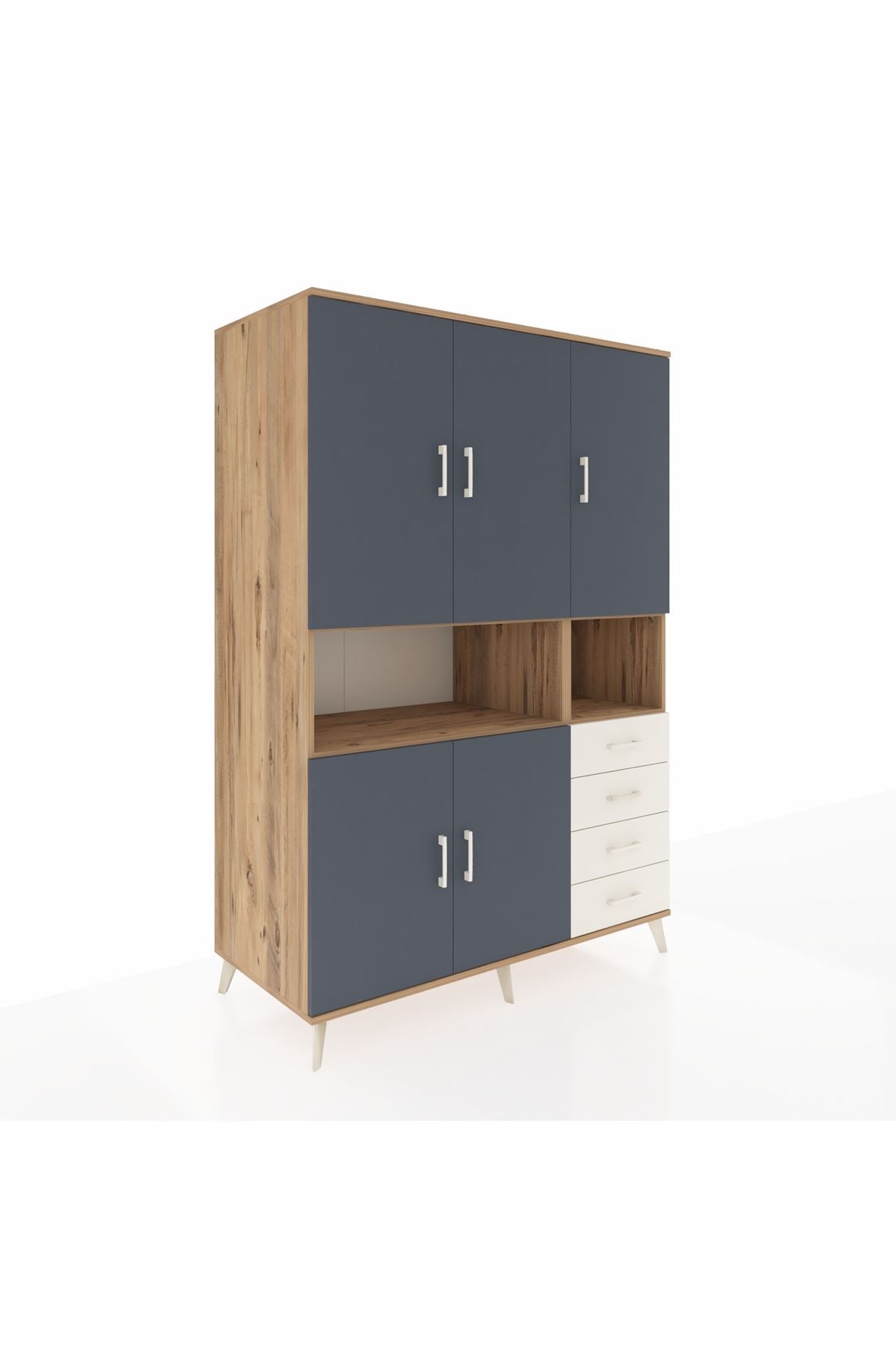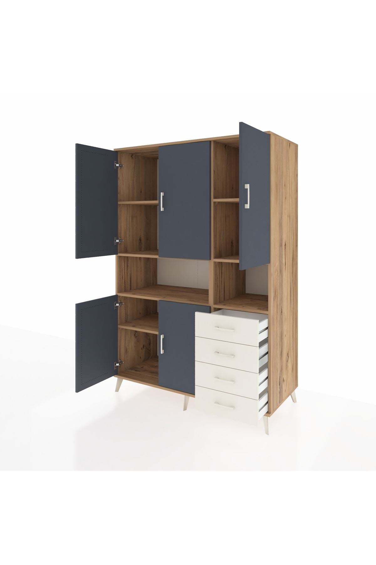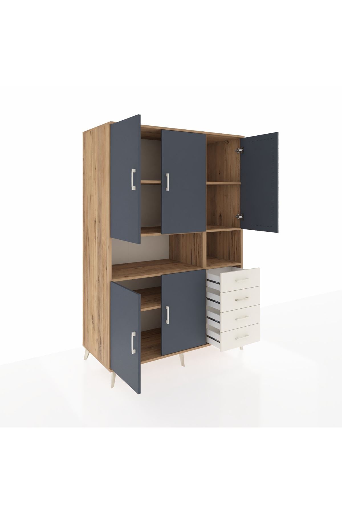 Kronos Dolap 7 Raflı 4 Çekmeceli 5 Kapaklı 132x59x195 Çam-Antrasit/Aytaşı
