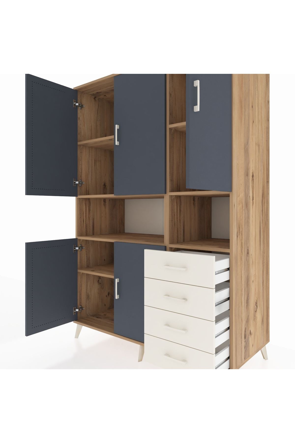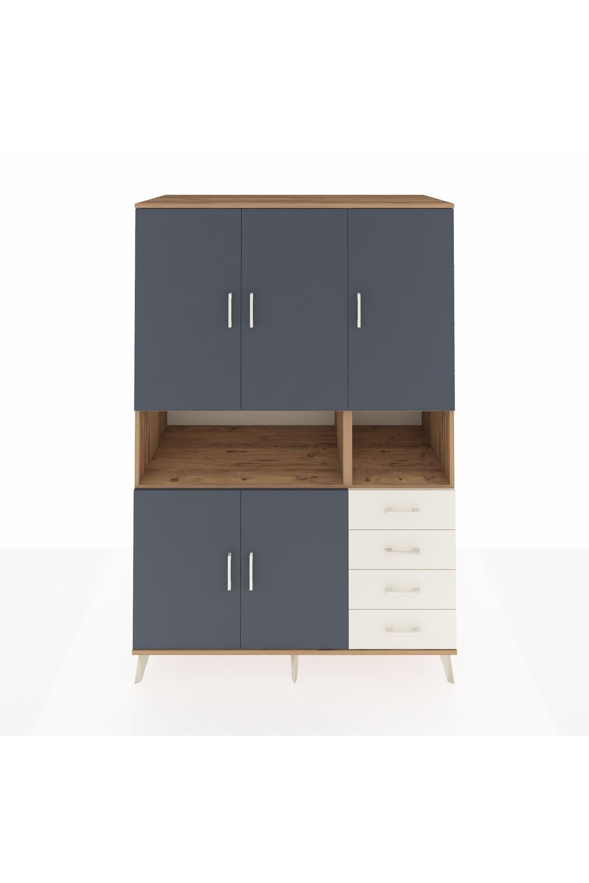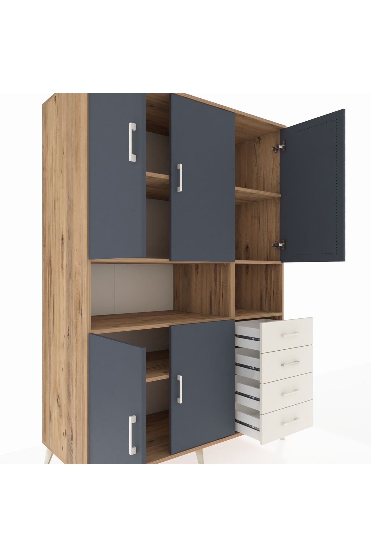 Kronos Dolap 7 Raflı 4 Çekmeceli 5 Kapaklı 132x59x195 Çam-Antrasit/Aytaşı