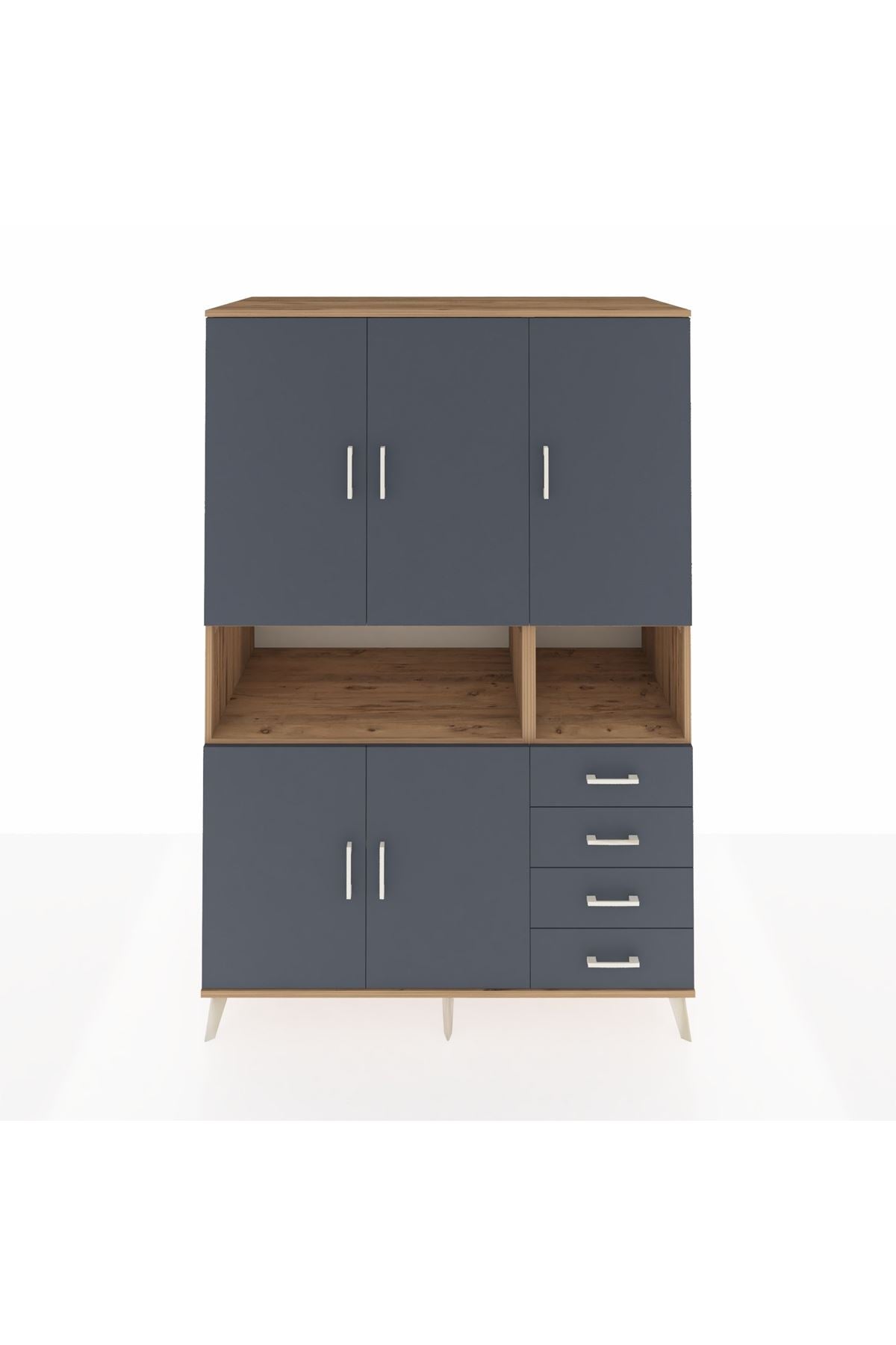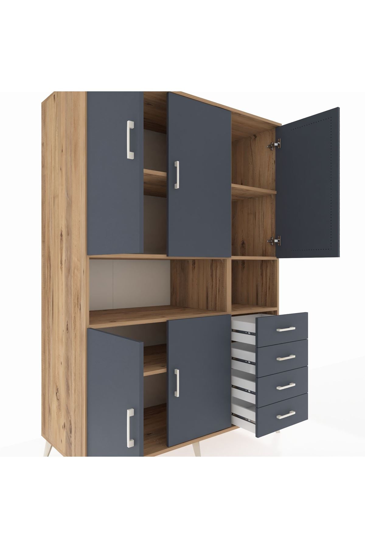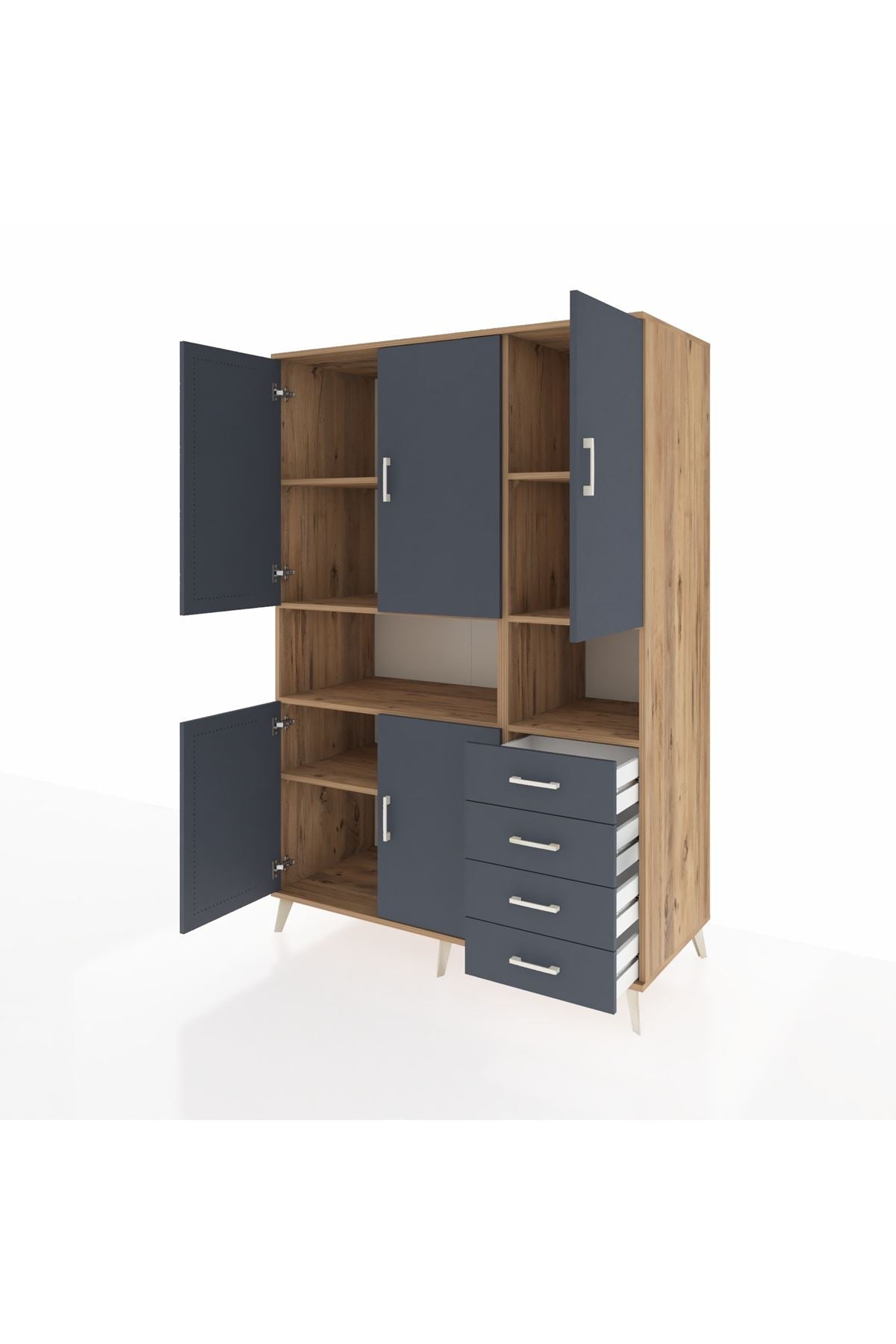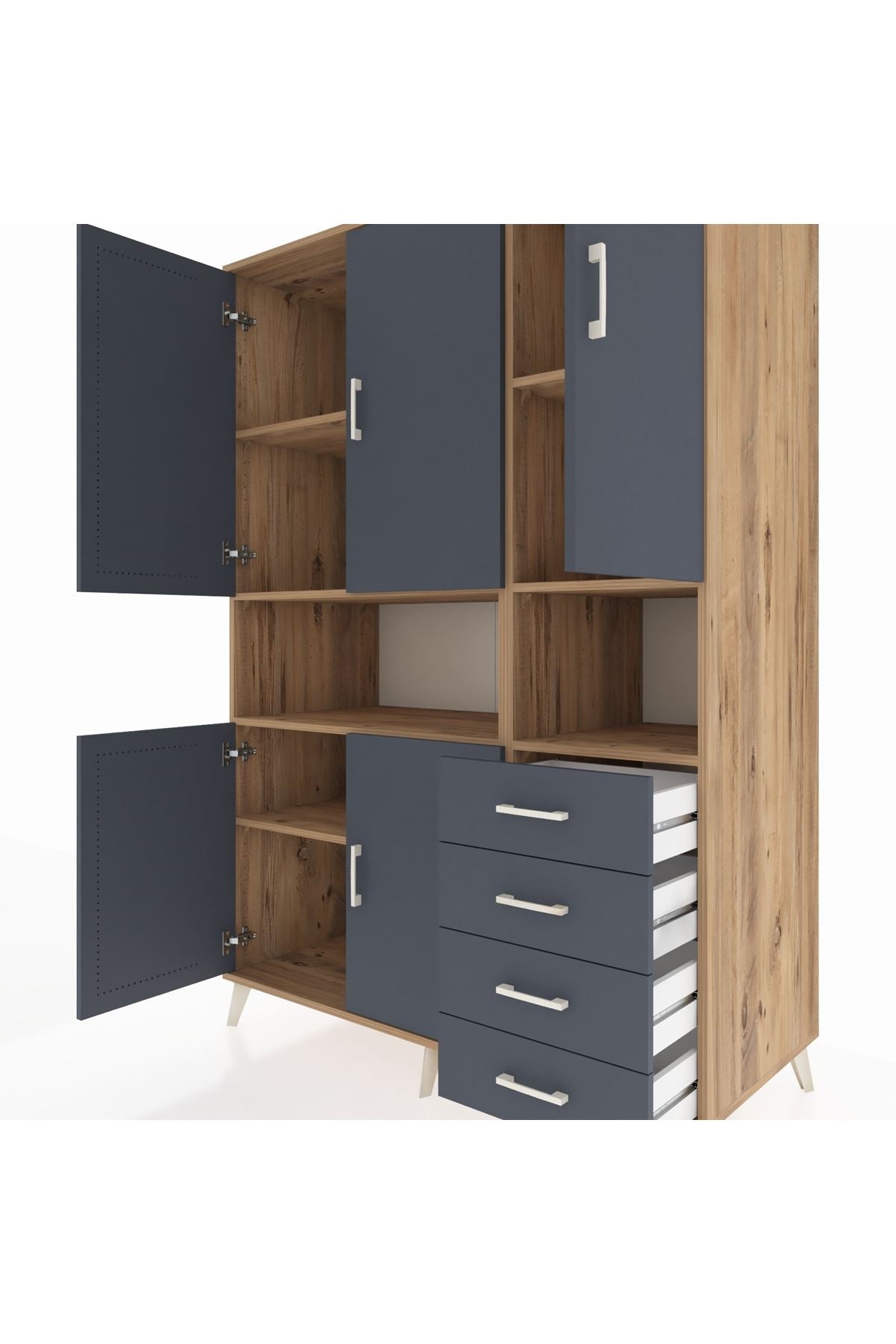 Kronos Dolap 7 Raflı 4 Çekmeceli 5 Kapaklı 132x59x195 Çam-Antrasit/Antrasit