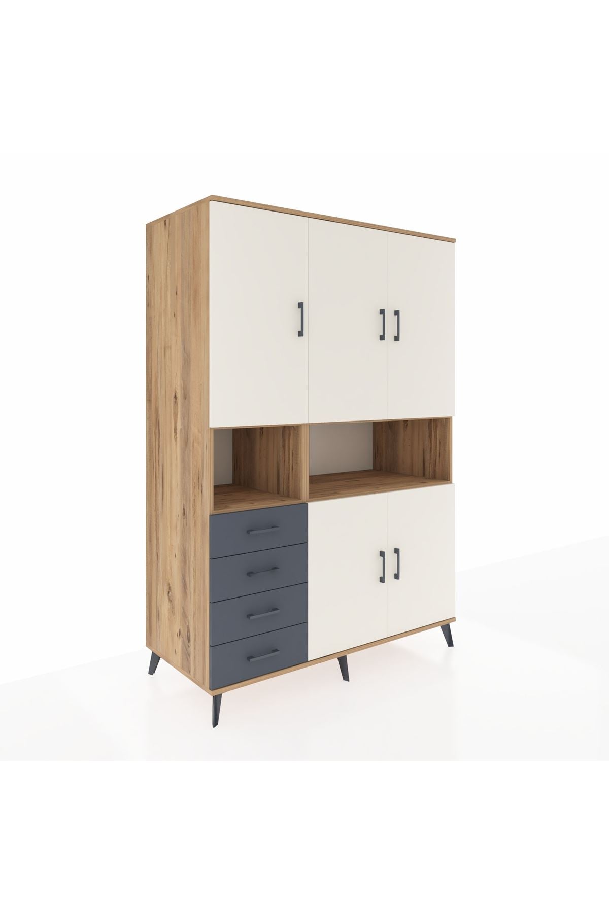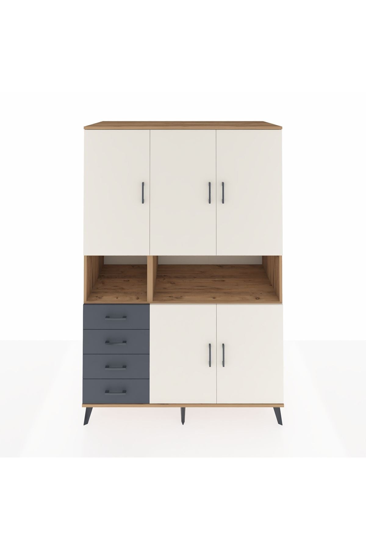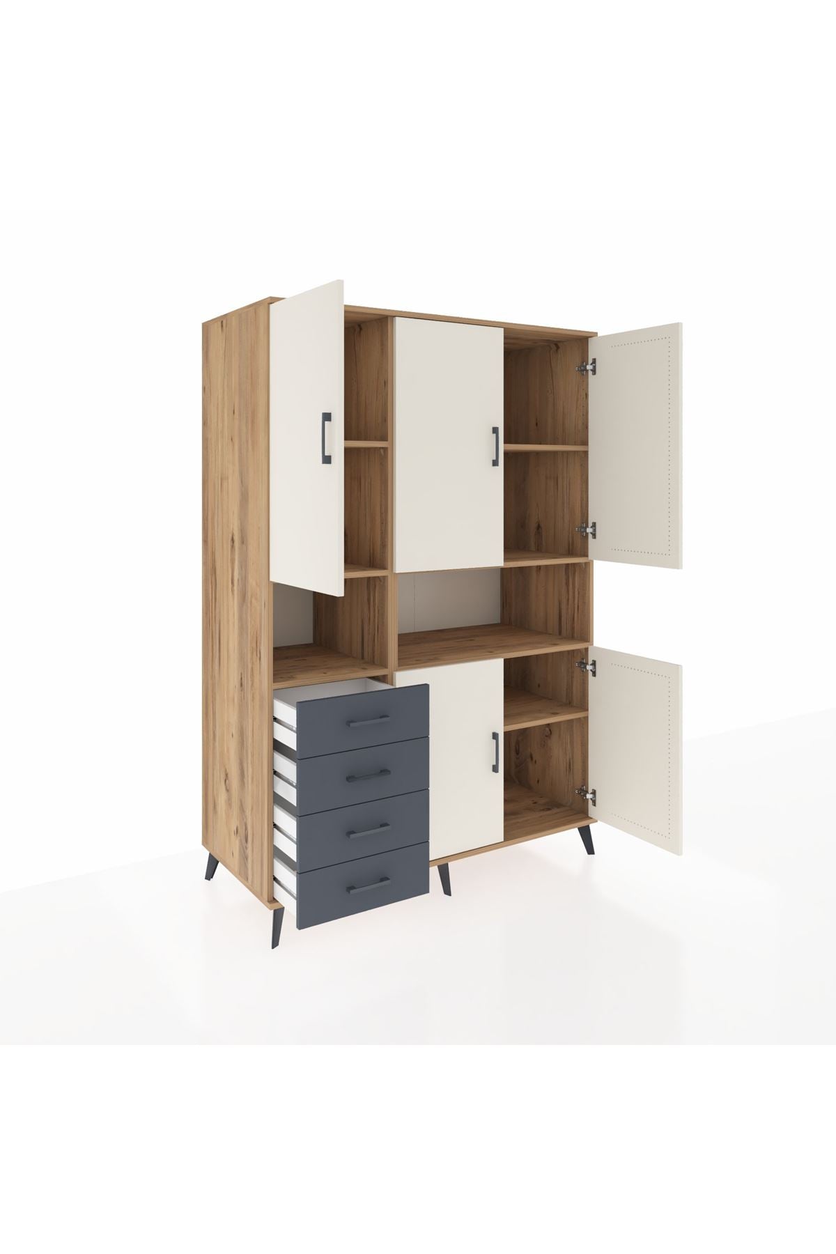 Kronos Dolap 7 Raflı 4 Çekmeceli 5 Kapaklı 132x59x195 Çam-Aytaşı/Antrasit