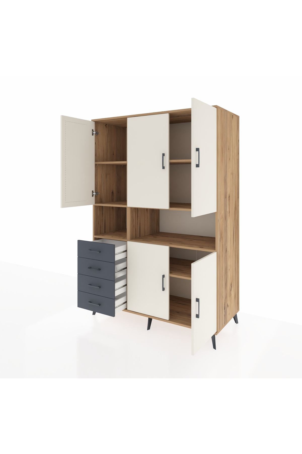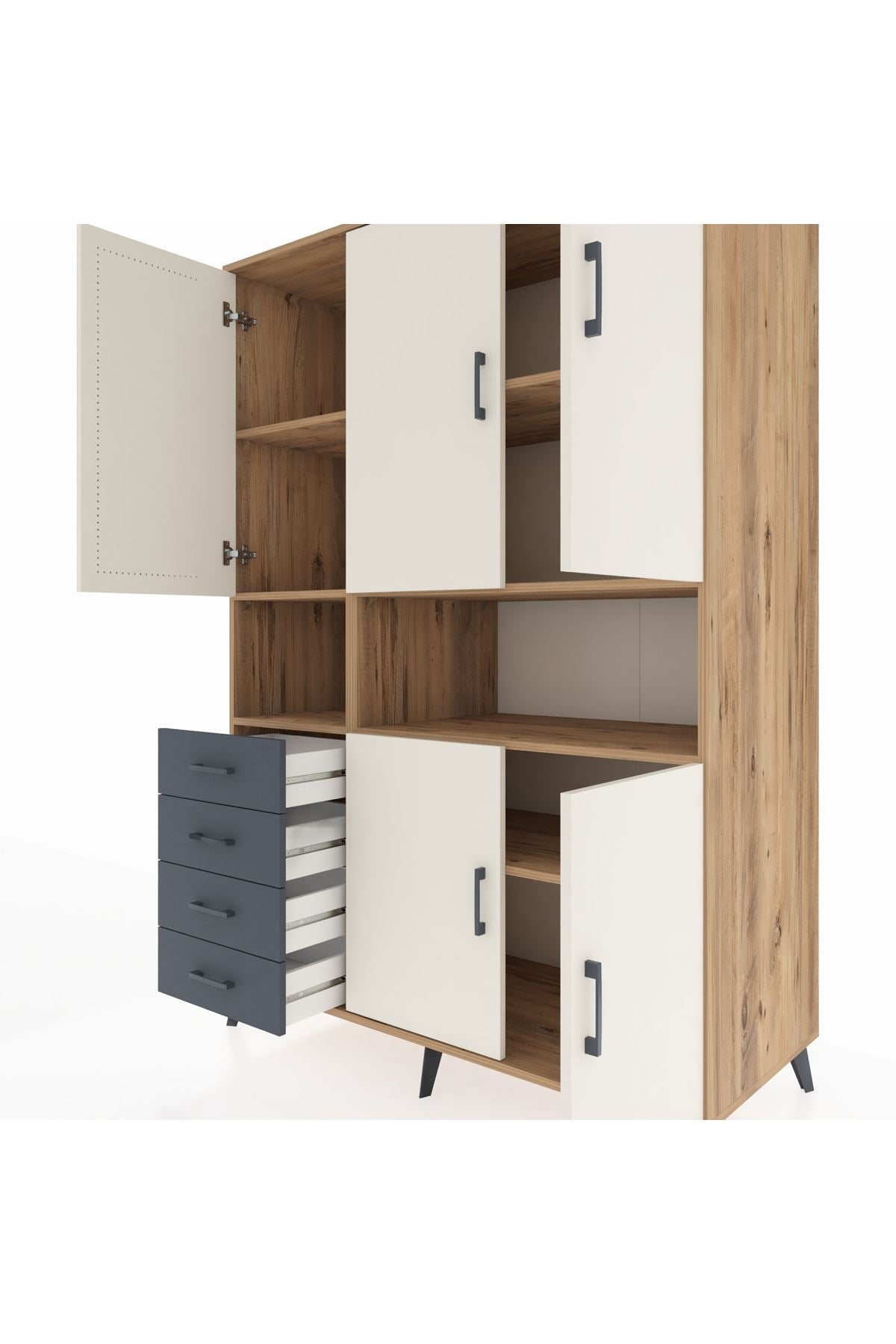Geniş iç hacmiyle 7 raf, 4 çekmece ve 5 kapak sunan bu model; ev ve ofis düzenine sınıf atlatıyor 🏡📚
