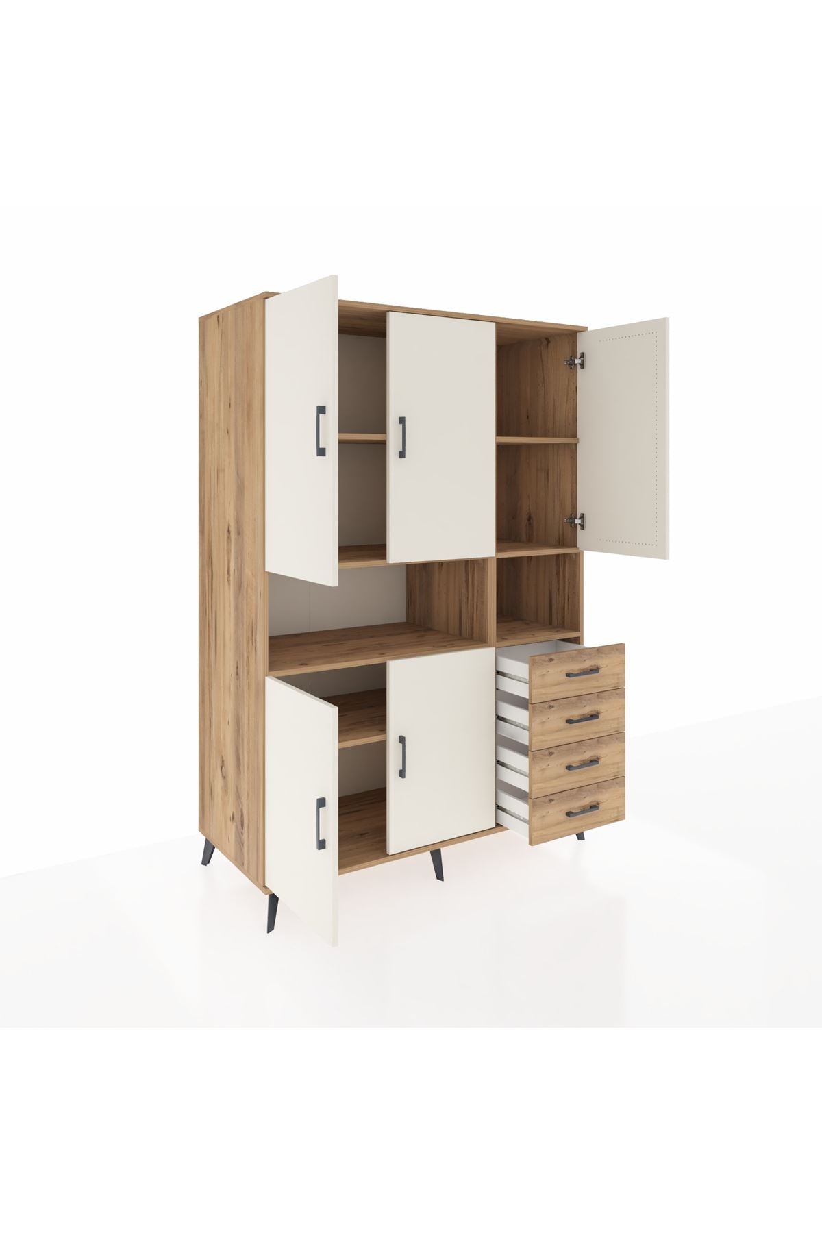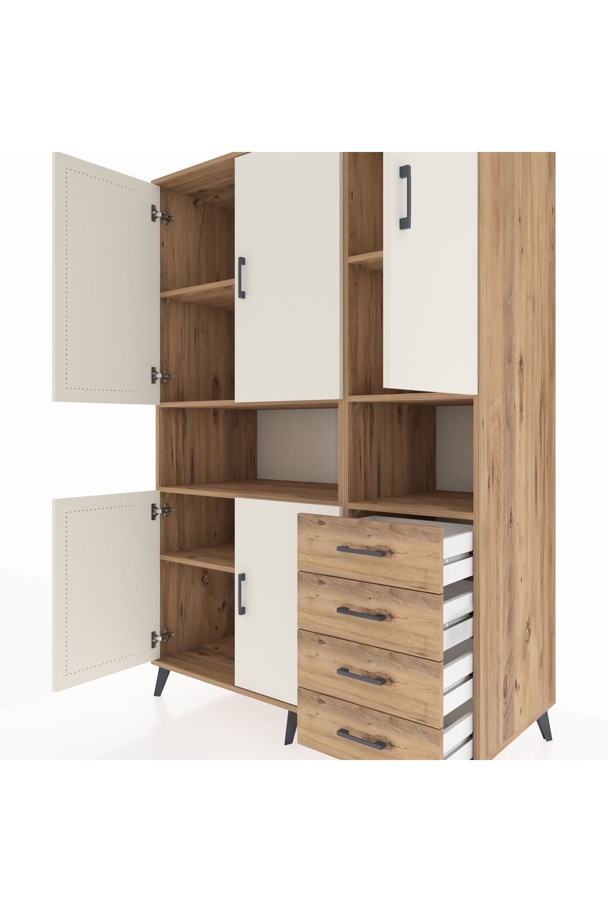 Kronos Dolap 7 Raflı 4 Çekmeceli 5 Kapaklı 132x59x195 Çam-Aytaşı/Çam