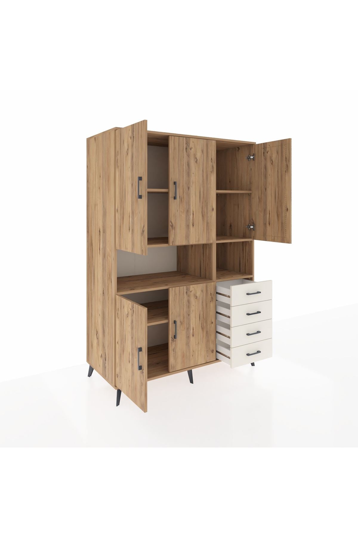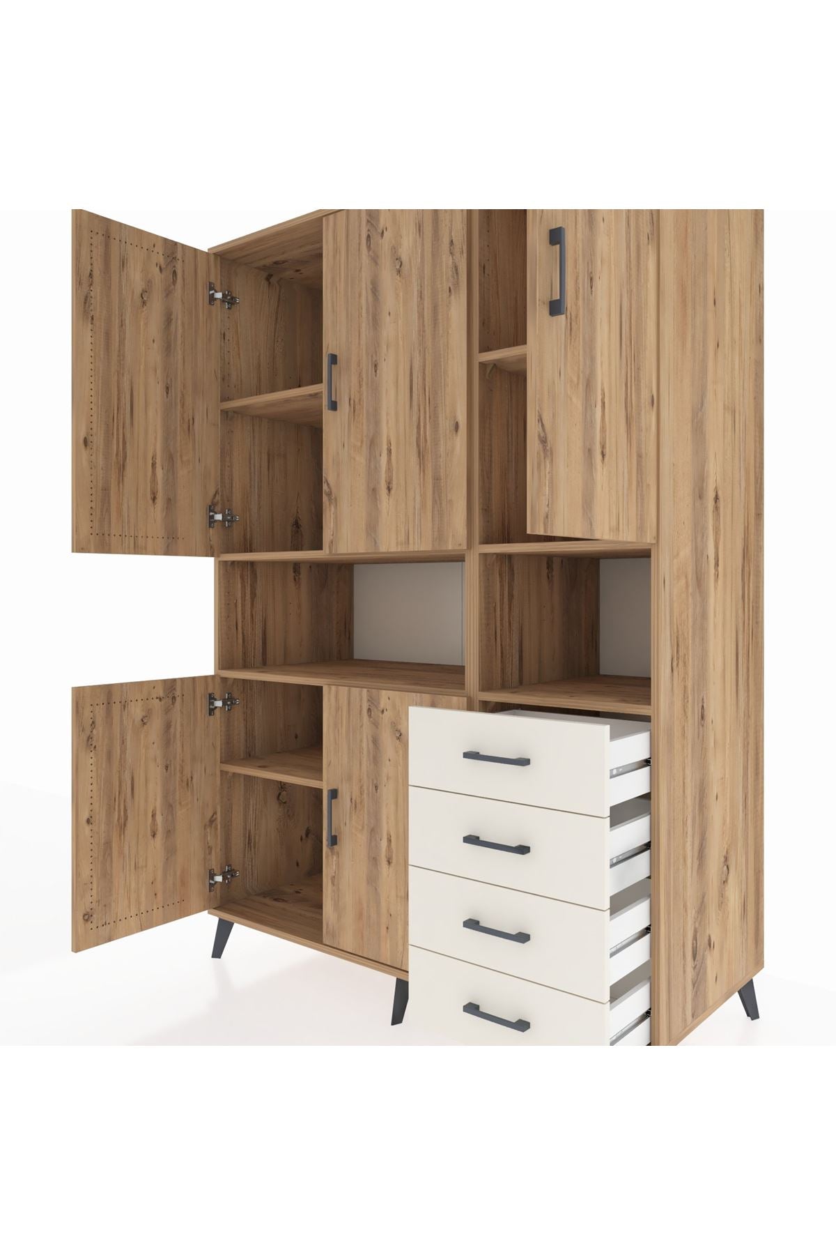 Kronos Dolap 7 Raflı 4 Çekmeceli 5 Kapaklı 132x59x195 Çam-Çam/Aytaşı