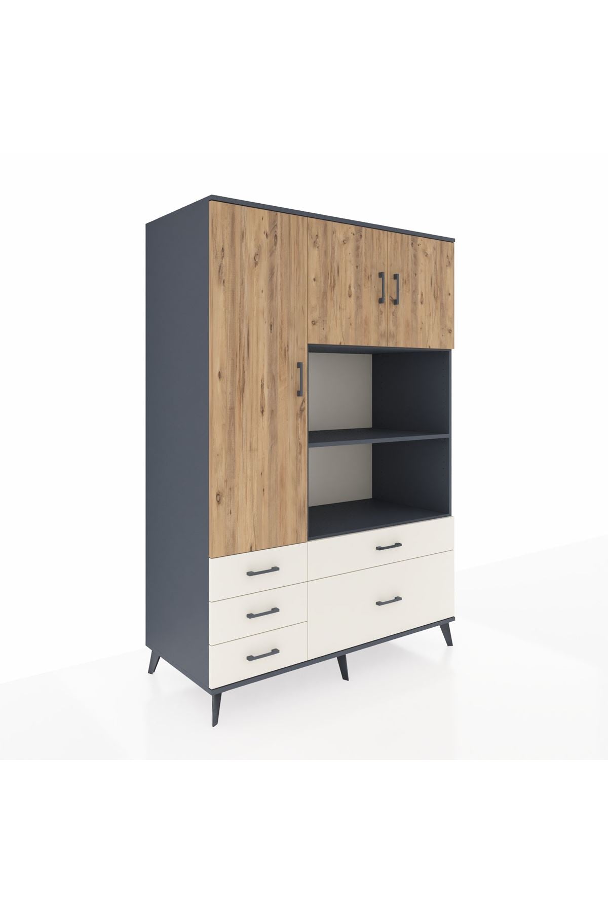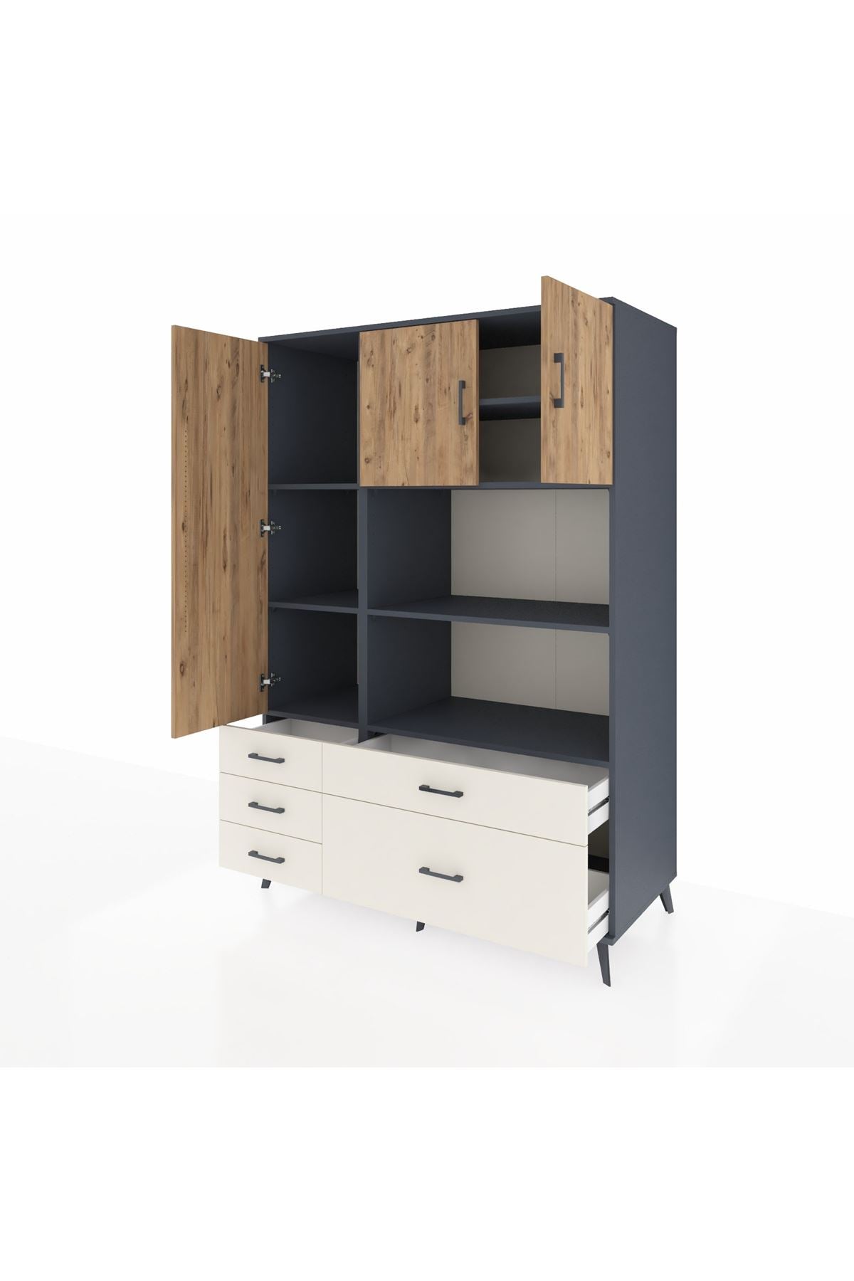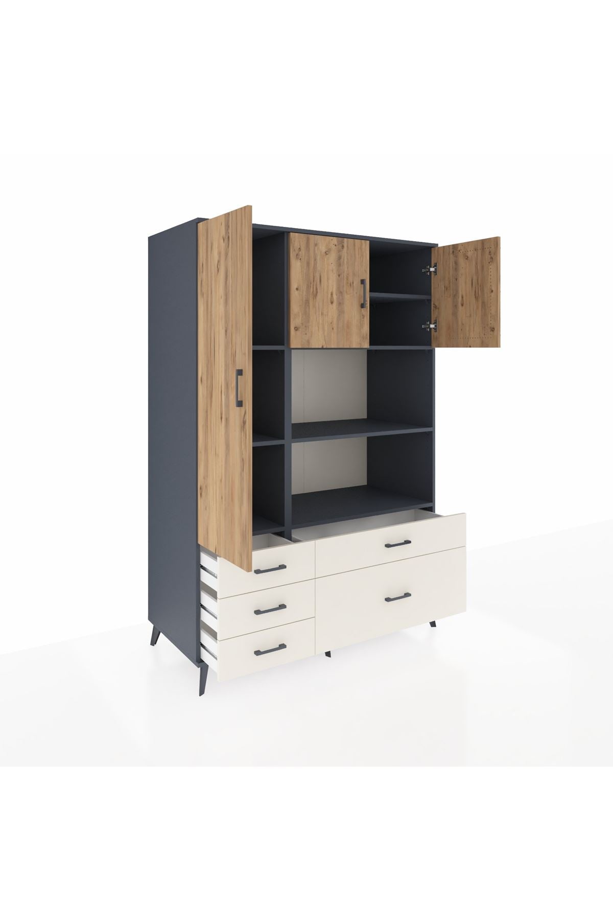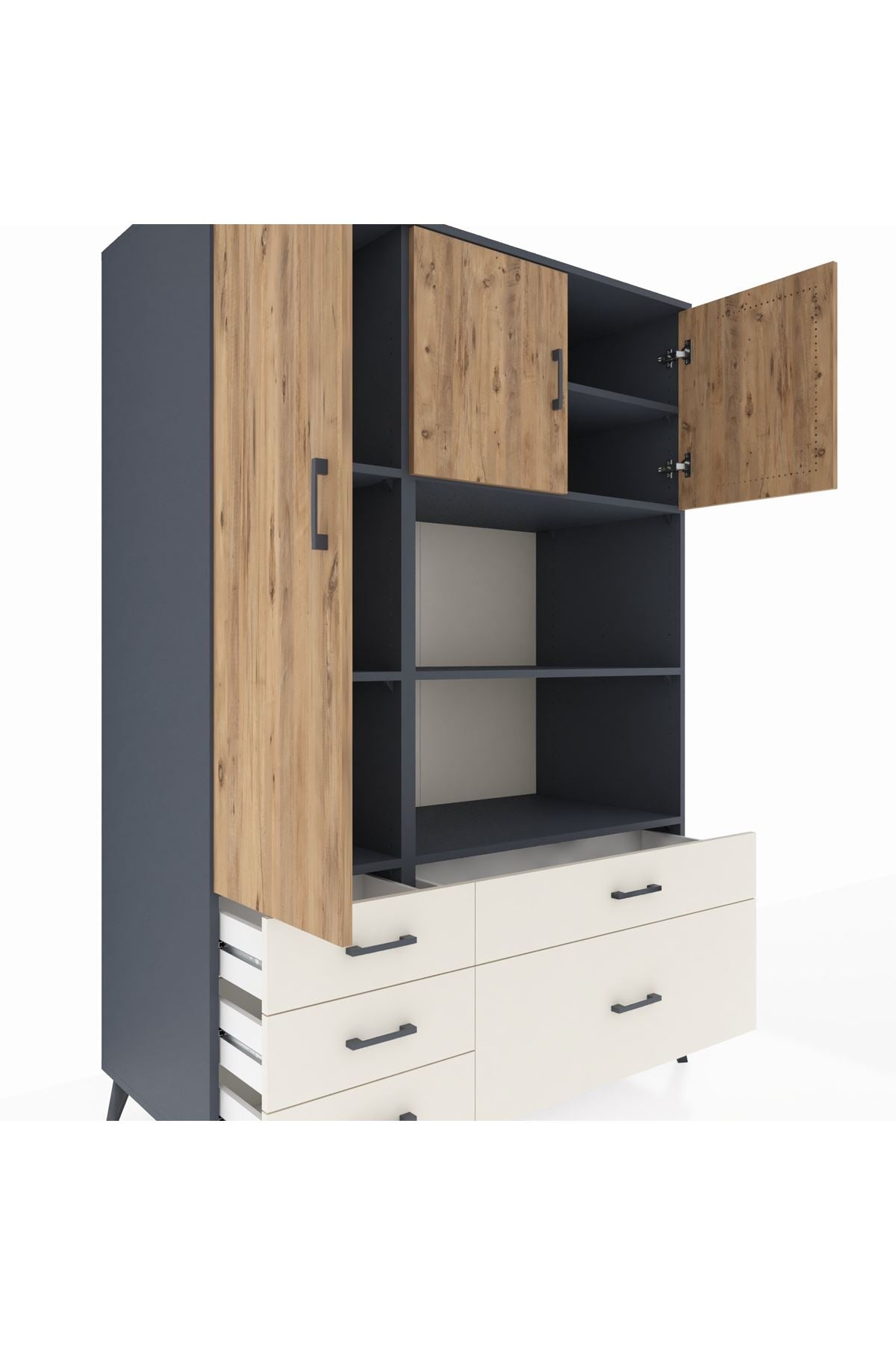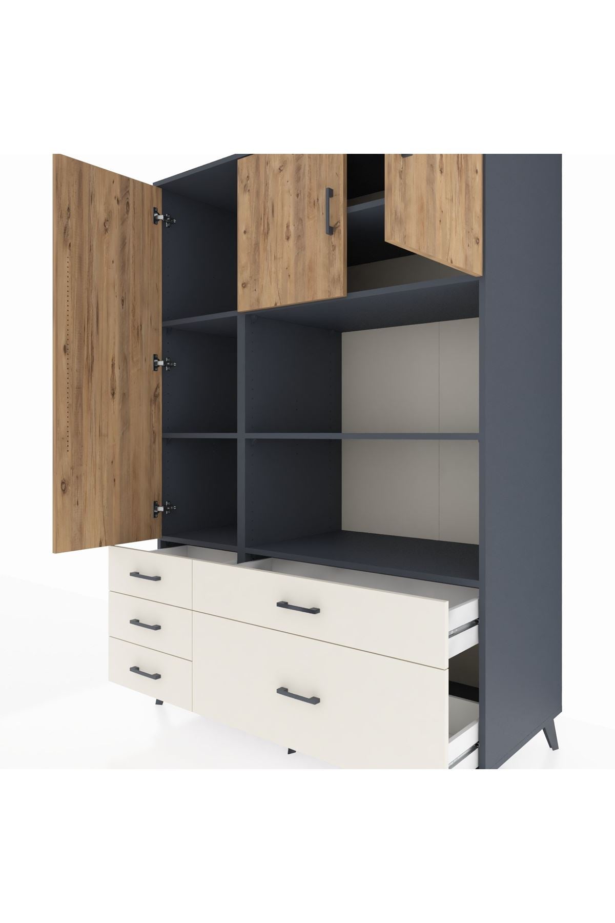 Kronos Dolap 7 Raflı 5 Çekmeceli 3 Kapaklı 132x59x195 Antrasit-Çam/Aytaşı