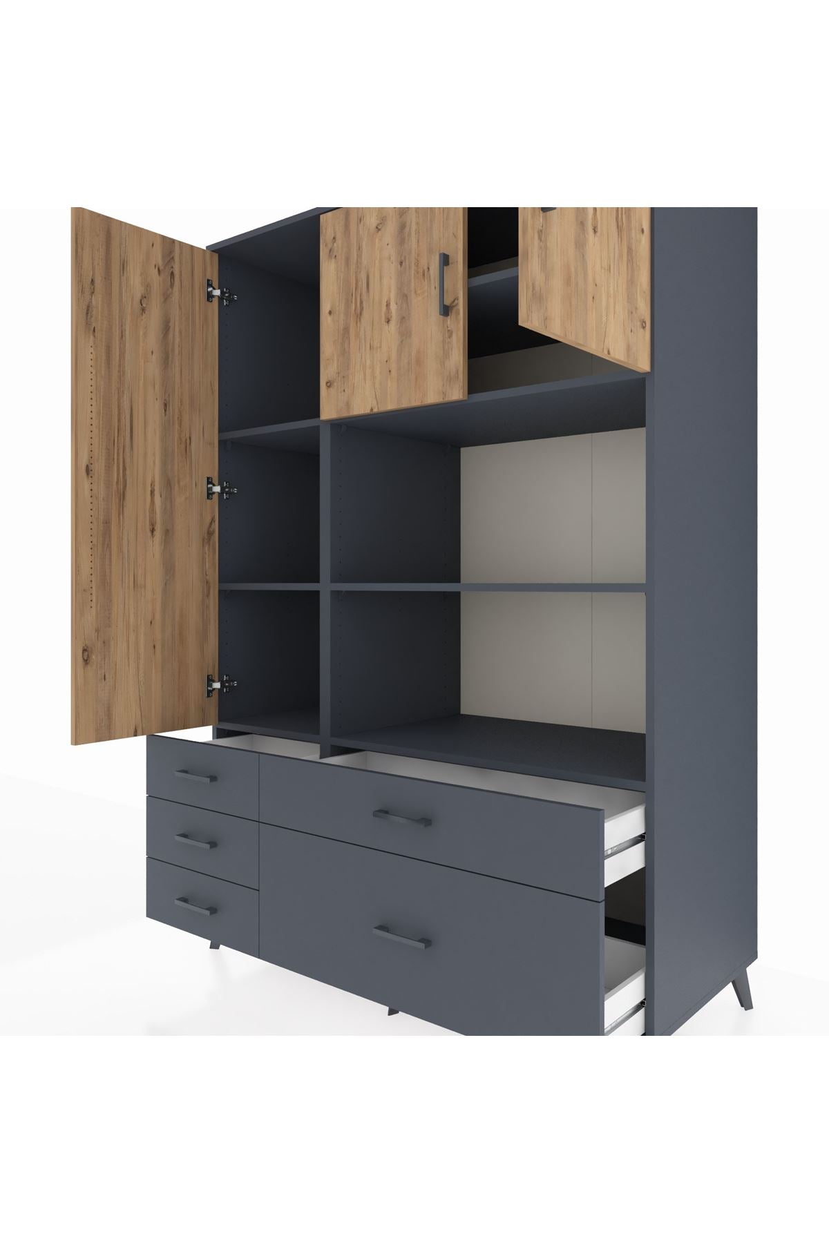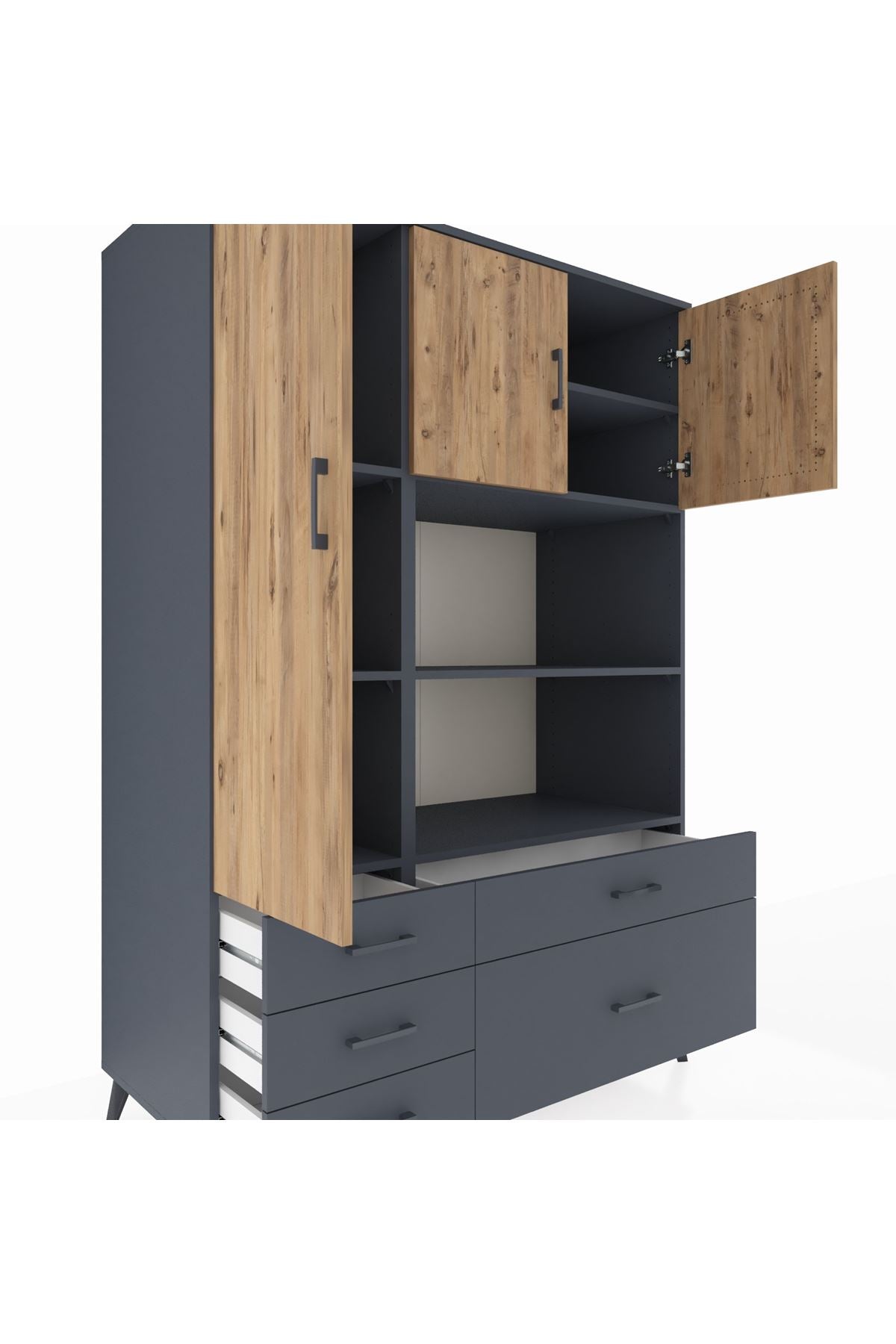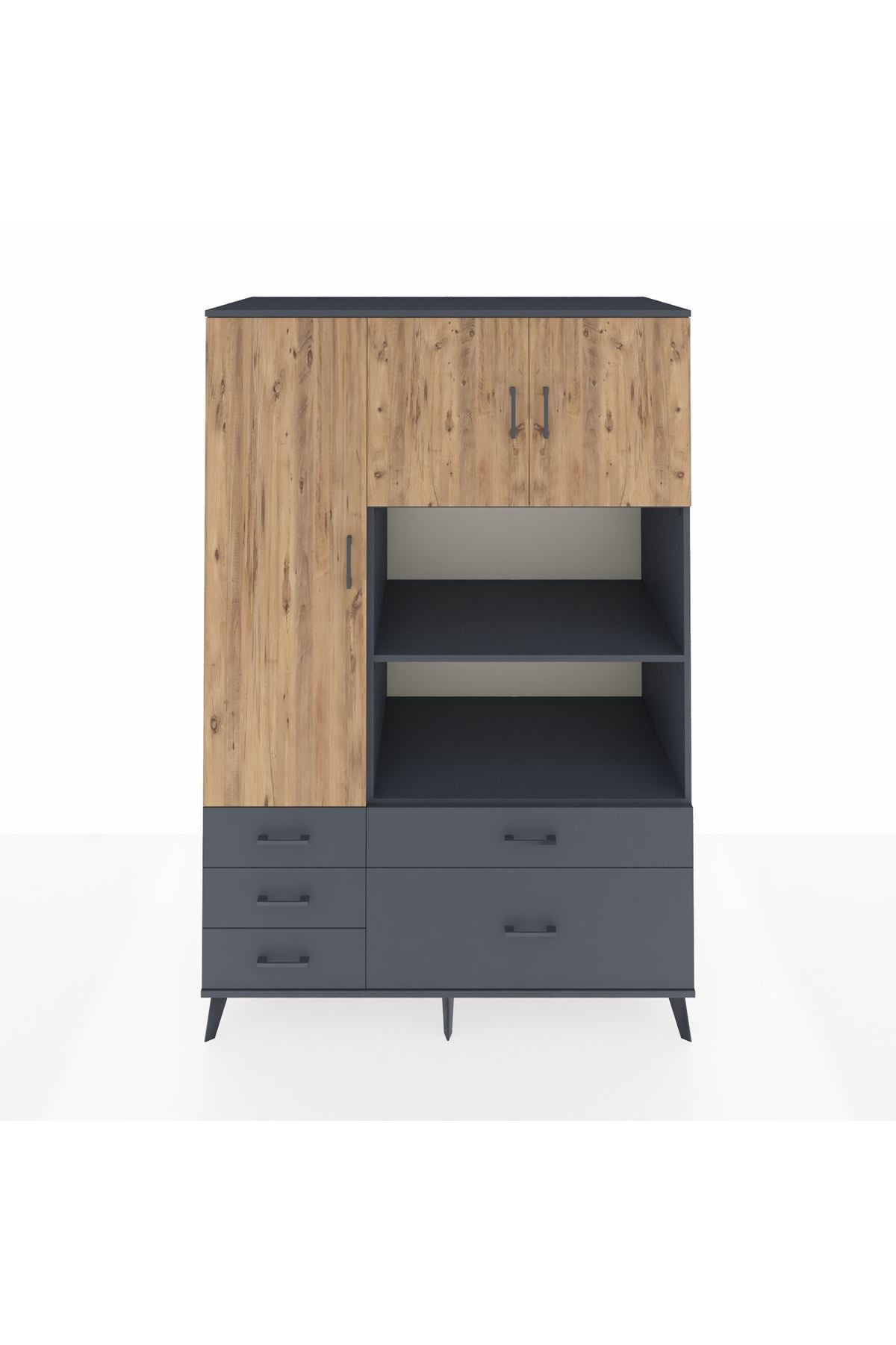 Kronos Dolap 7 Raflı 5 Çekmeceli 3 Kapaklı 132x59x195 Antrasit-Çam/Antrasit